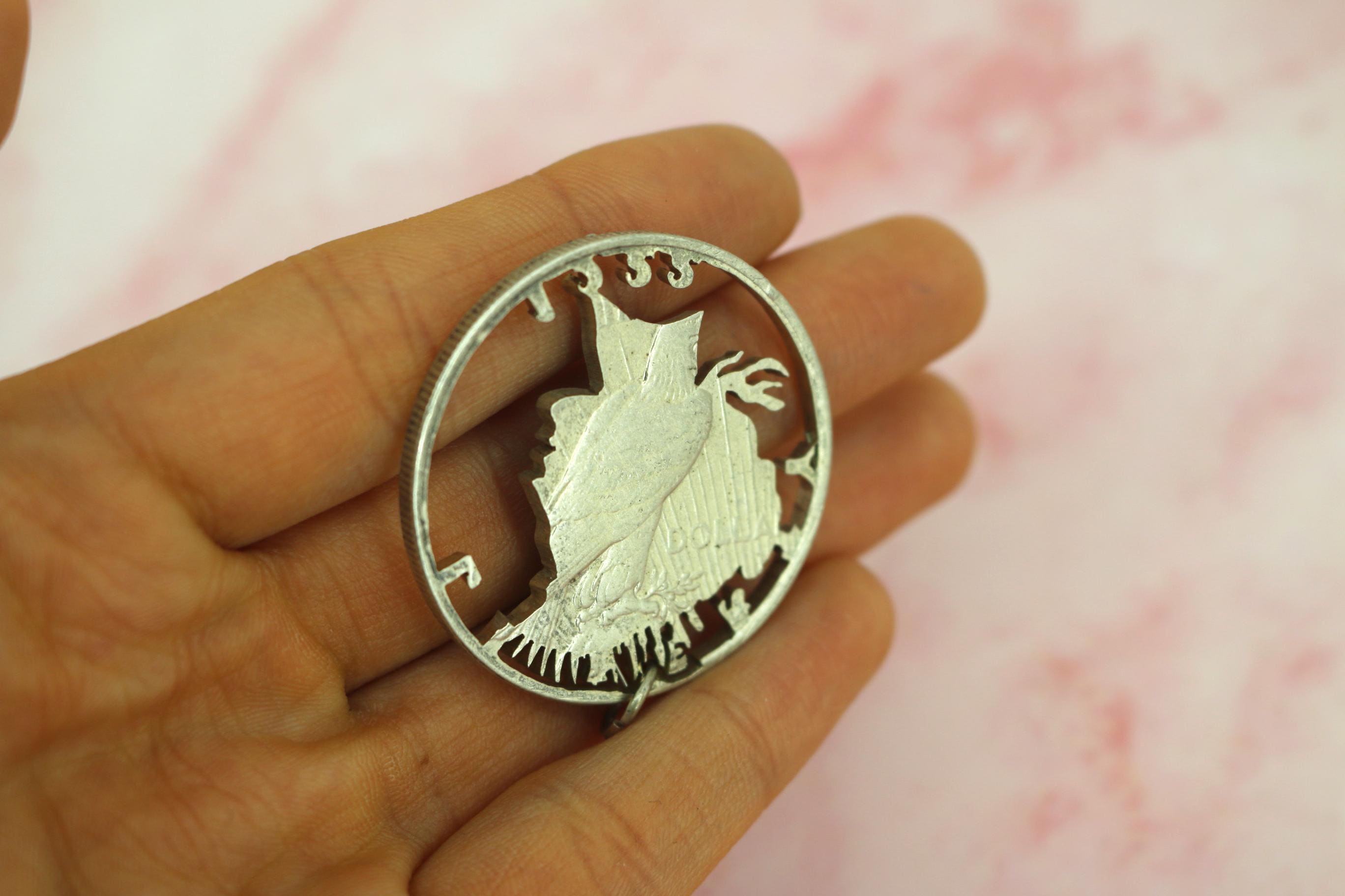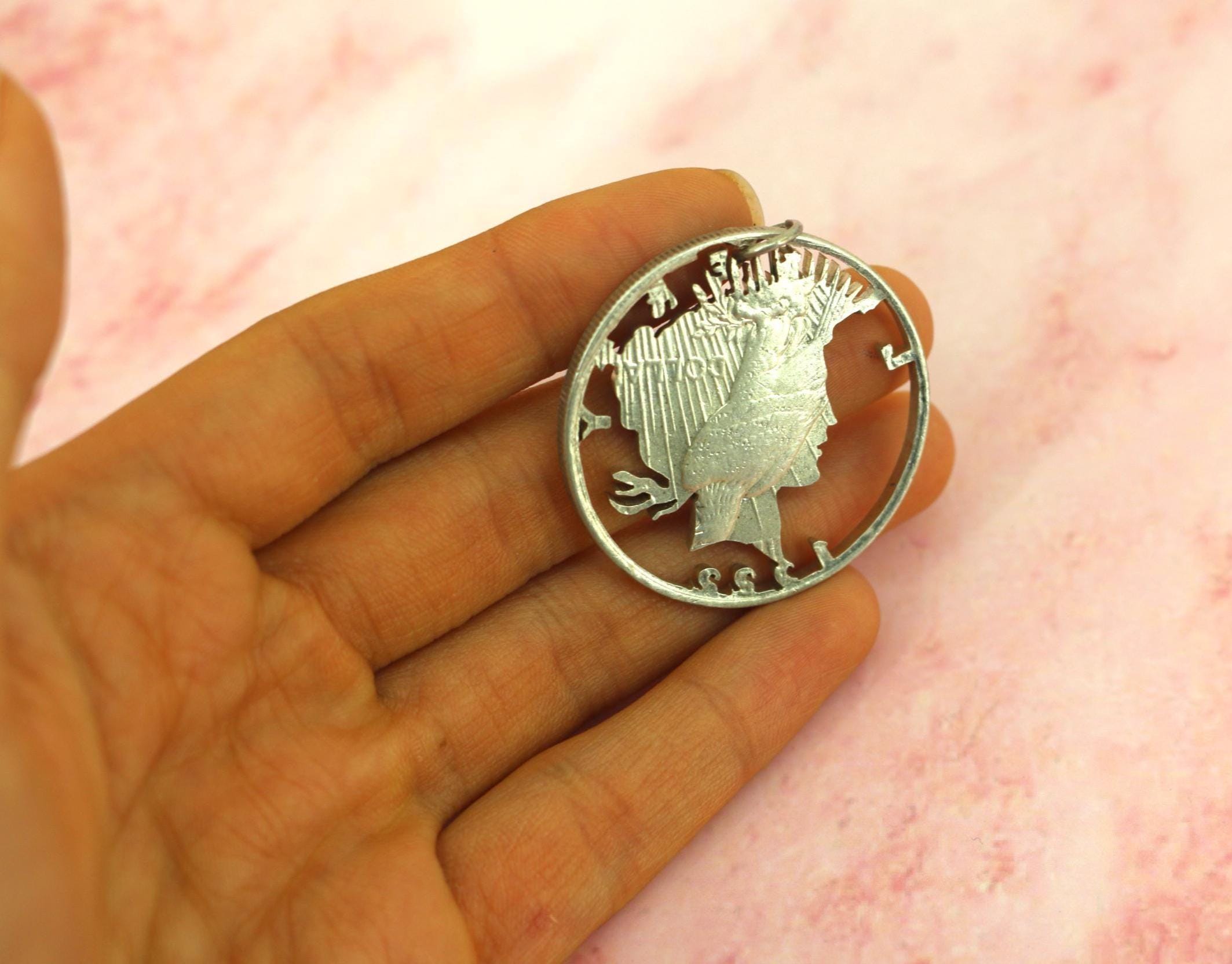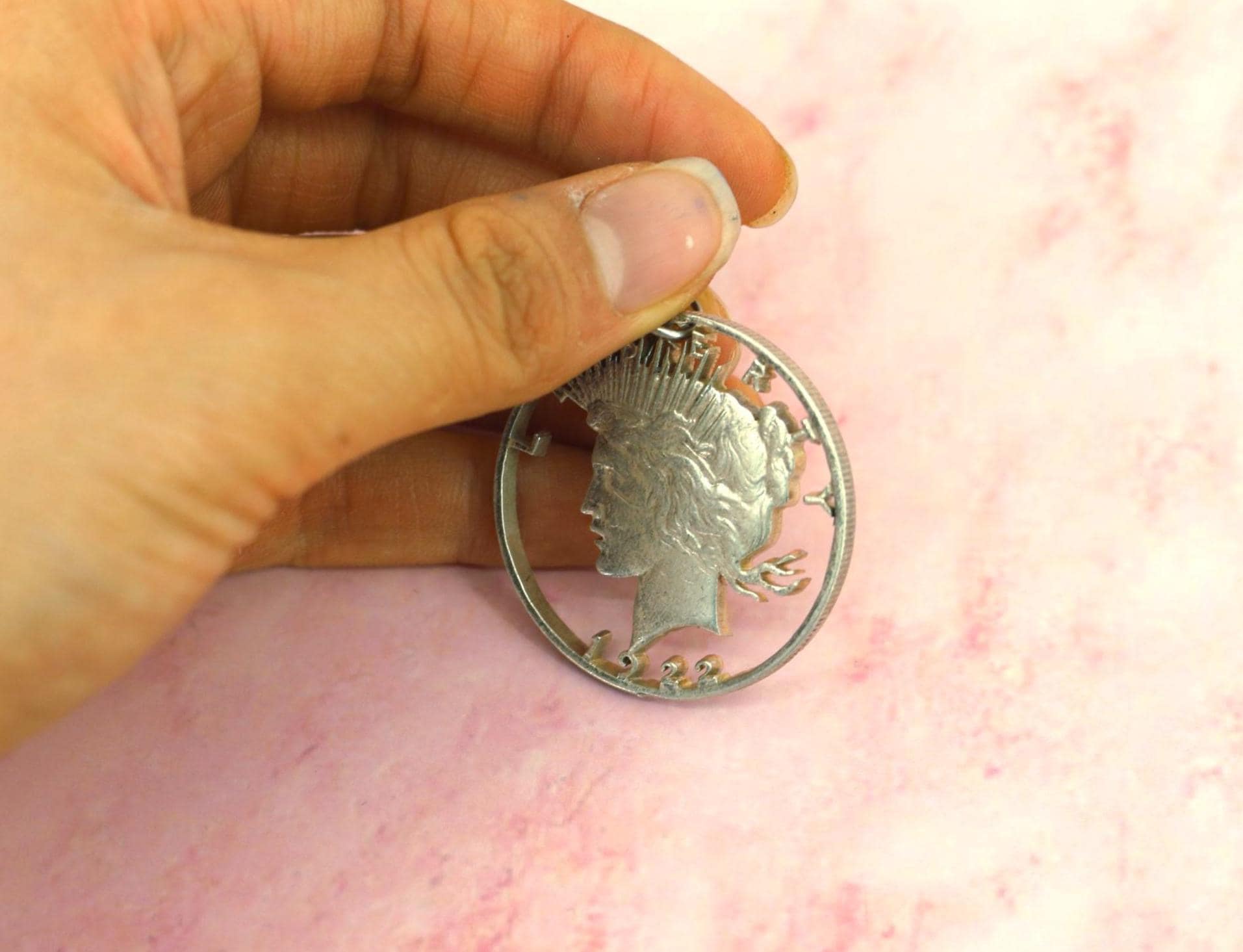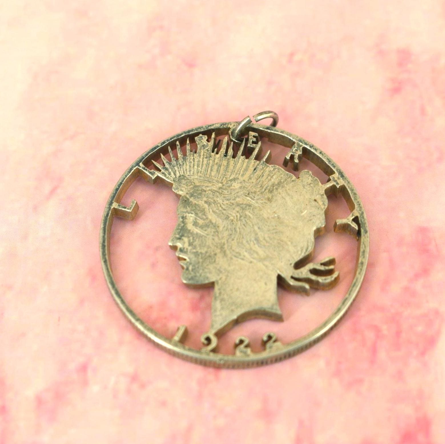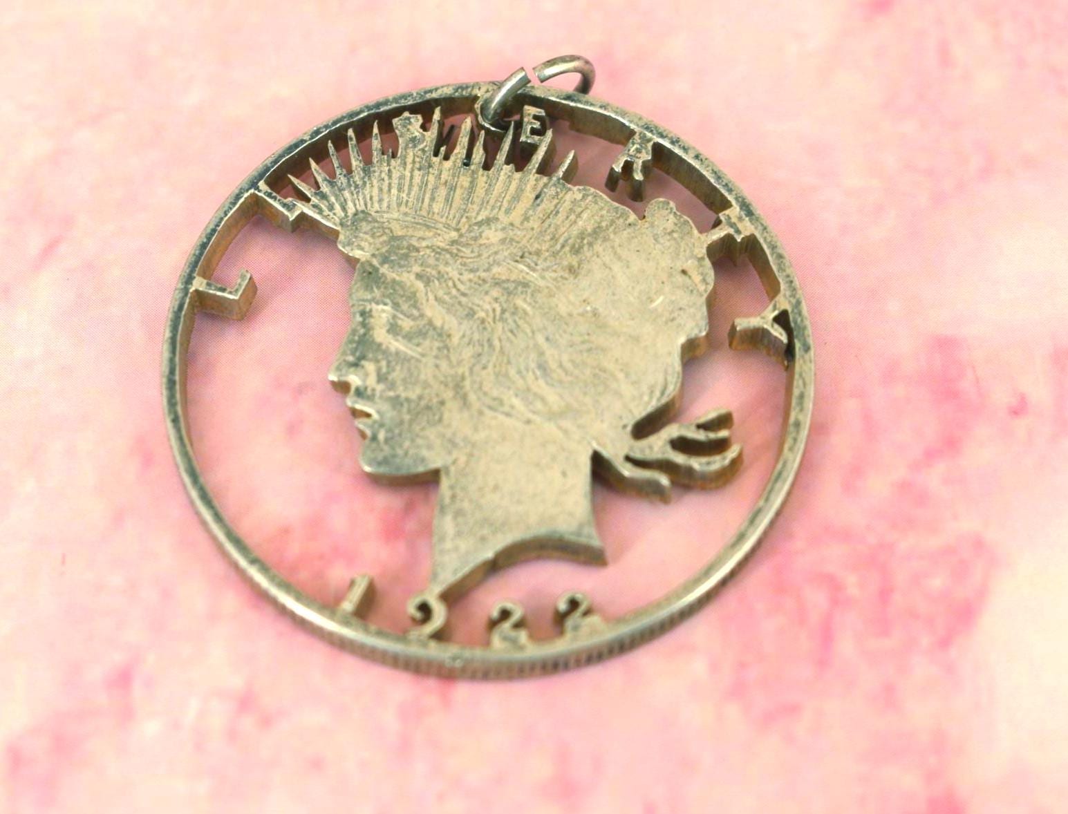 Vintage 1922 Silver Peace Dollar Custom Cut Out Pendant 925 Sterling PD 1172