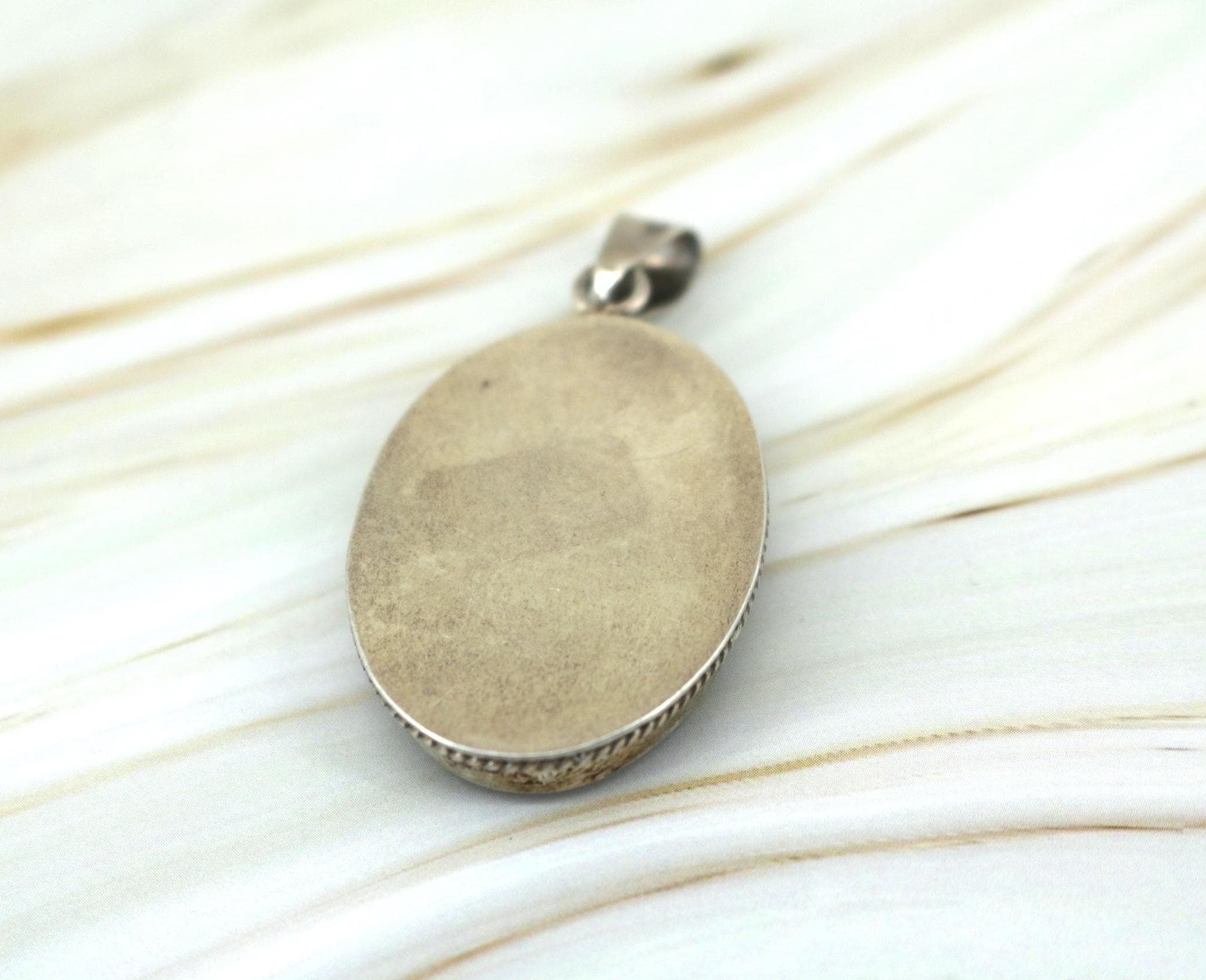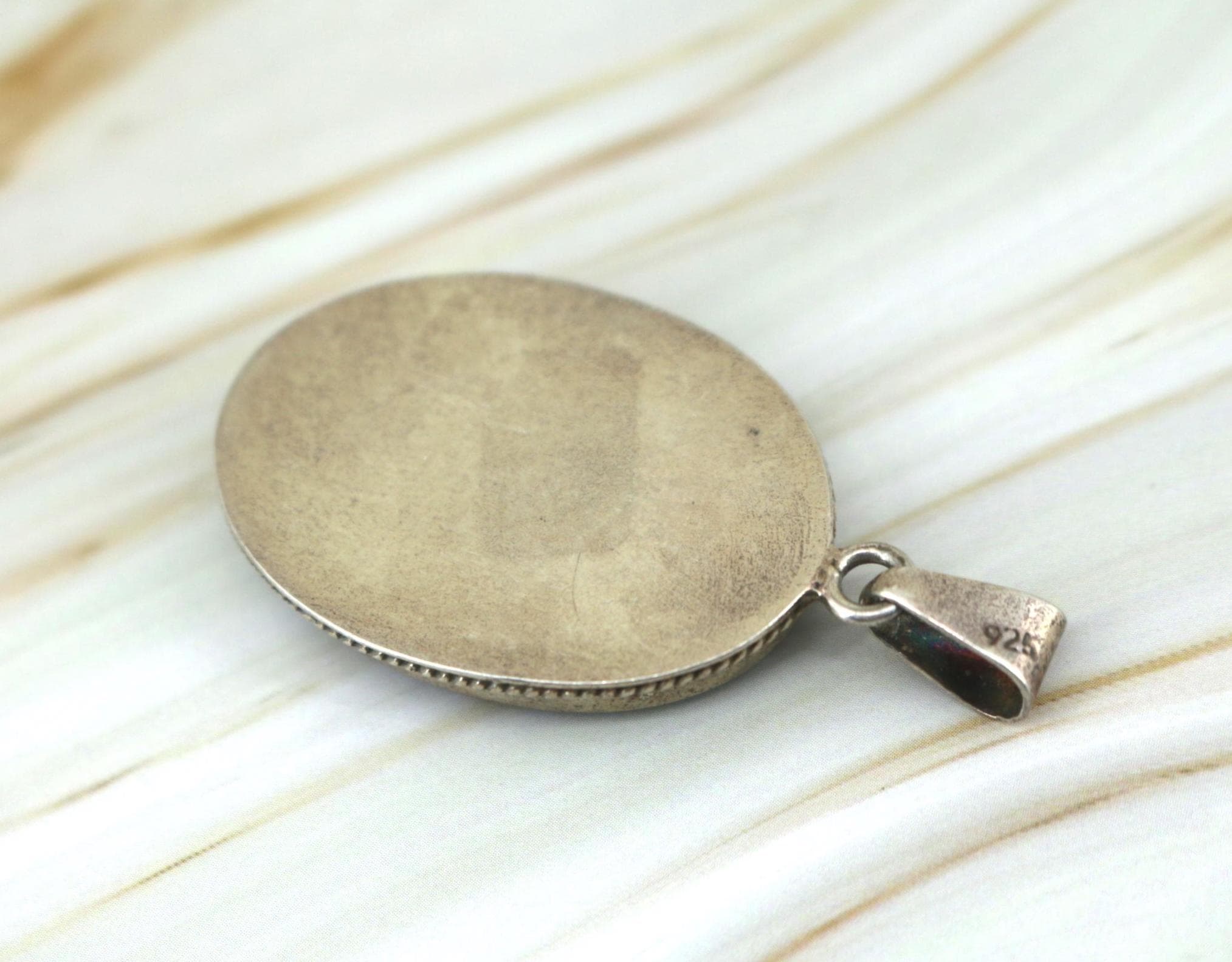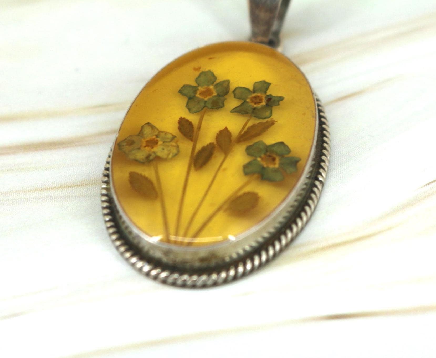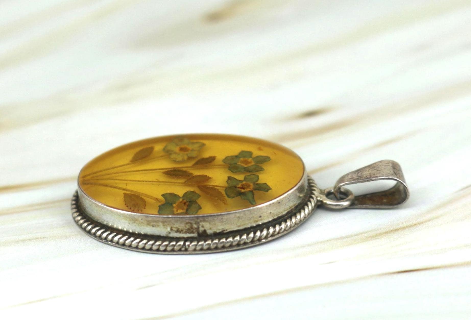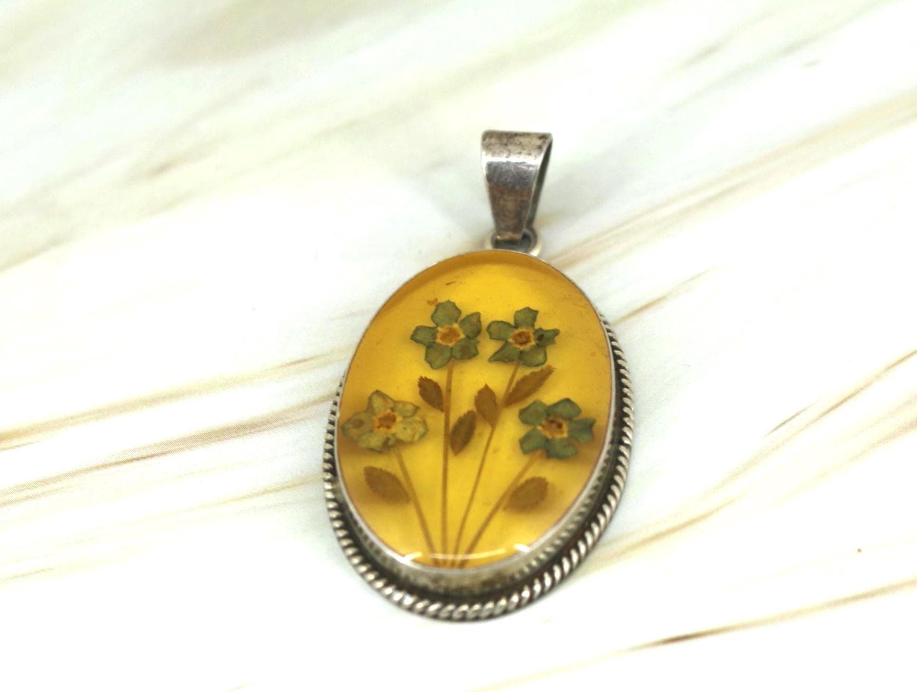 Vintage Yellow Flower Resin Encased Oval Pendant 925 Sterling PD 1279
