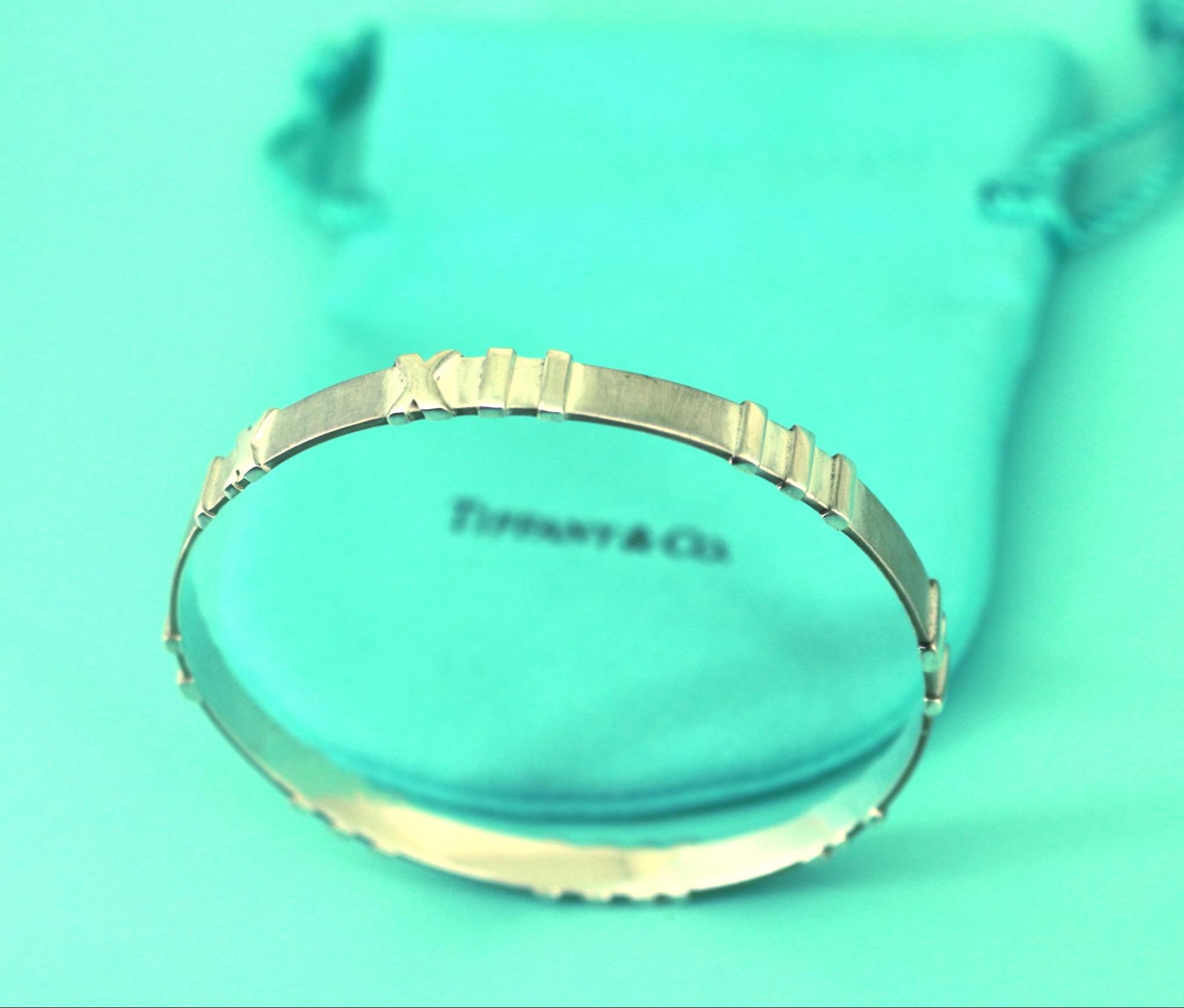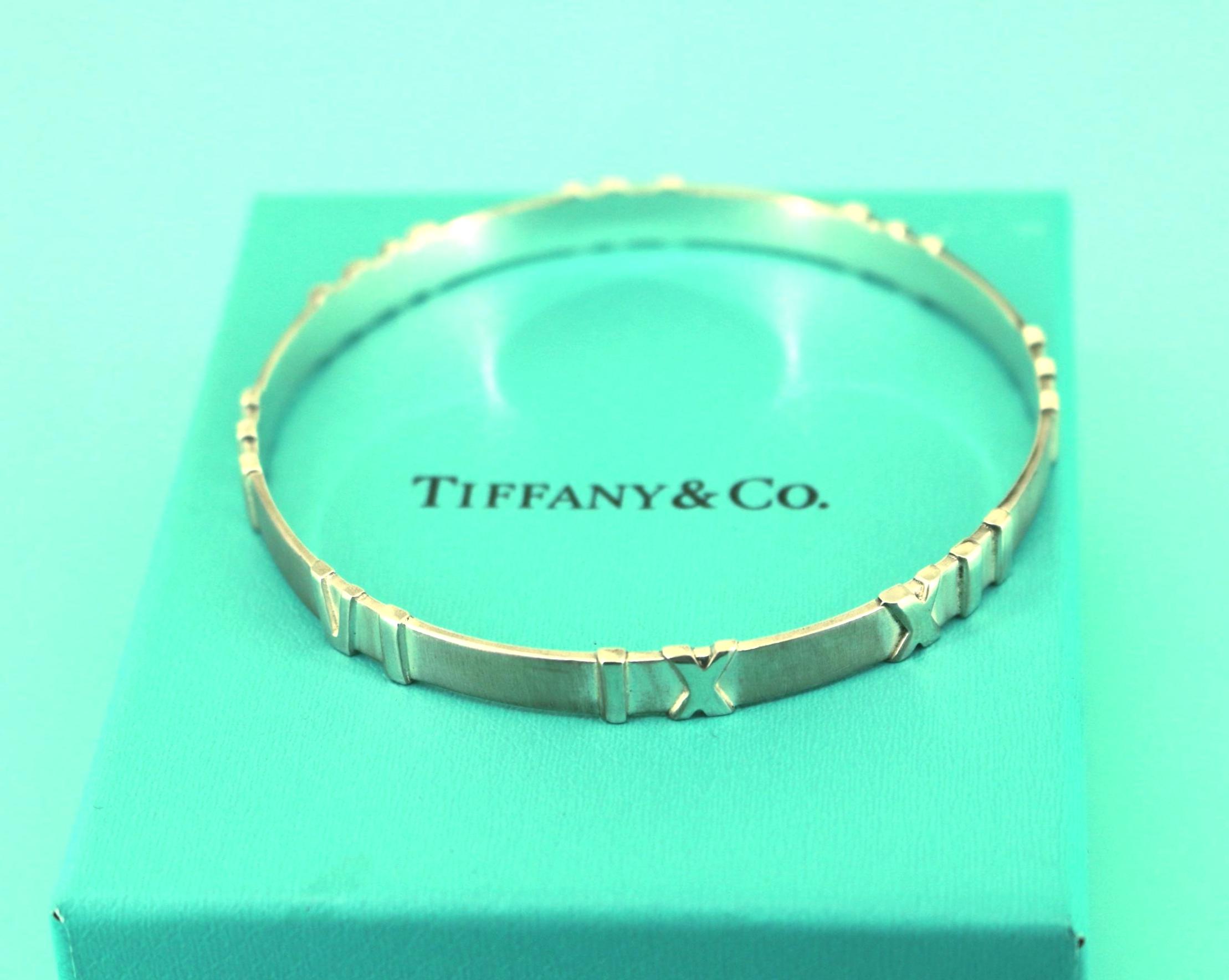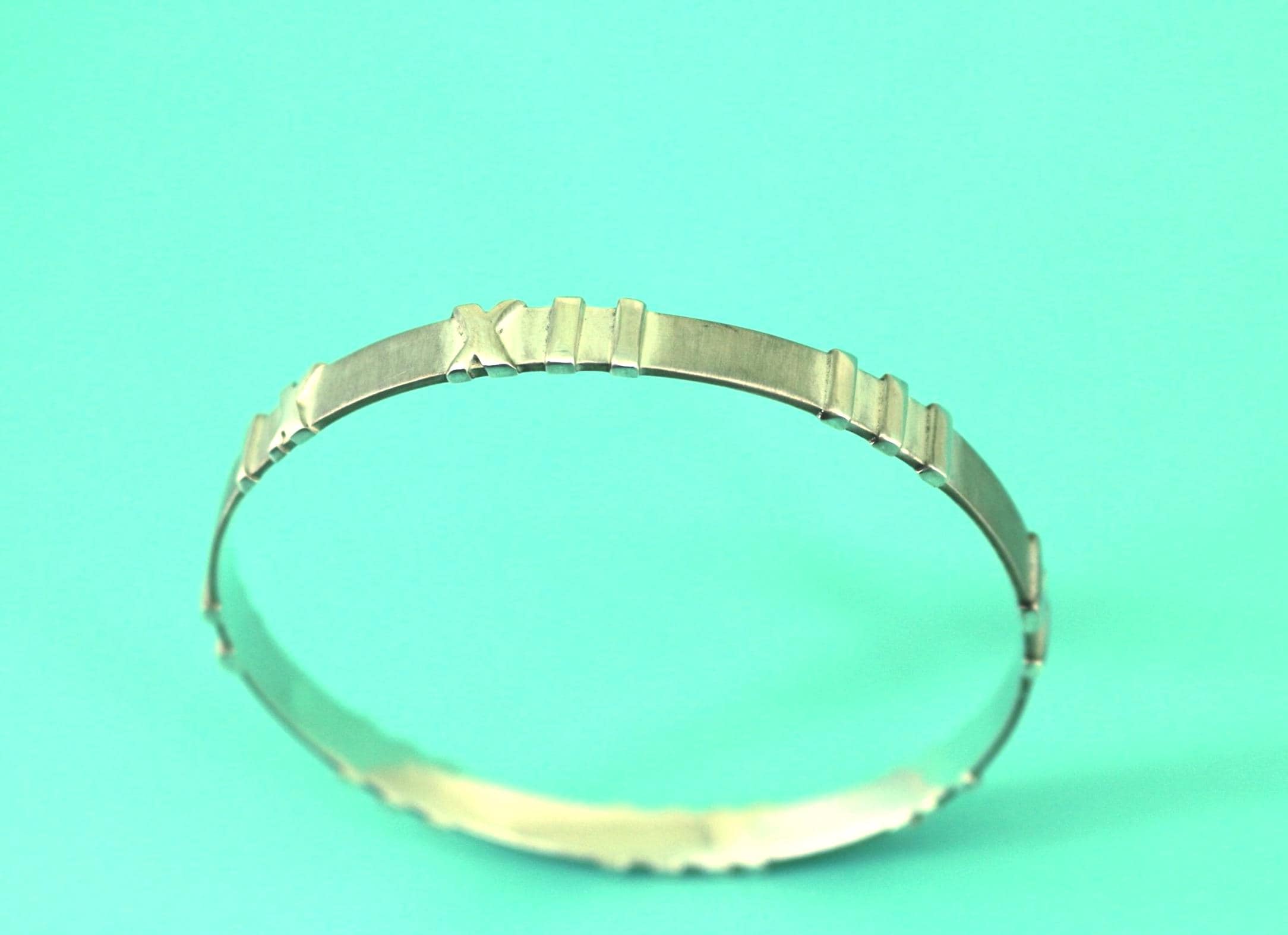 This is Authentic Tiffany & Co Vintage Atlas Roman Numeral Design Sterling Silver Bangle Bracelet