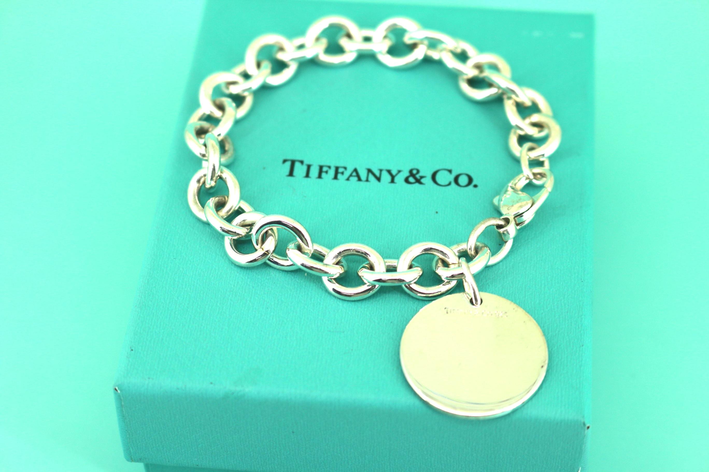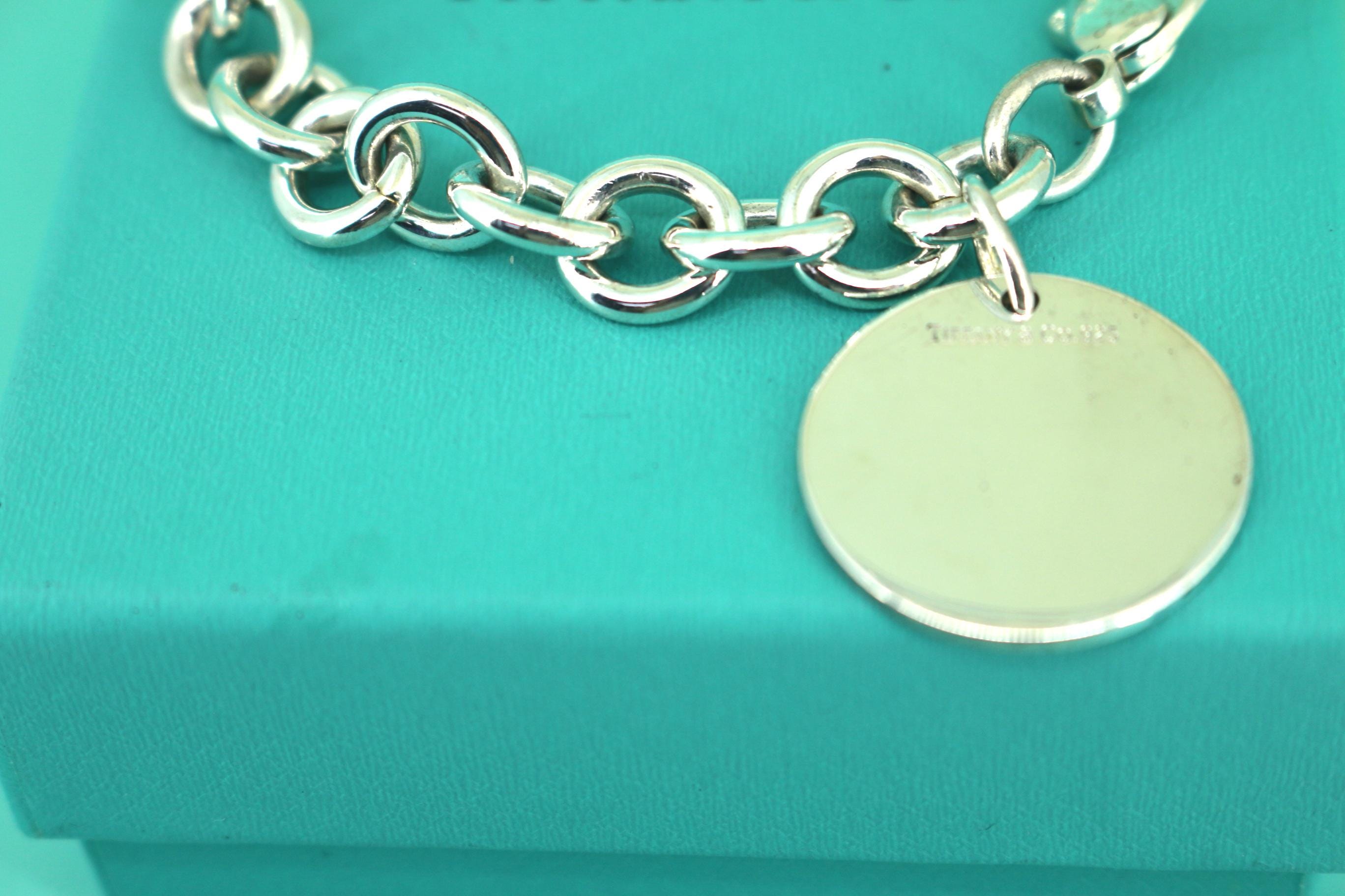 Authentic Tiffany & Co Round Tag Chain Bracelet 925 Sterling BR 612