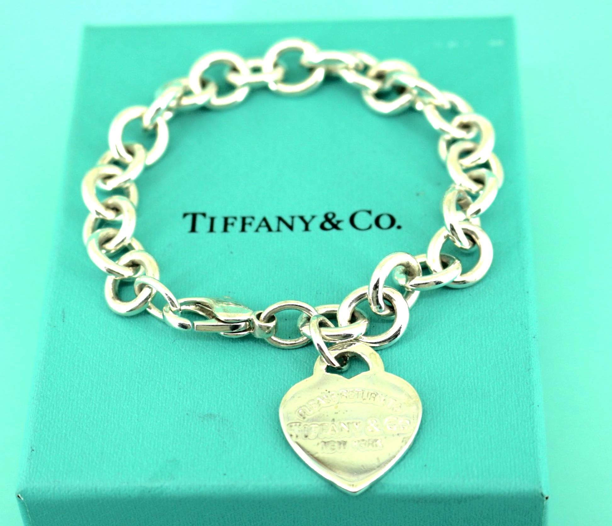 Authentic Tiffany & Co Heart "Return to Tiffany" Tag Chain Bracelet 925 Sterling BR 3137