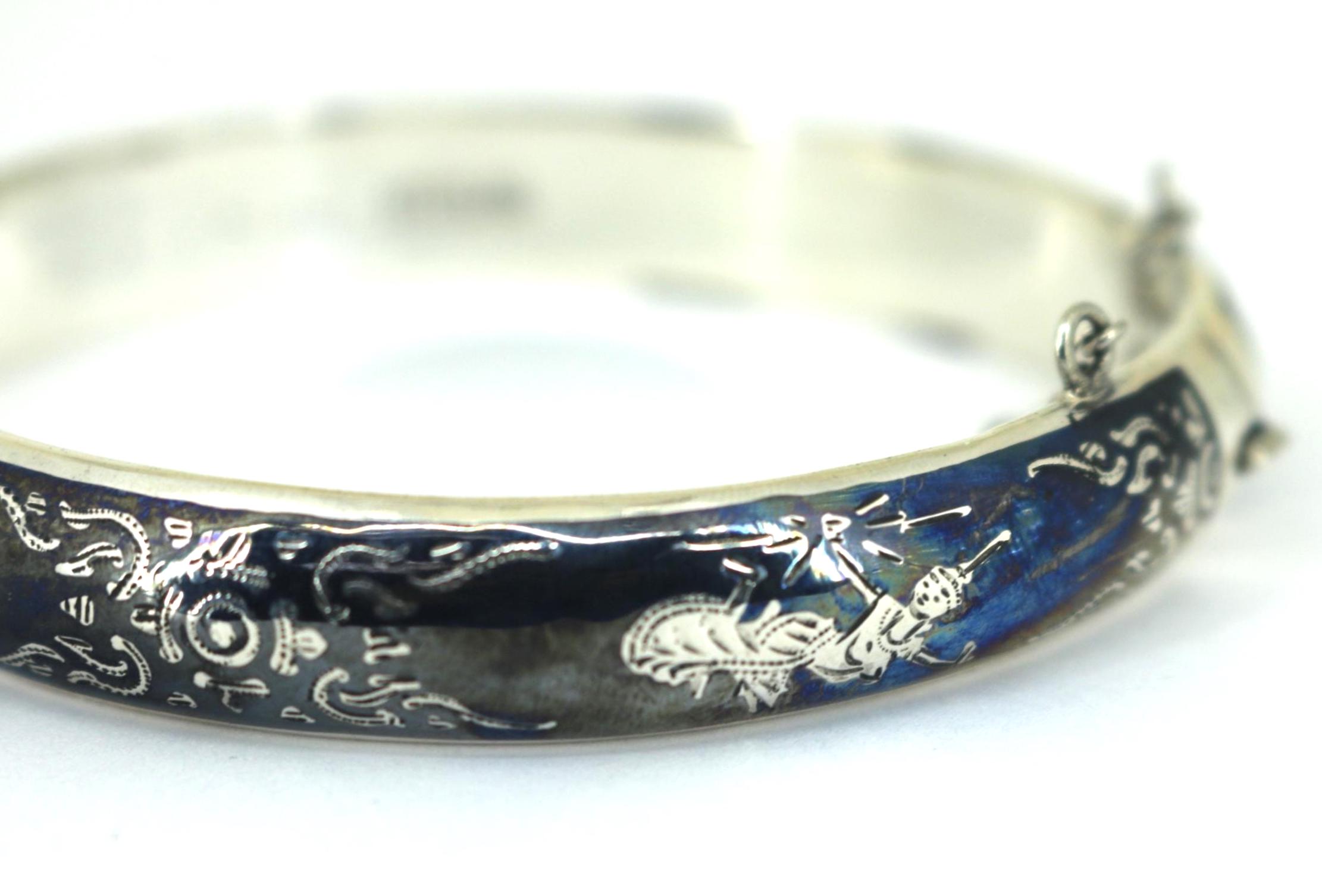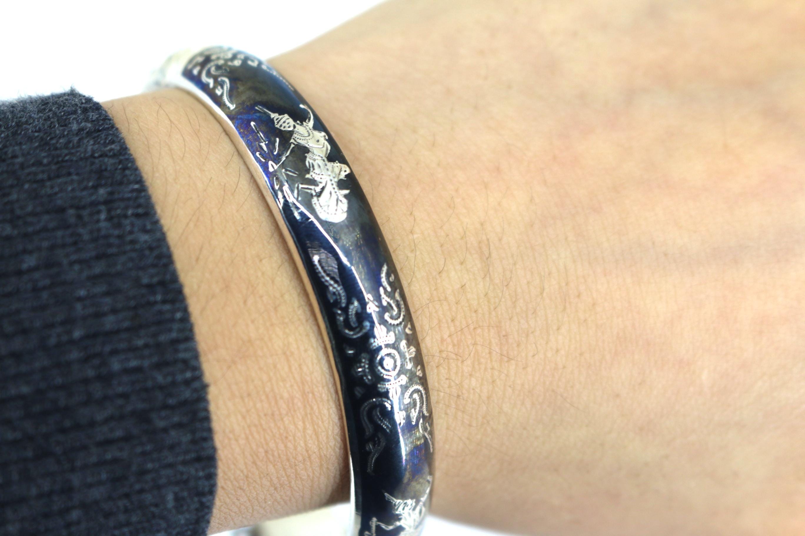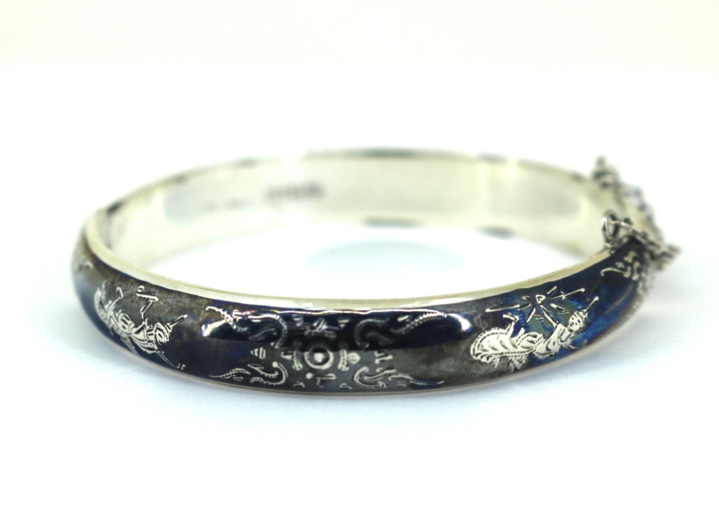 Vintage Thailand Siam Turquoise Enamel Bangle Bracelet 925 Sterling BR 1194