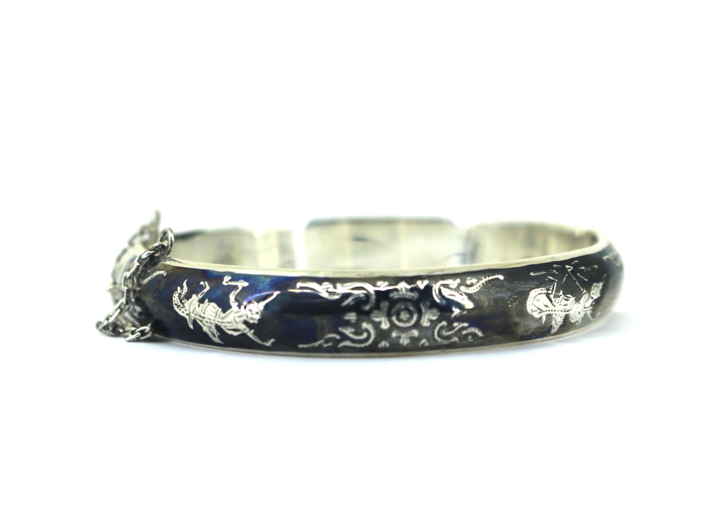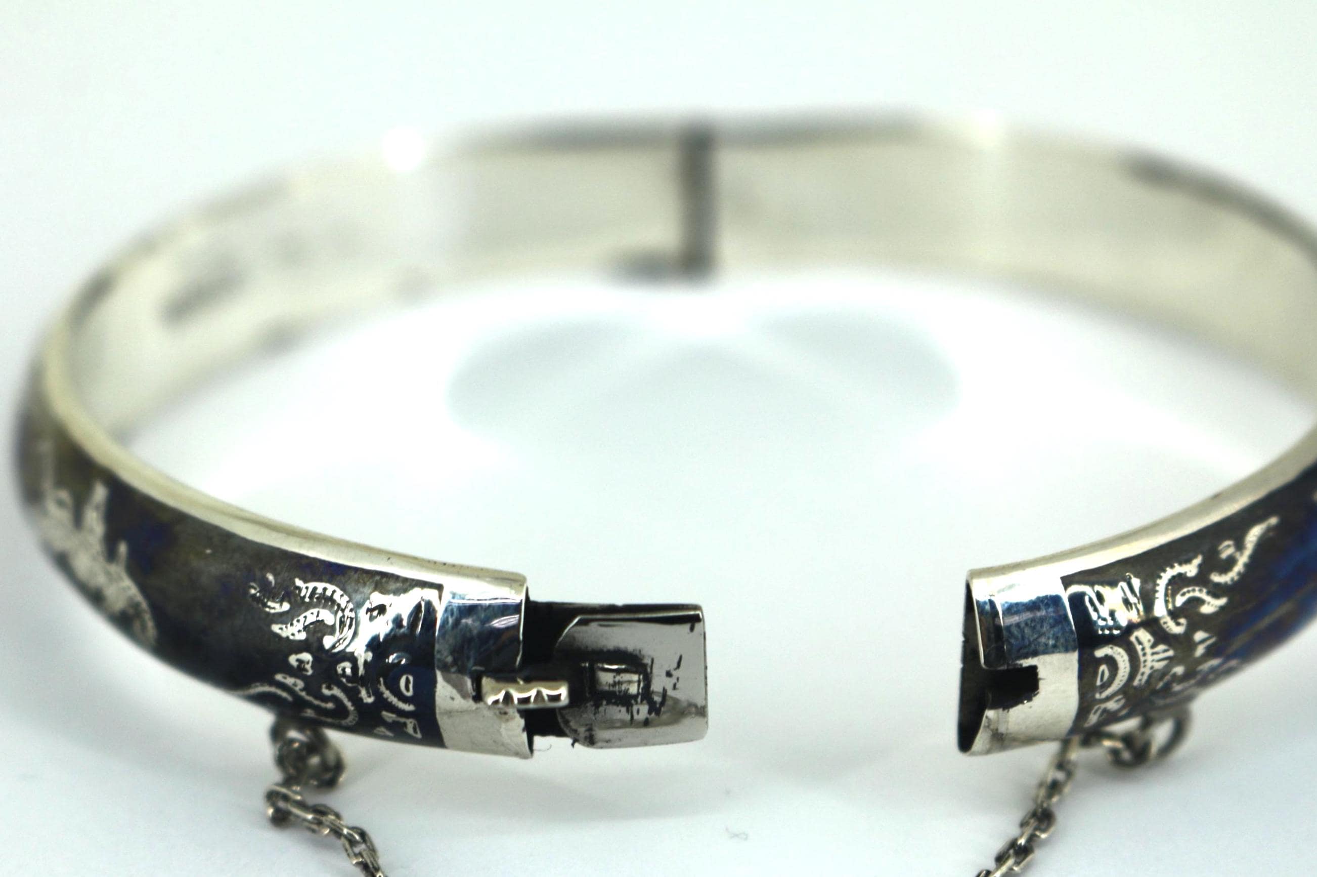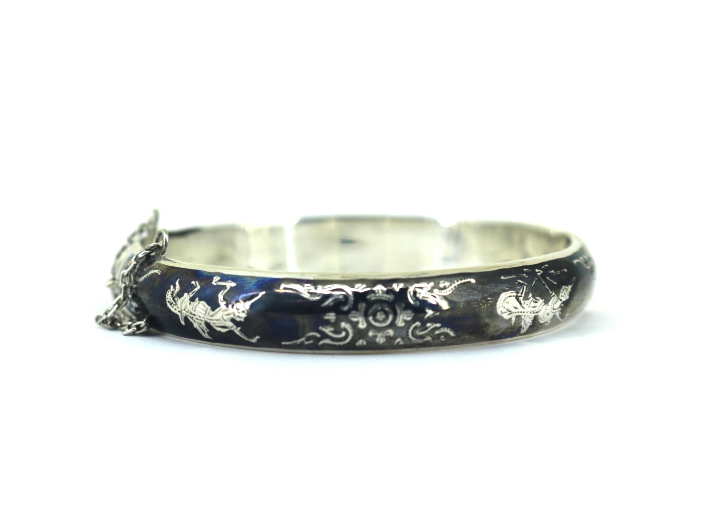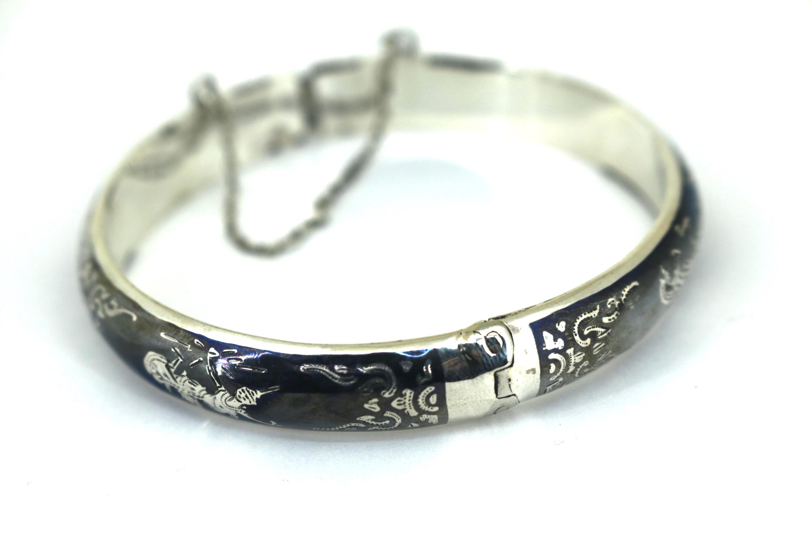 Vintage Thailand Siam Turquoise Enamel Bangle Bracelet 925 Sterling BR 1194