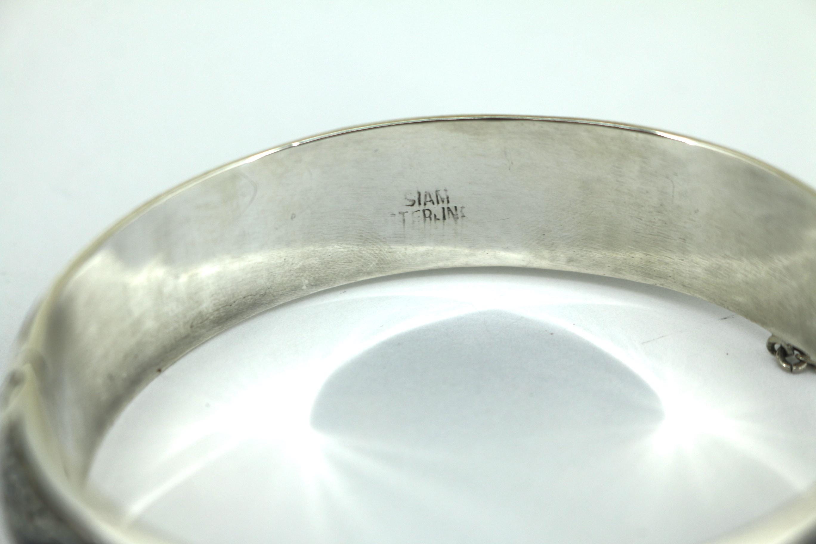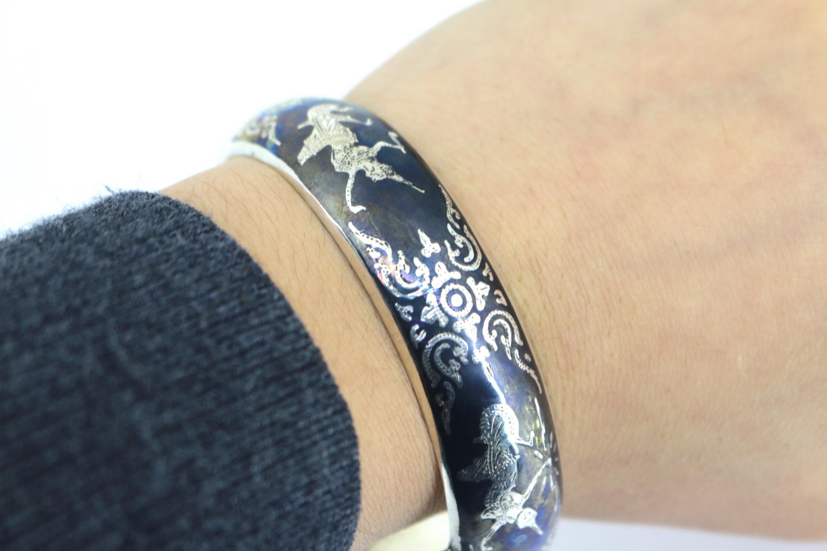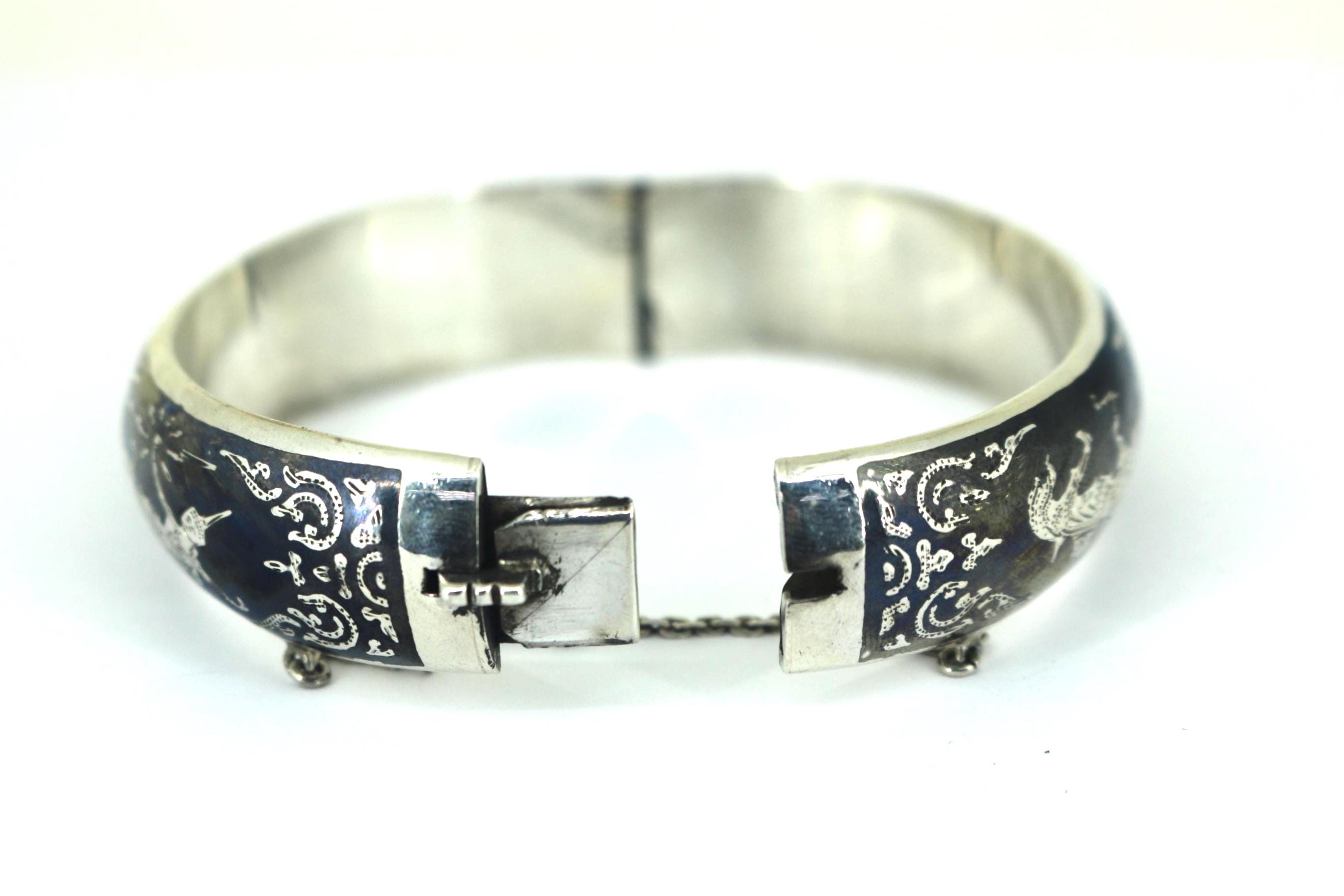 Vintage Thailand Siam Navy Blue Enamel Bangle Bracelet 925 Sterling BR 2294