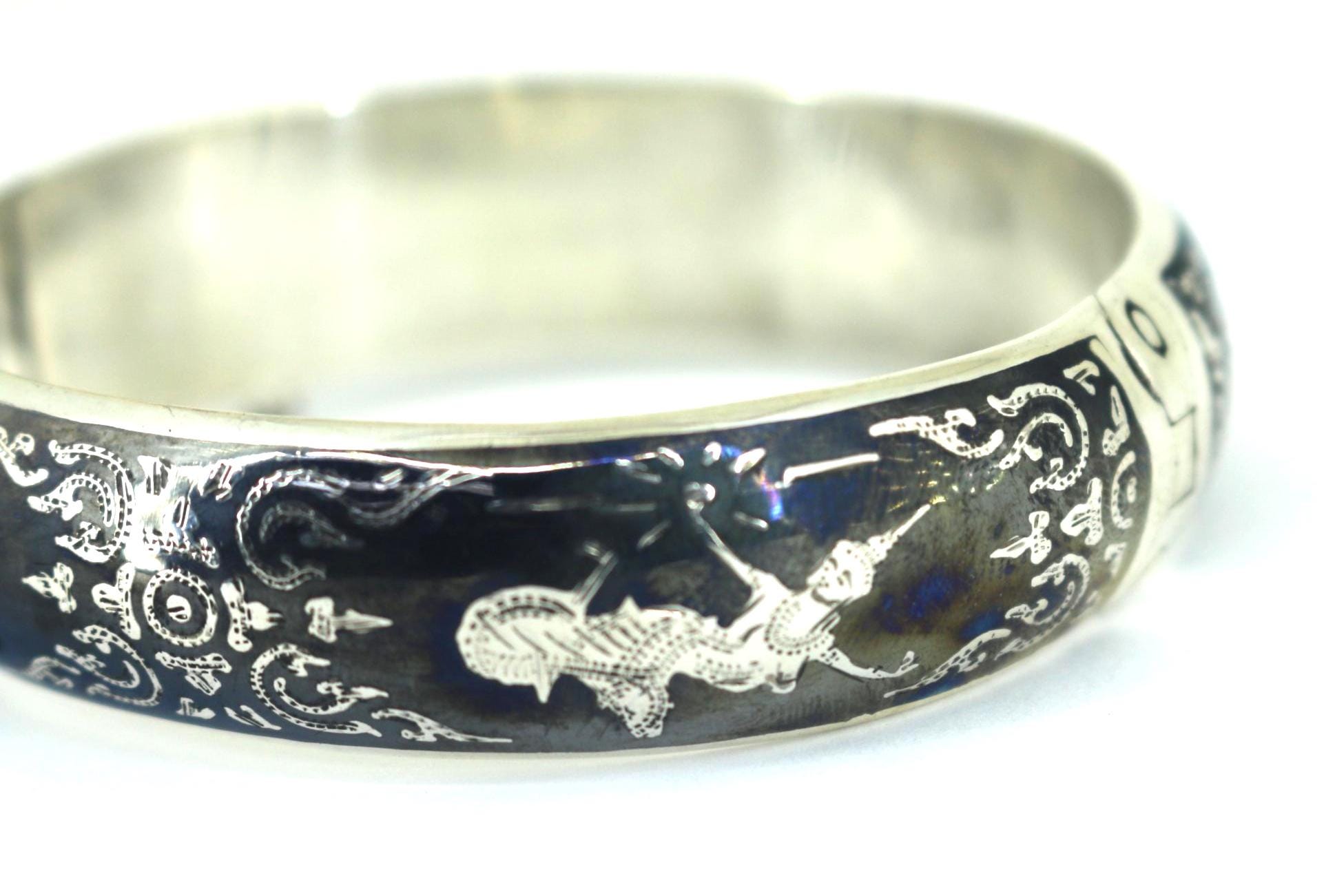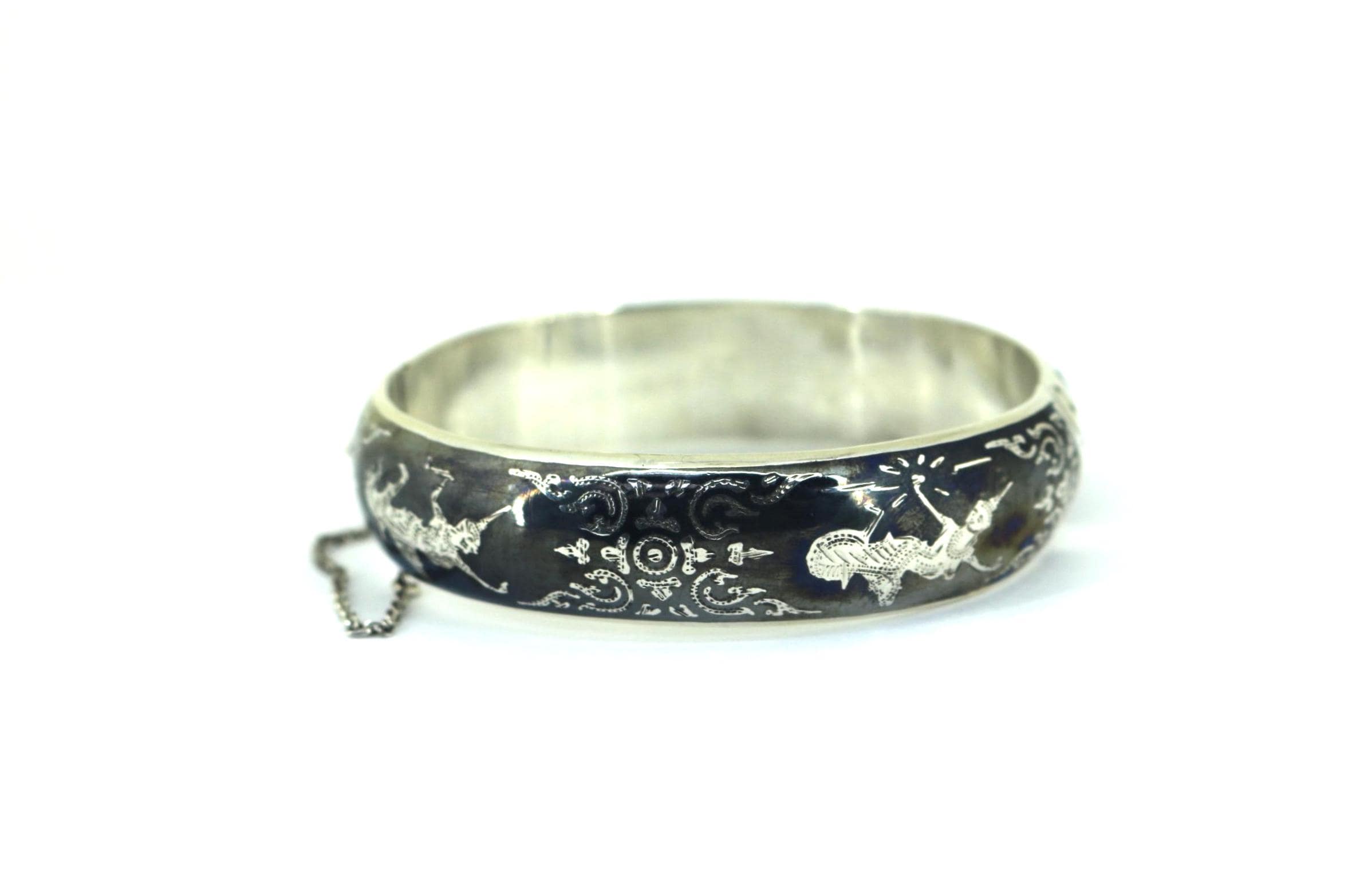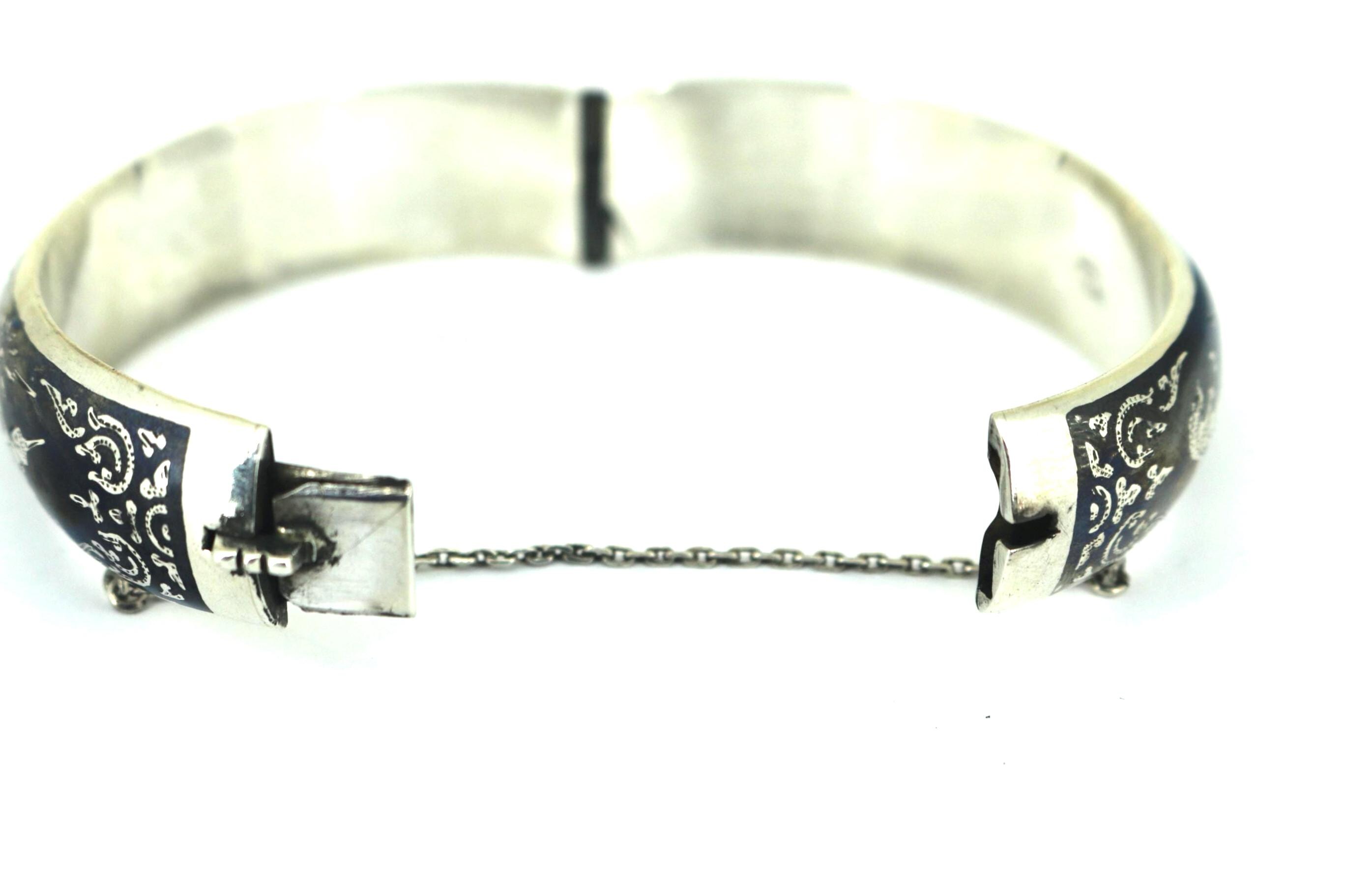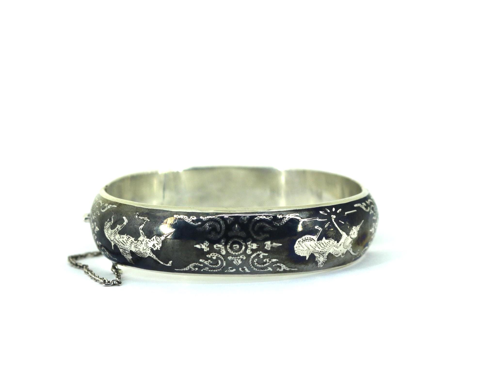 Vintage Thailand Siam Navy Blue Enamel Bangle Bracelet 925 Sterling BR 2294