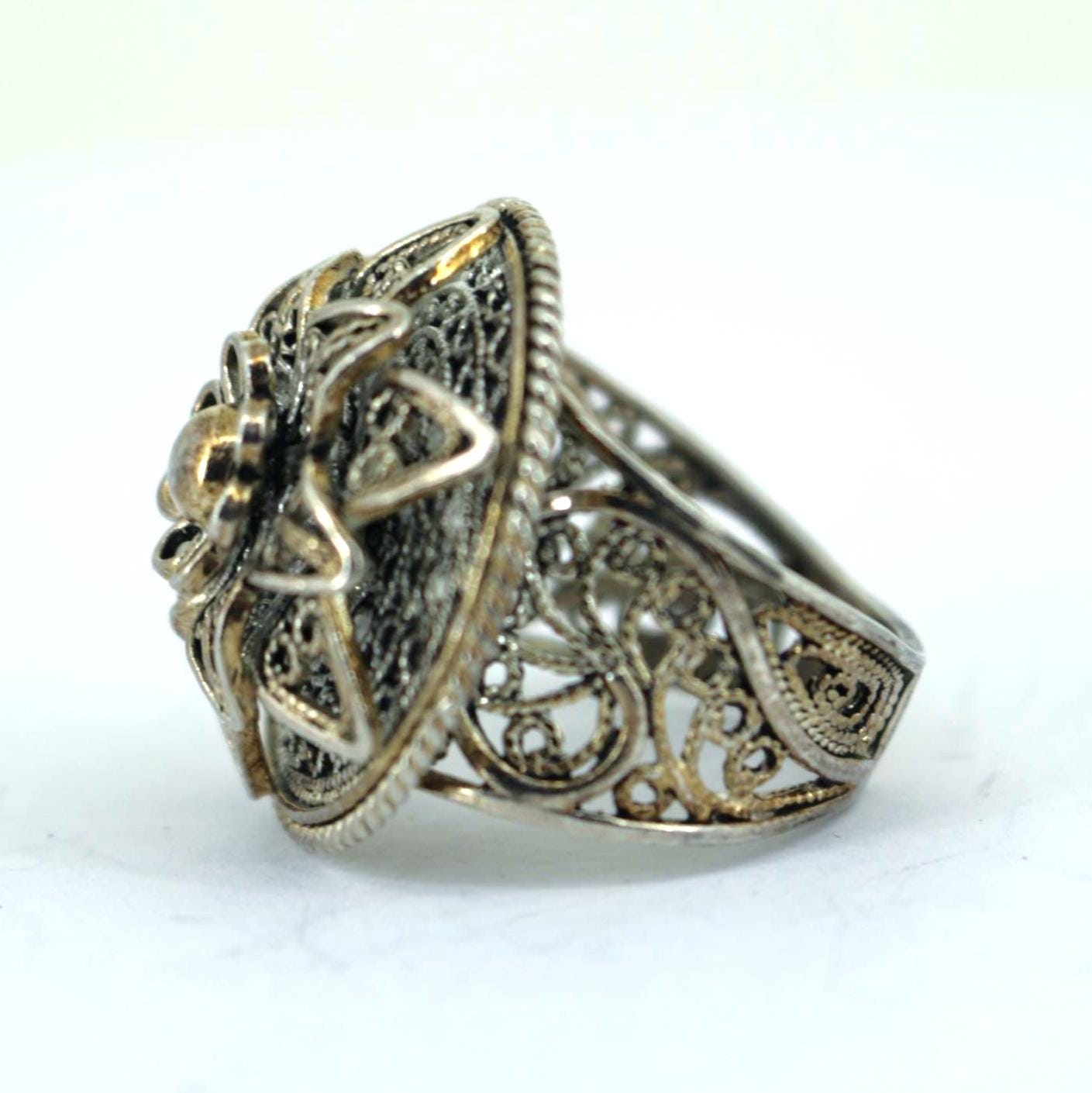 This is Vintage Designer DGS Flower Filigree Sterling Silver Ring RG 4206
