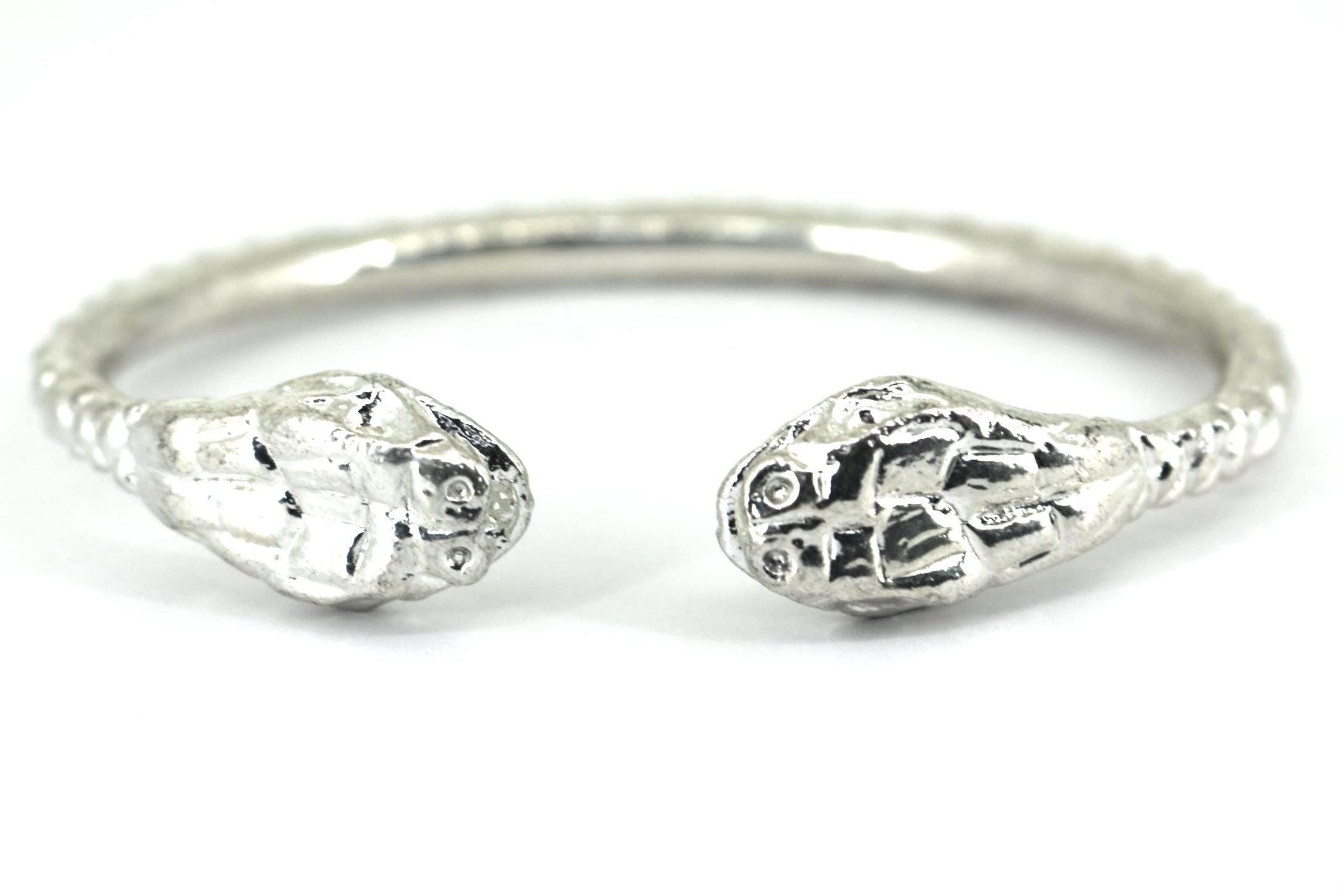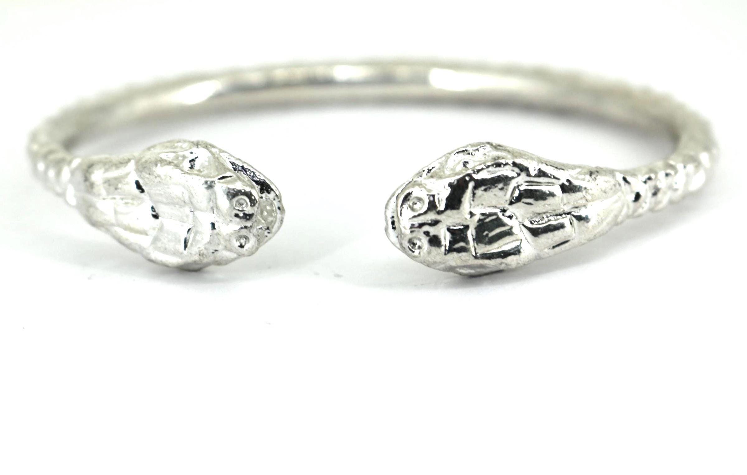 Vintage Vintage Thick Snake Head 925 Sterling Silver West Indian Bangle BR 795