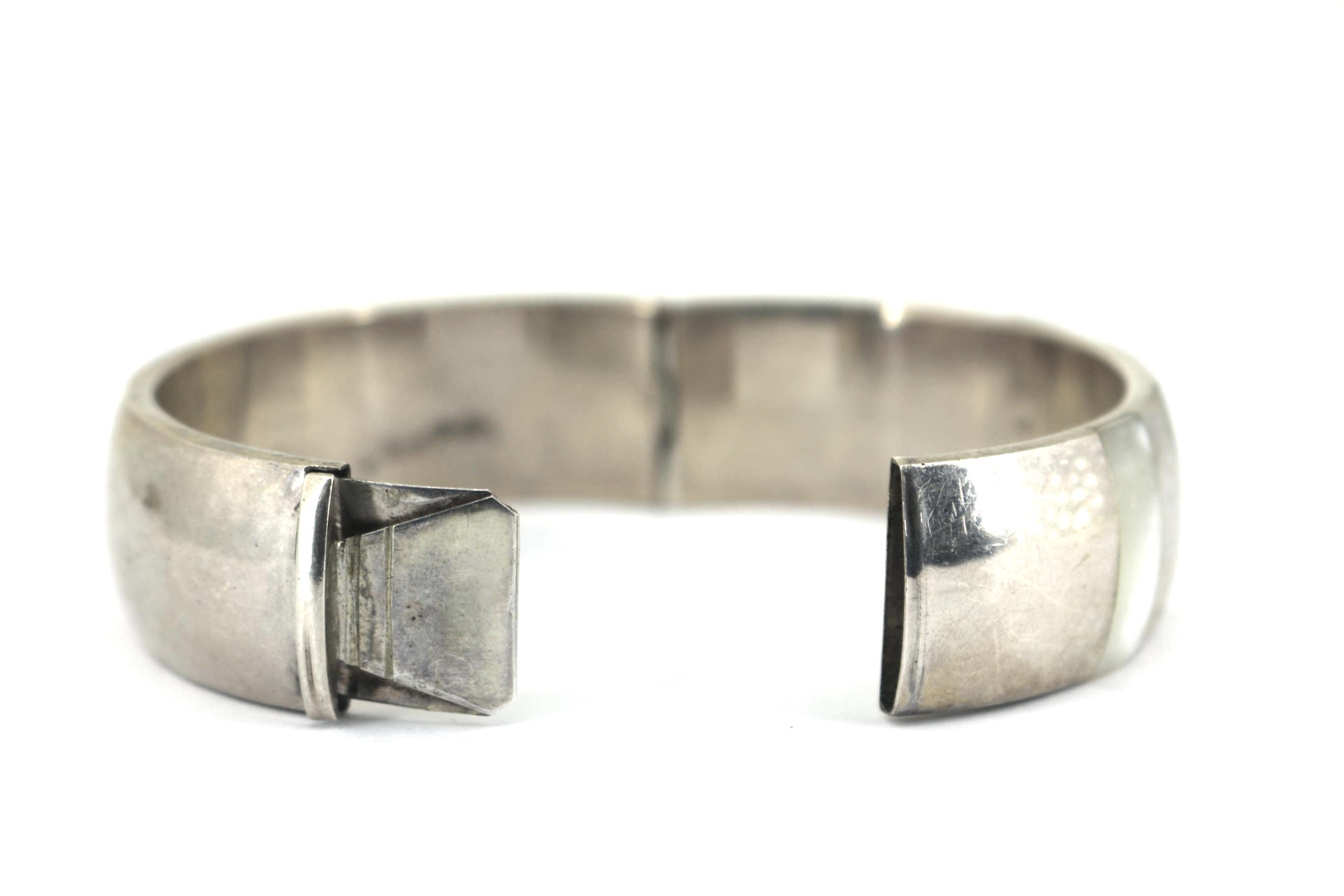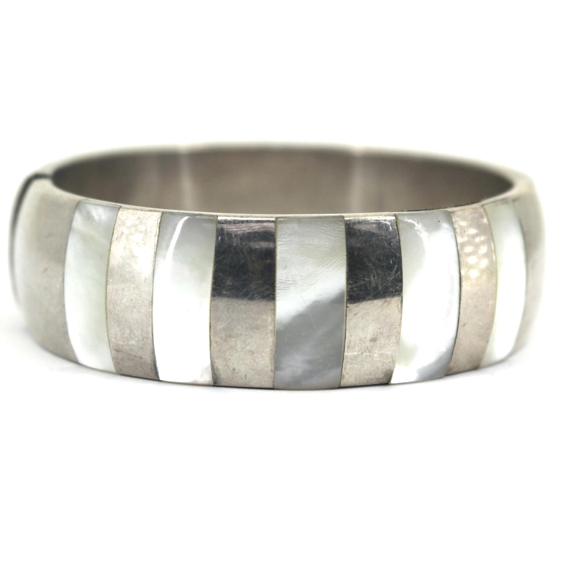 Vintage Vintage 80s Mother of Pearl Shell Striped Wide Chunky Bangle Bracelet BR 1912