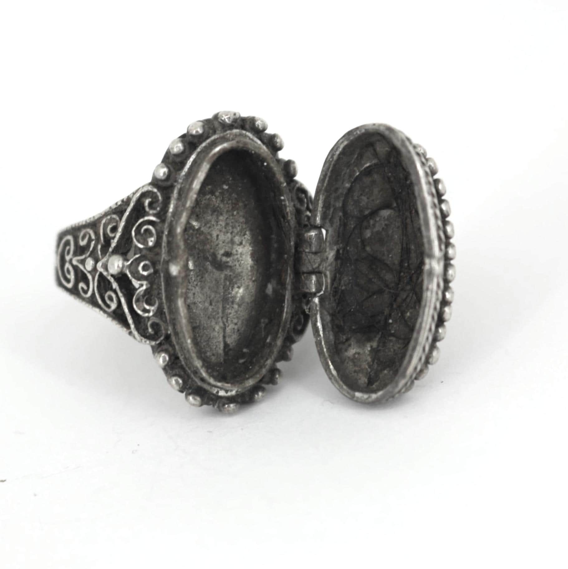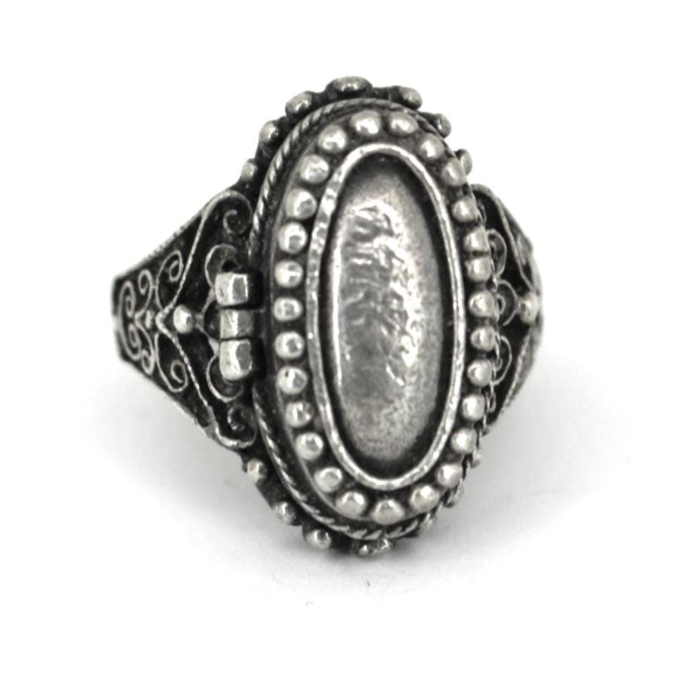 Victorian Gothic Secret Compartment Ring Silver Ring Size 6.75 RG 483