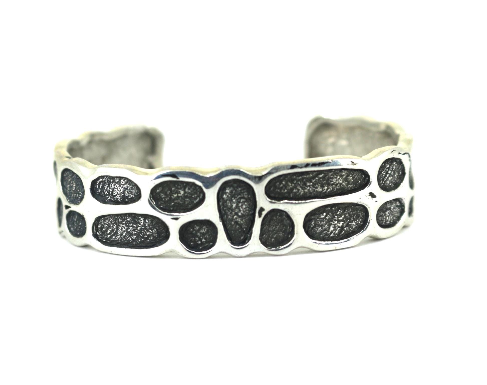 Vintage Cellular Inspired Pattern 925 Sterling Silver Cuff Bracelet BR 185