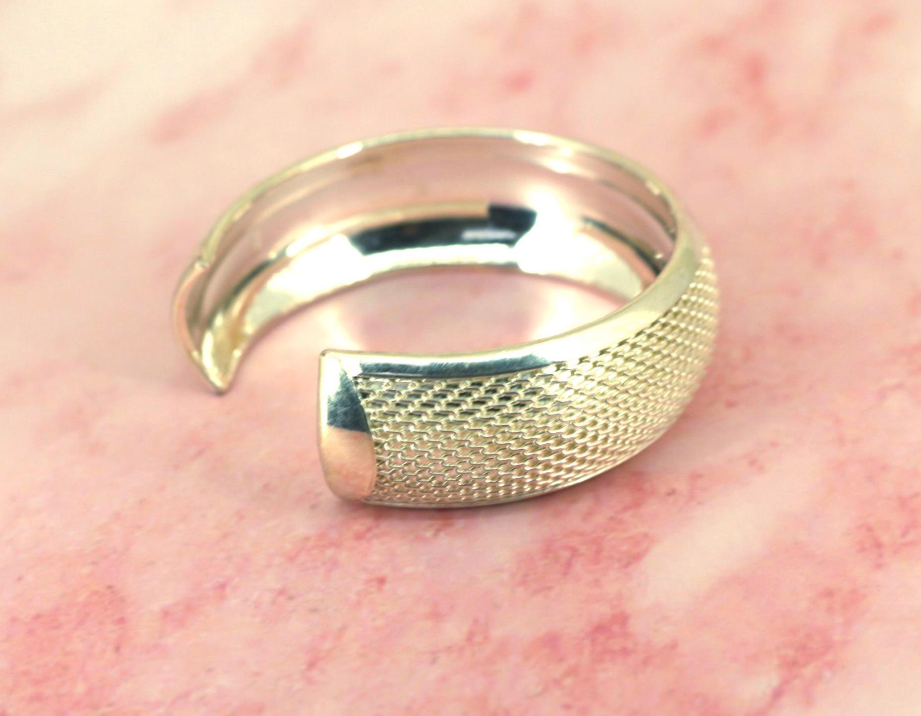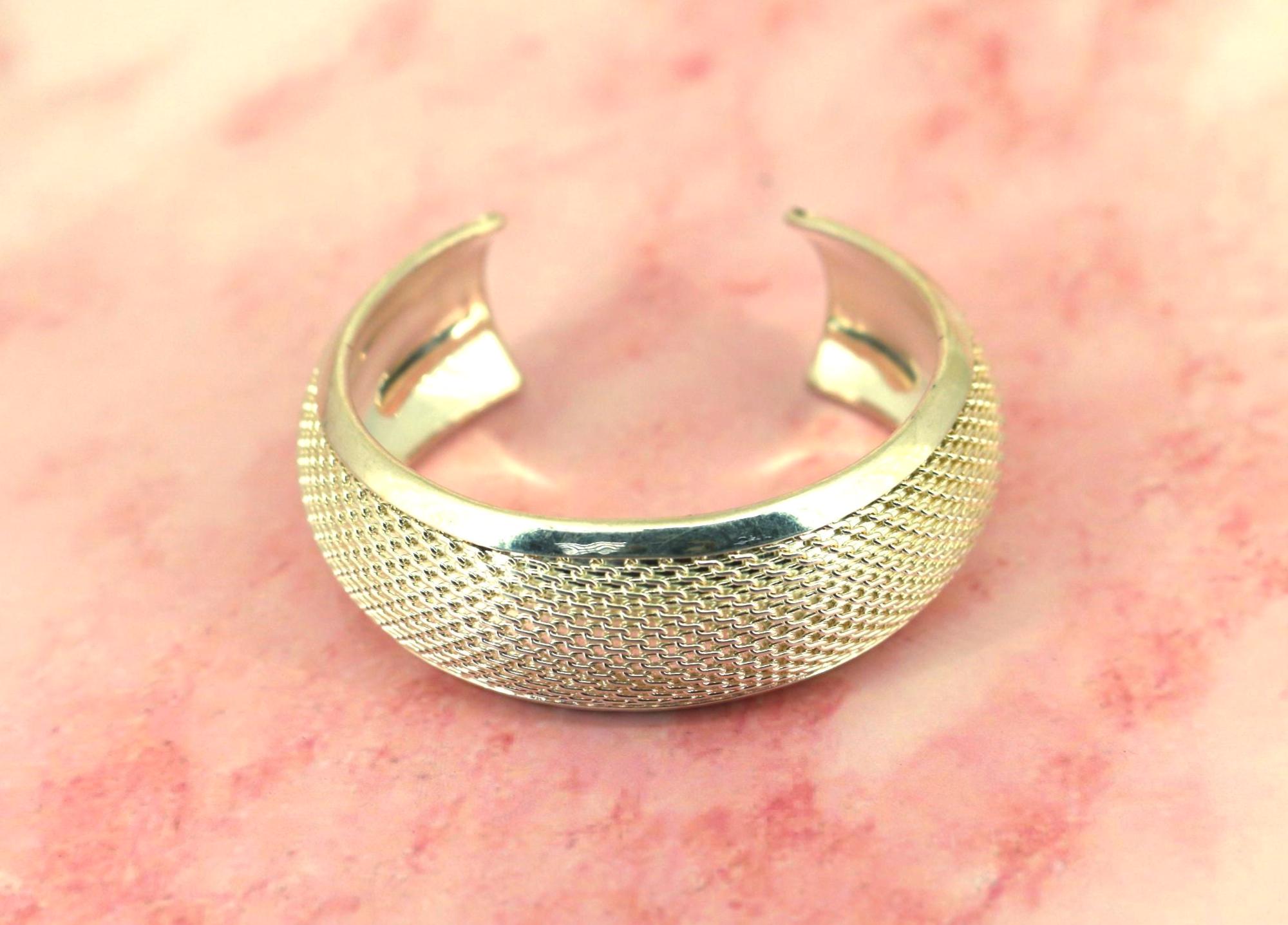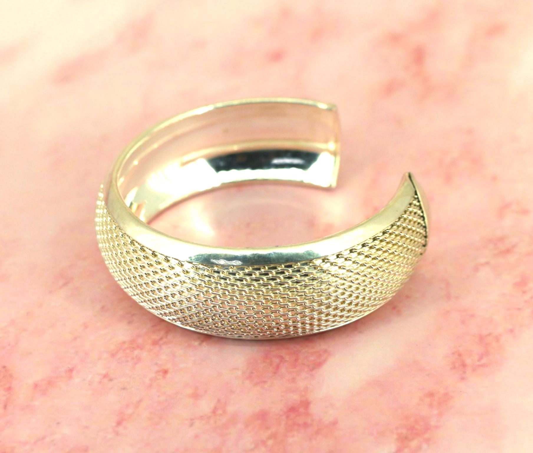 Vintage Textured Mesh 925 Sterling Silver Cuff Bracelet BR 186