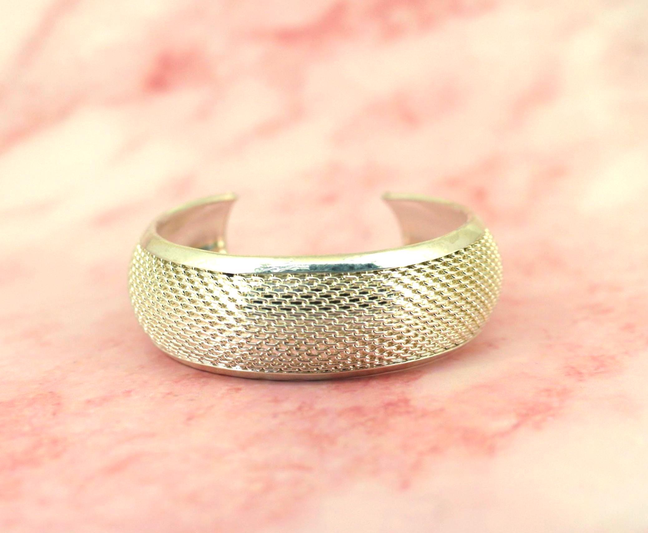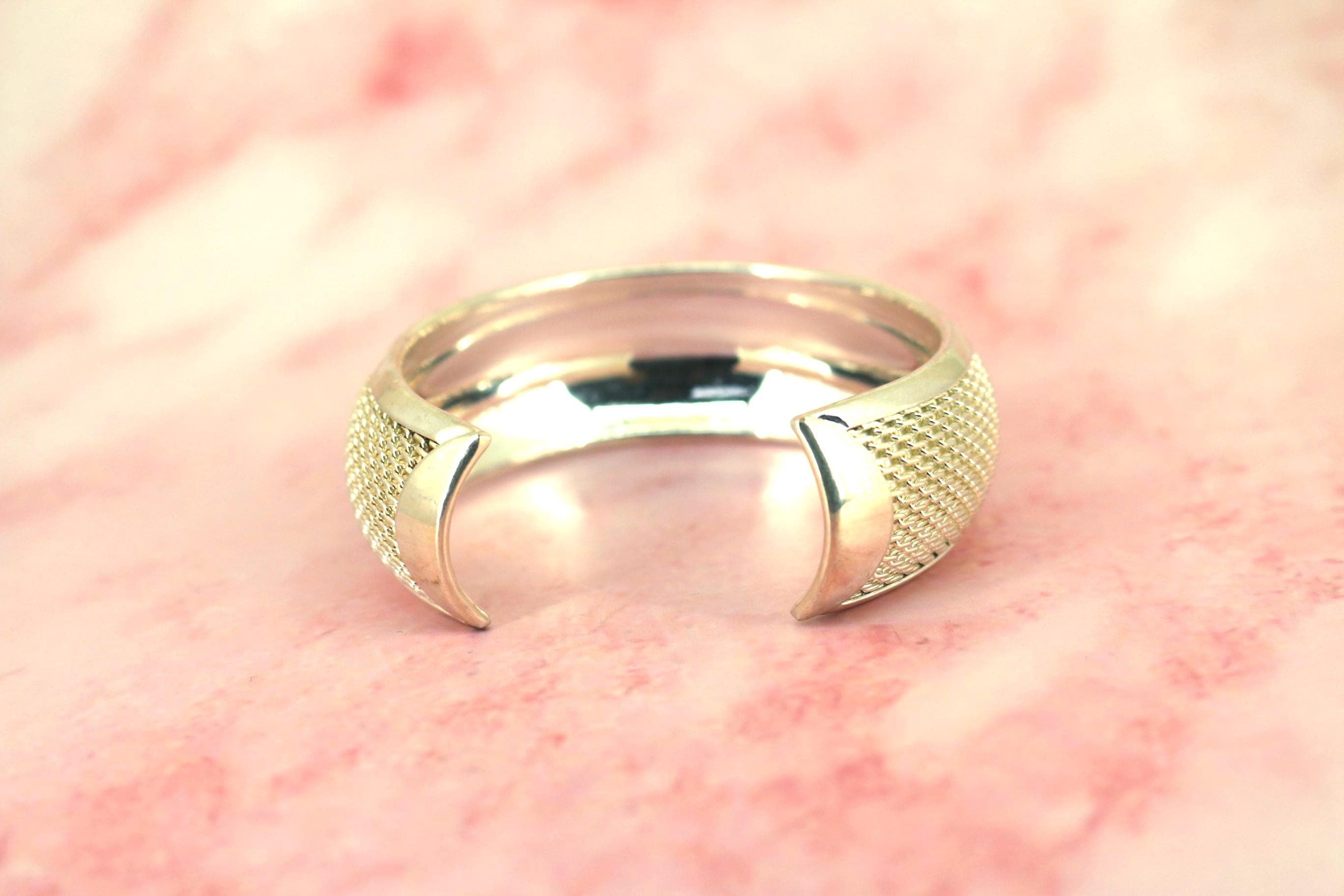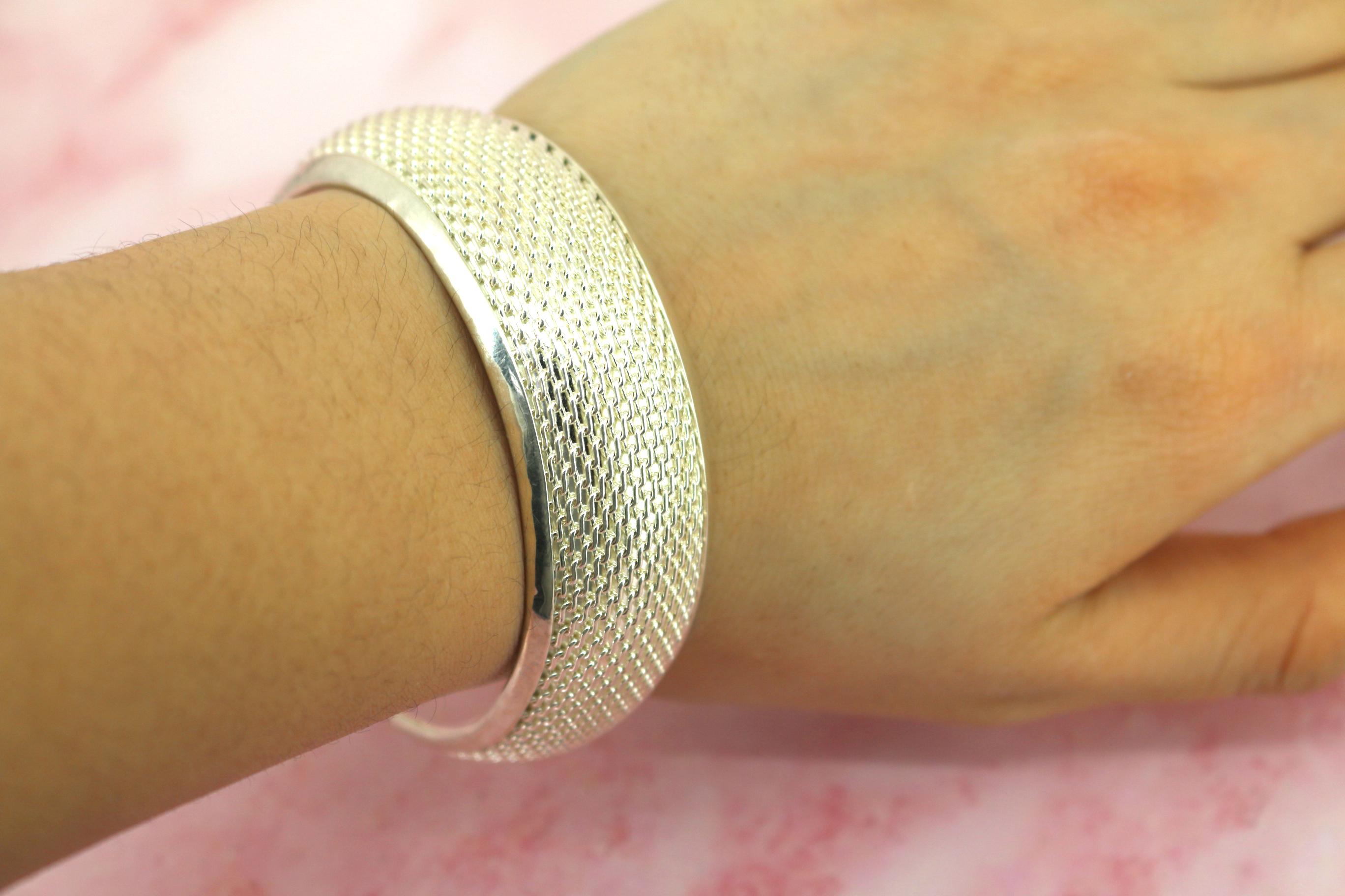 Vintage Textured Mesh 925 Sterling Silver Cuff Bracelet BR 186