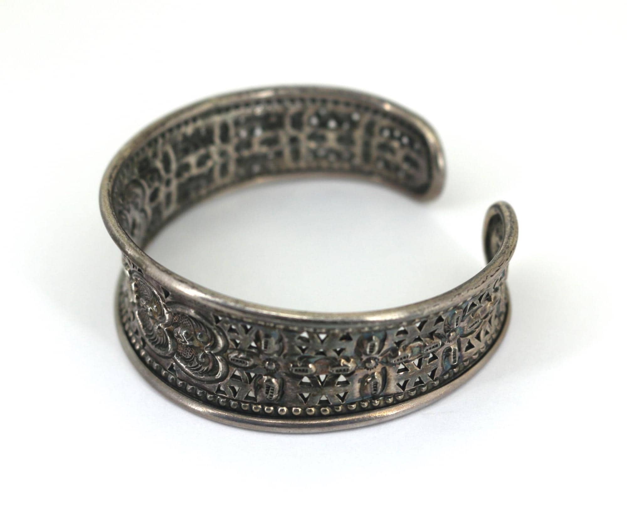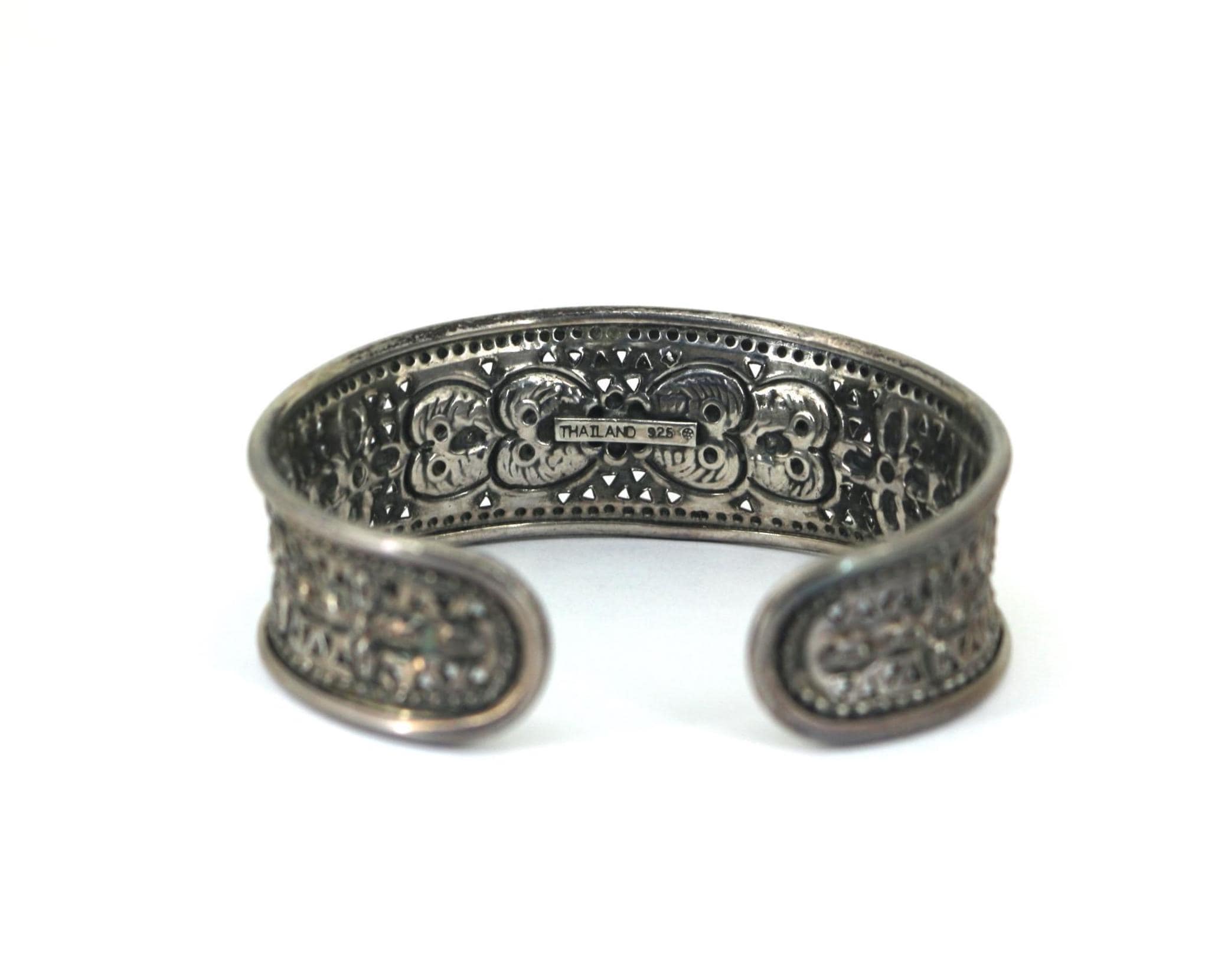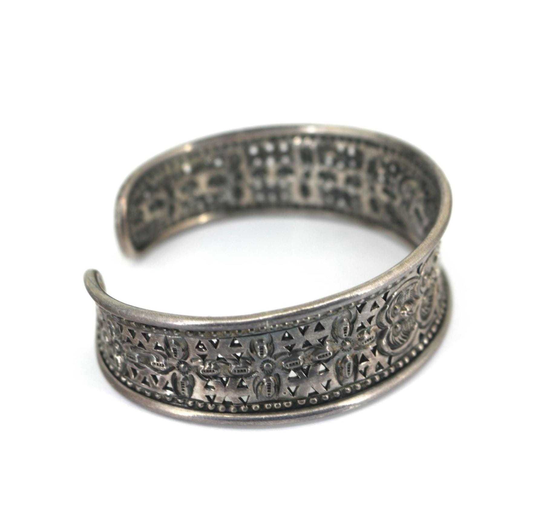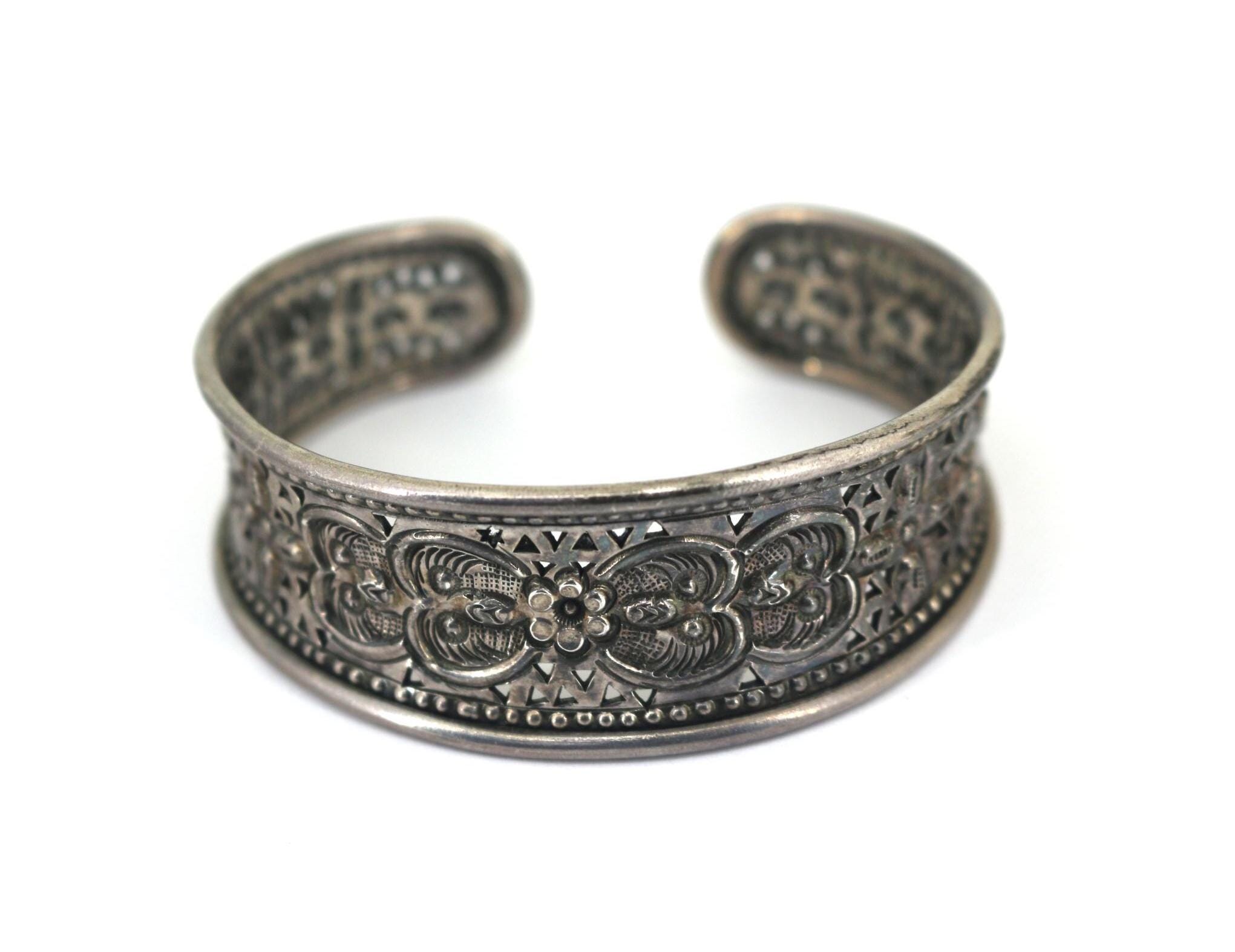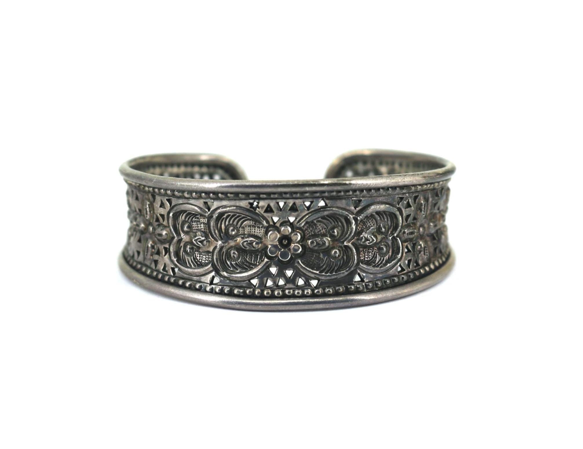 Vintage Thailand Scroll Floral Cuff Bracelet 925 Sterling Silver BR 190