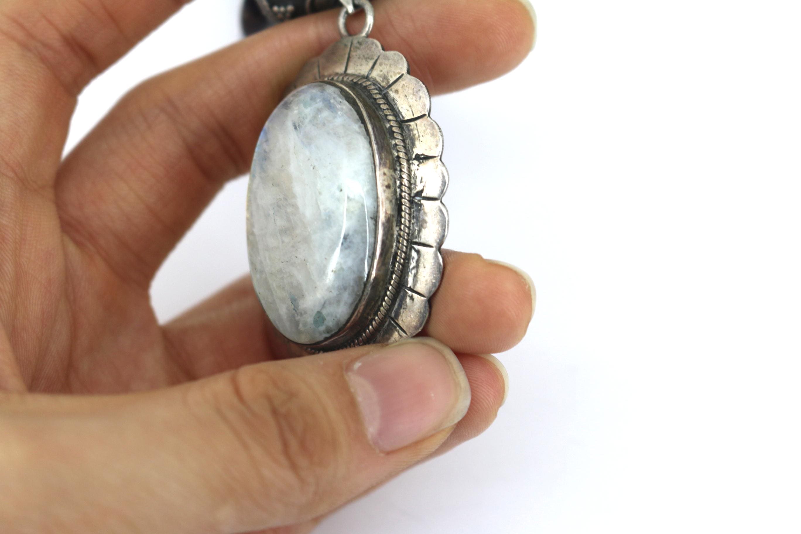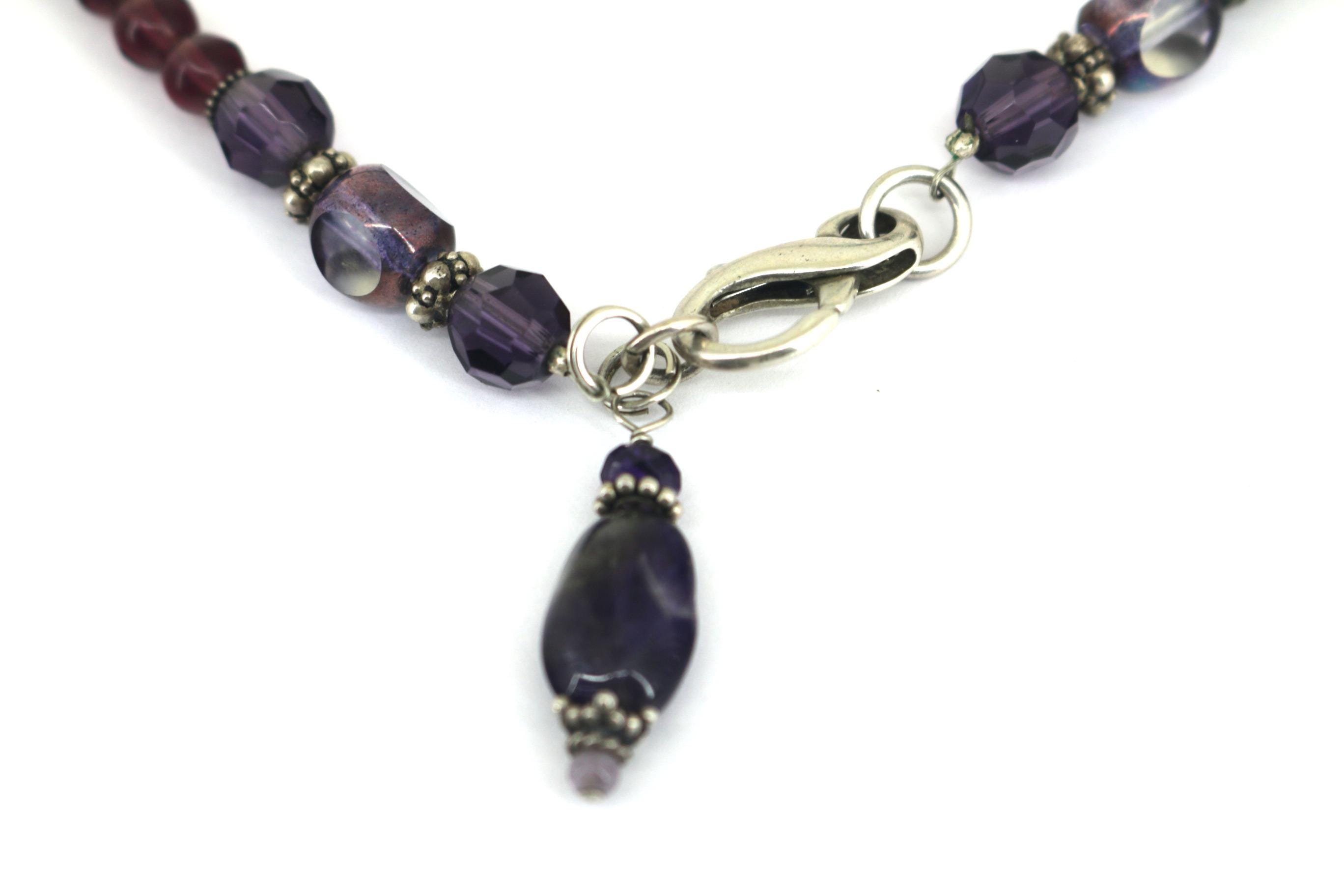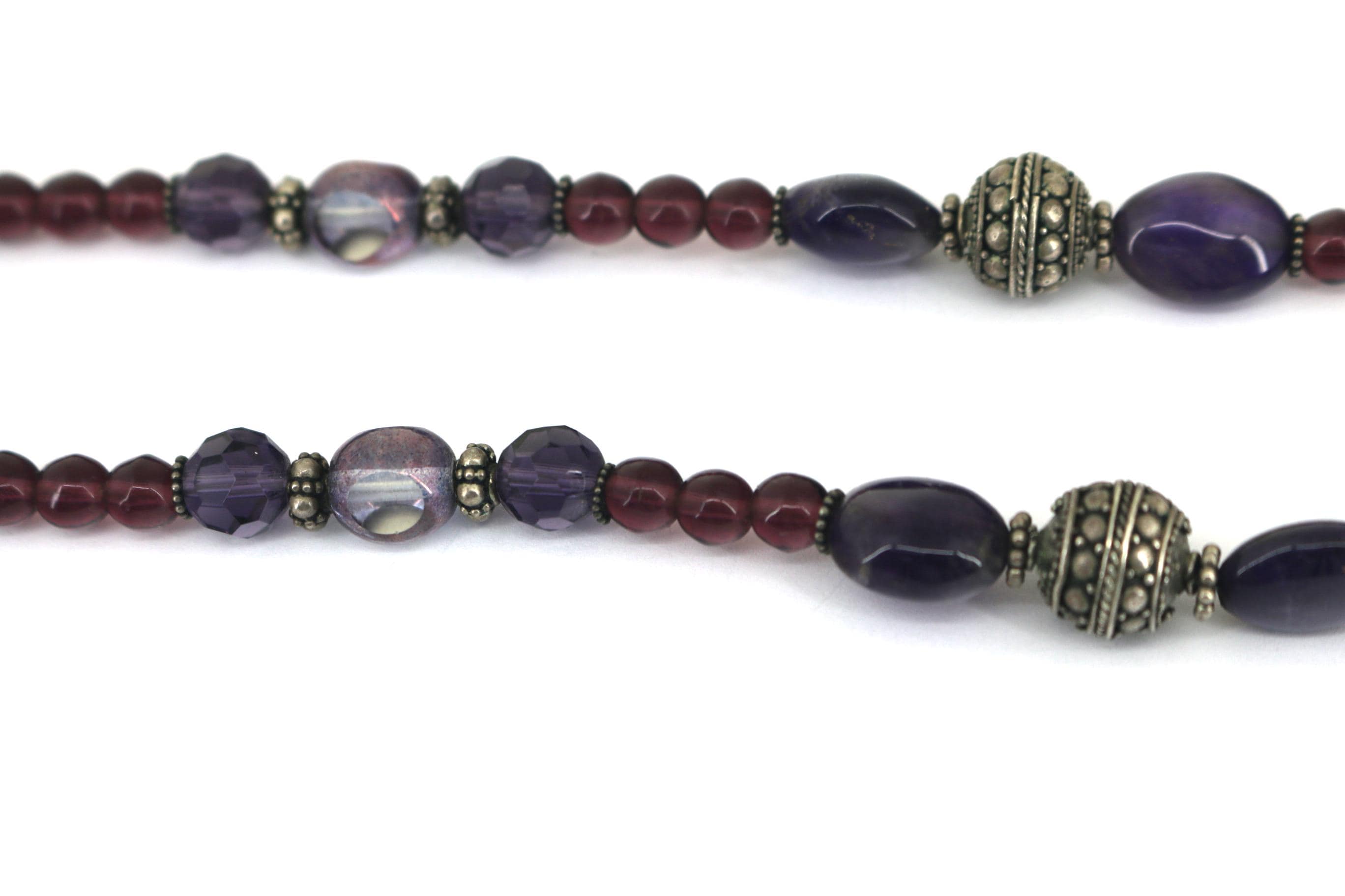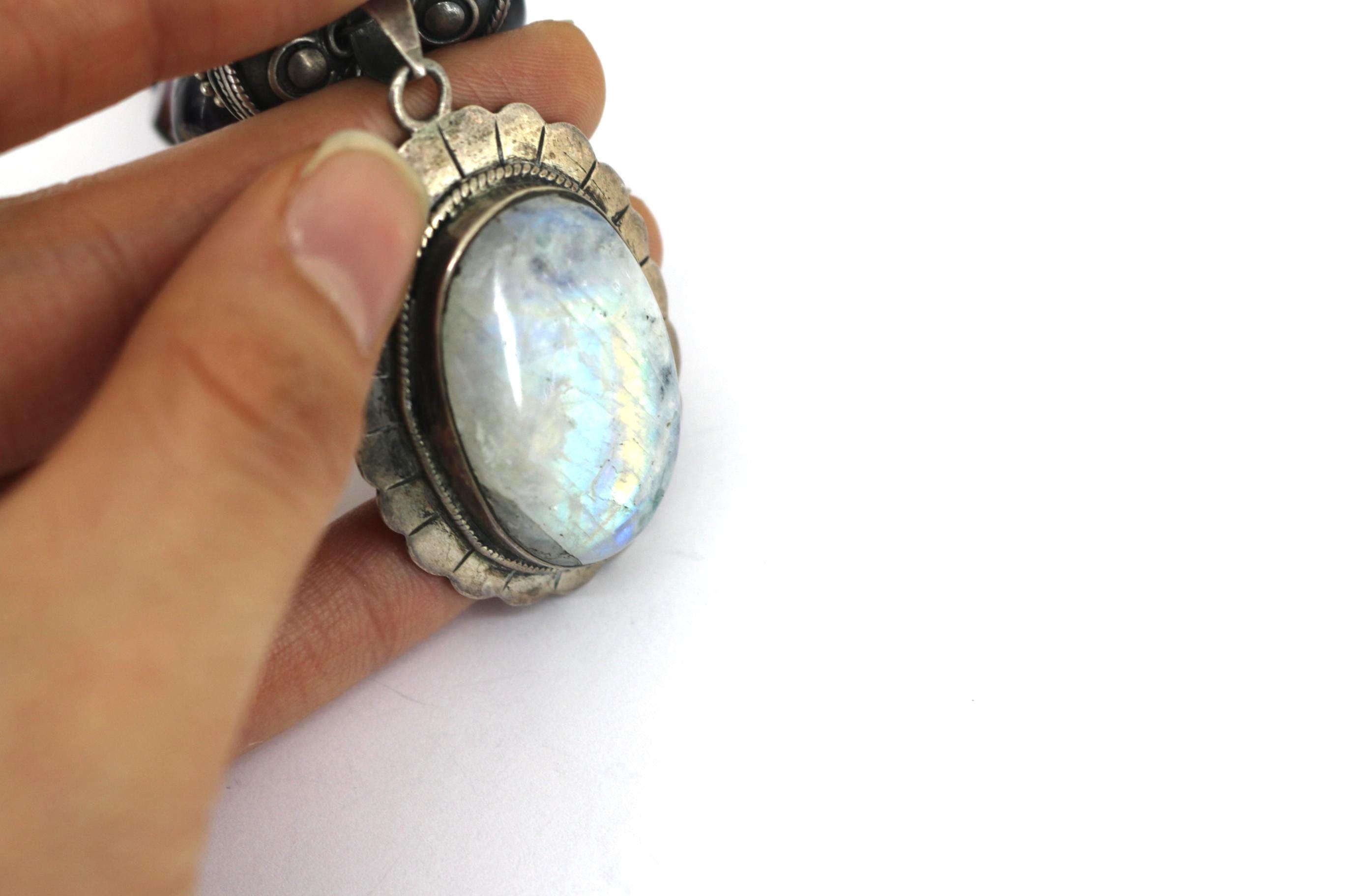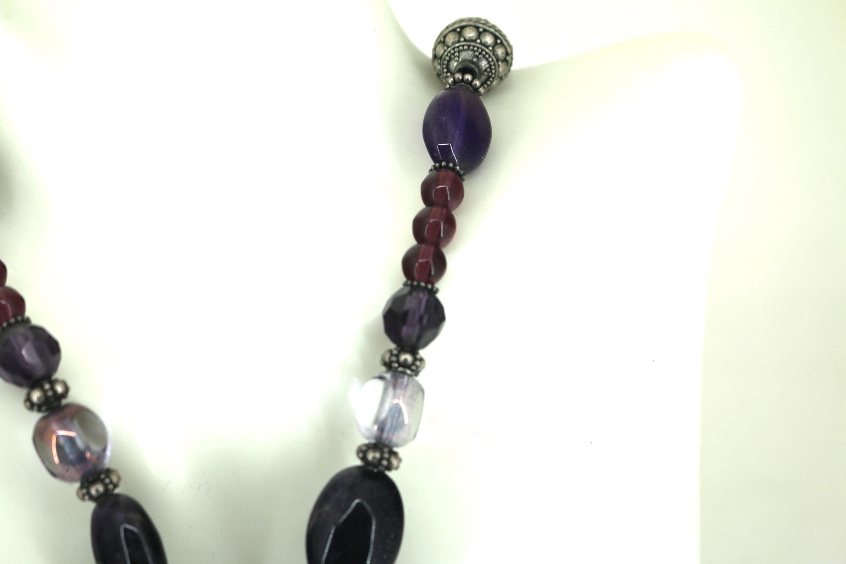 This is Vintage Natural Deep Purple Amethyst White Moonstone Oval Pendant Beads Beaded Chain Gorgeous Design Necklace