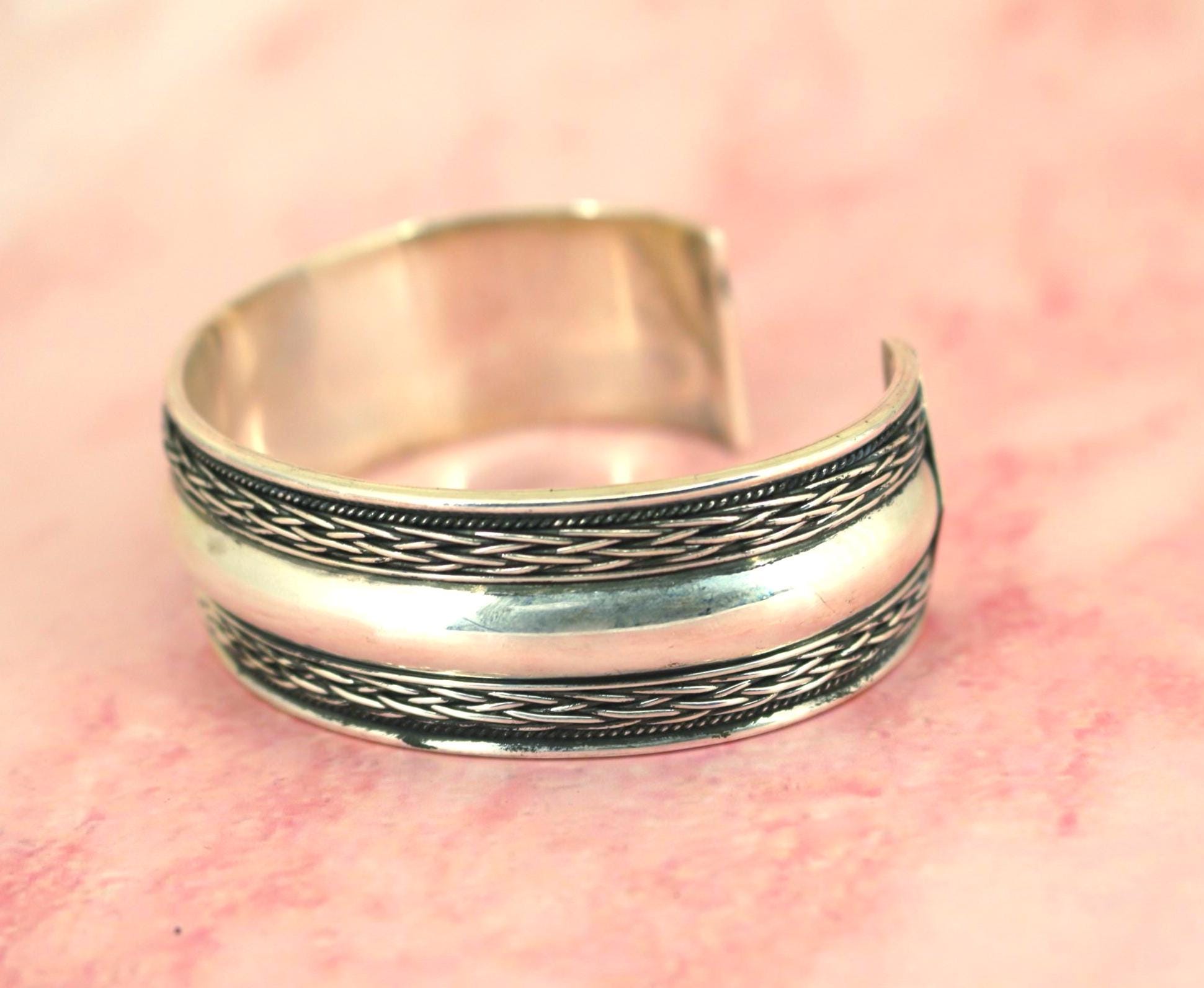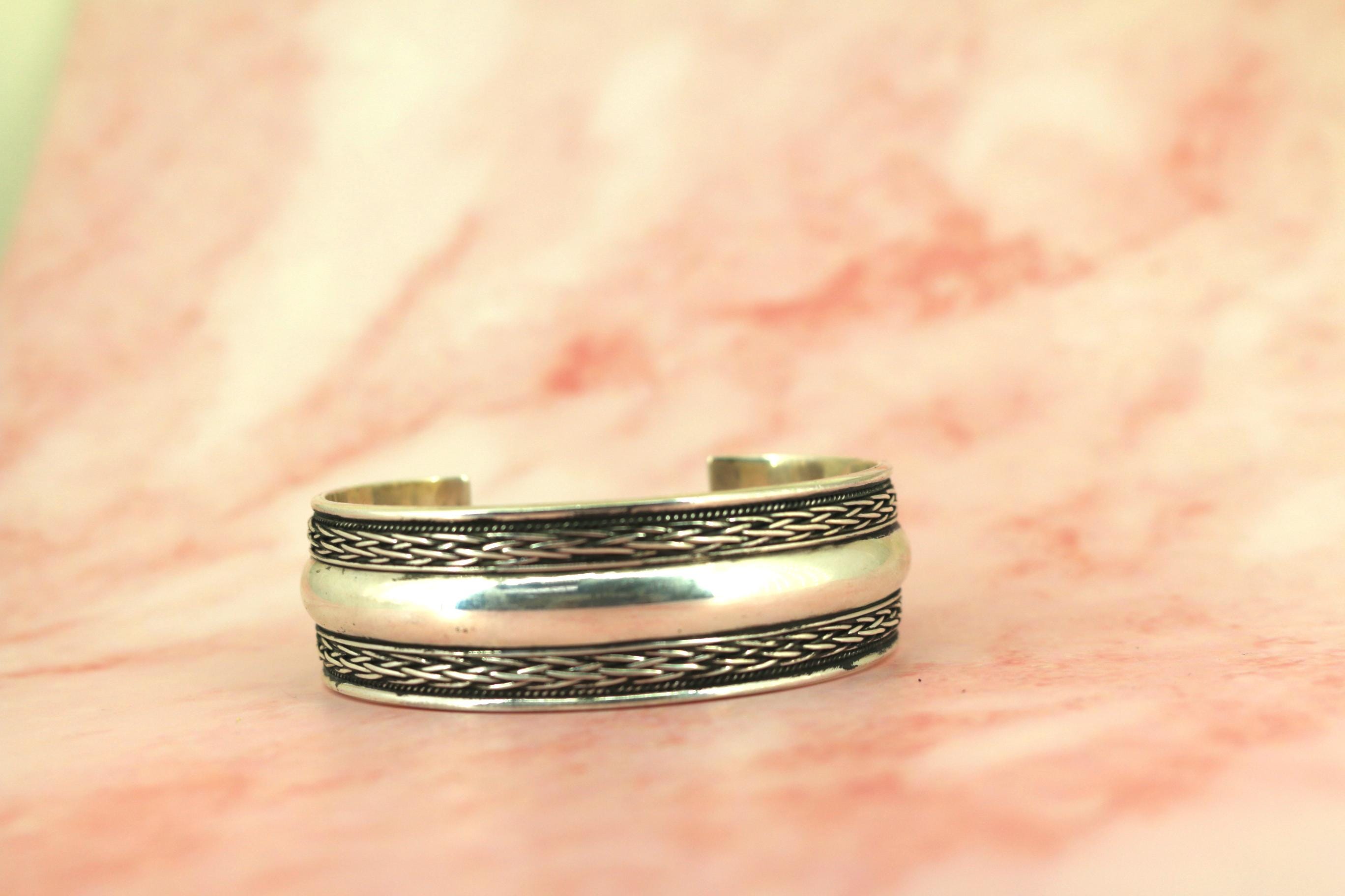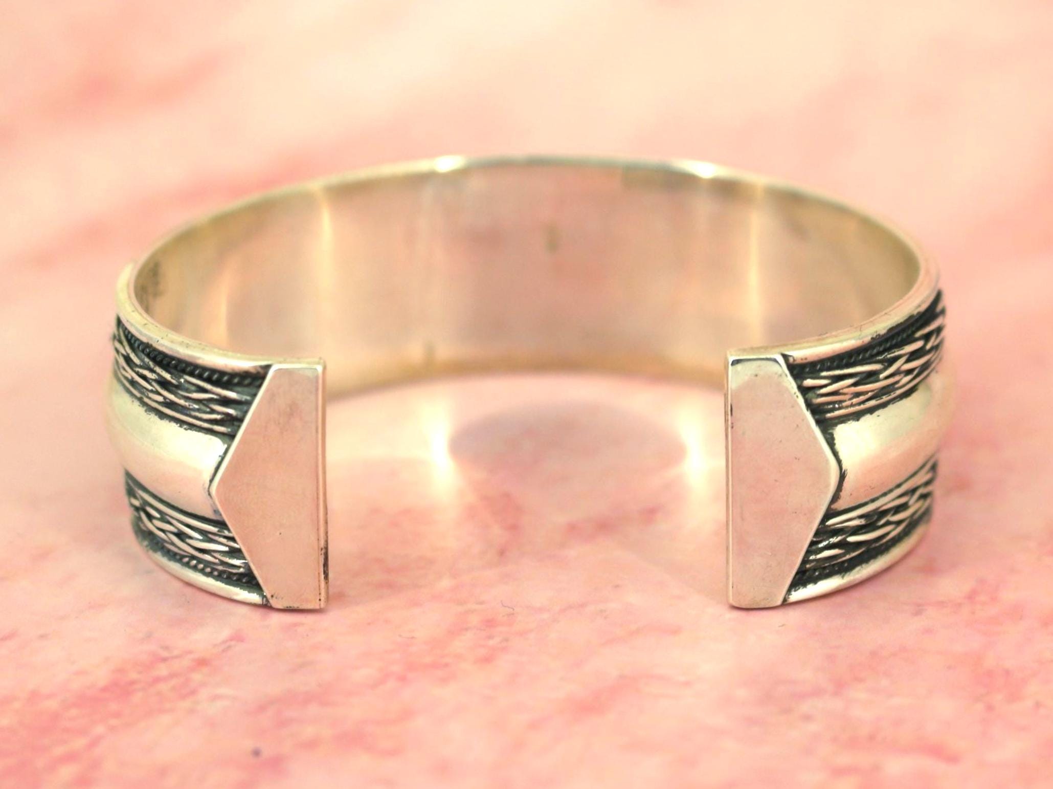 Vintage Textured Braided Wide 925 Sterling Silver Cuff Bracelet BR 196
