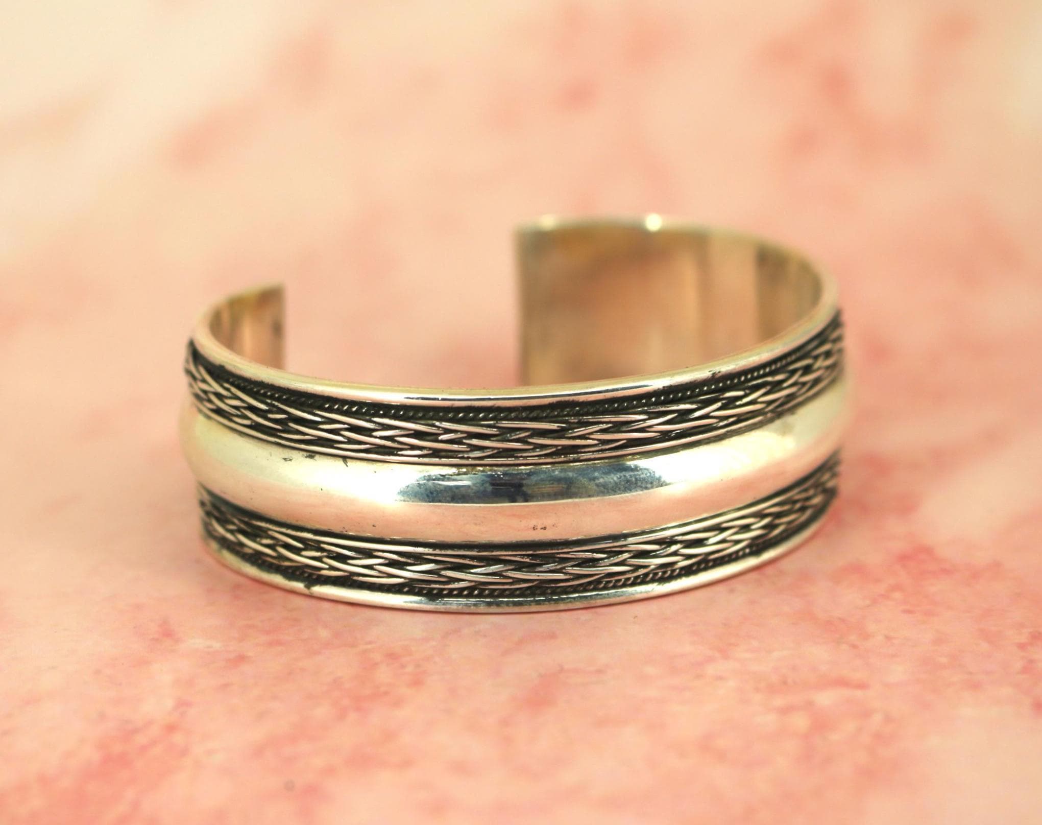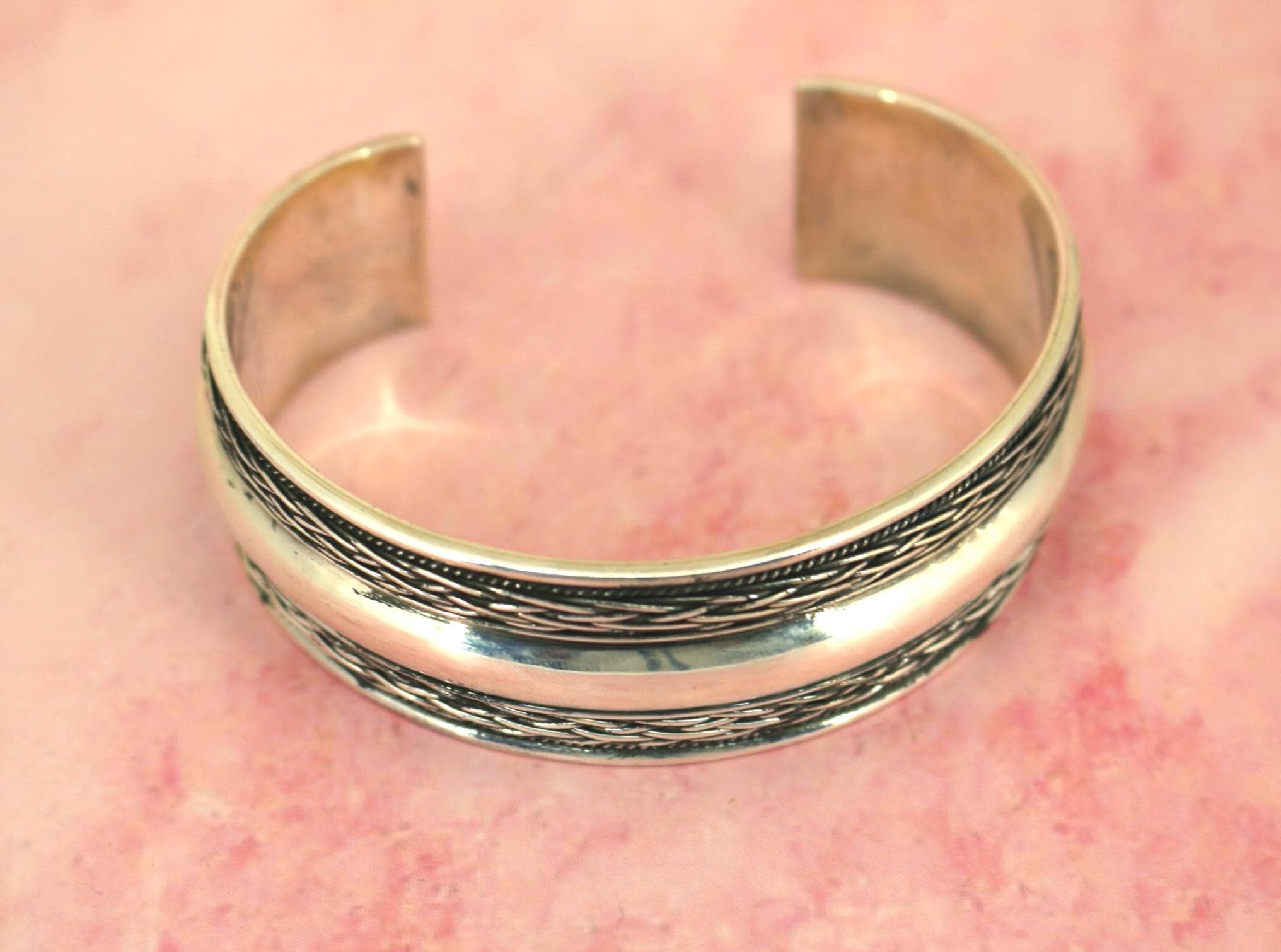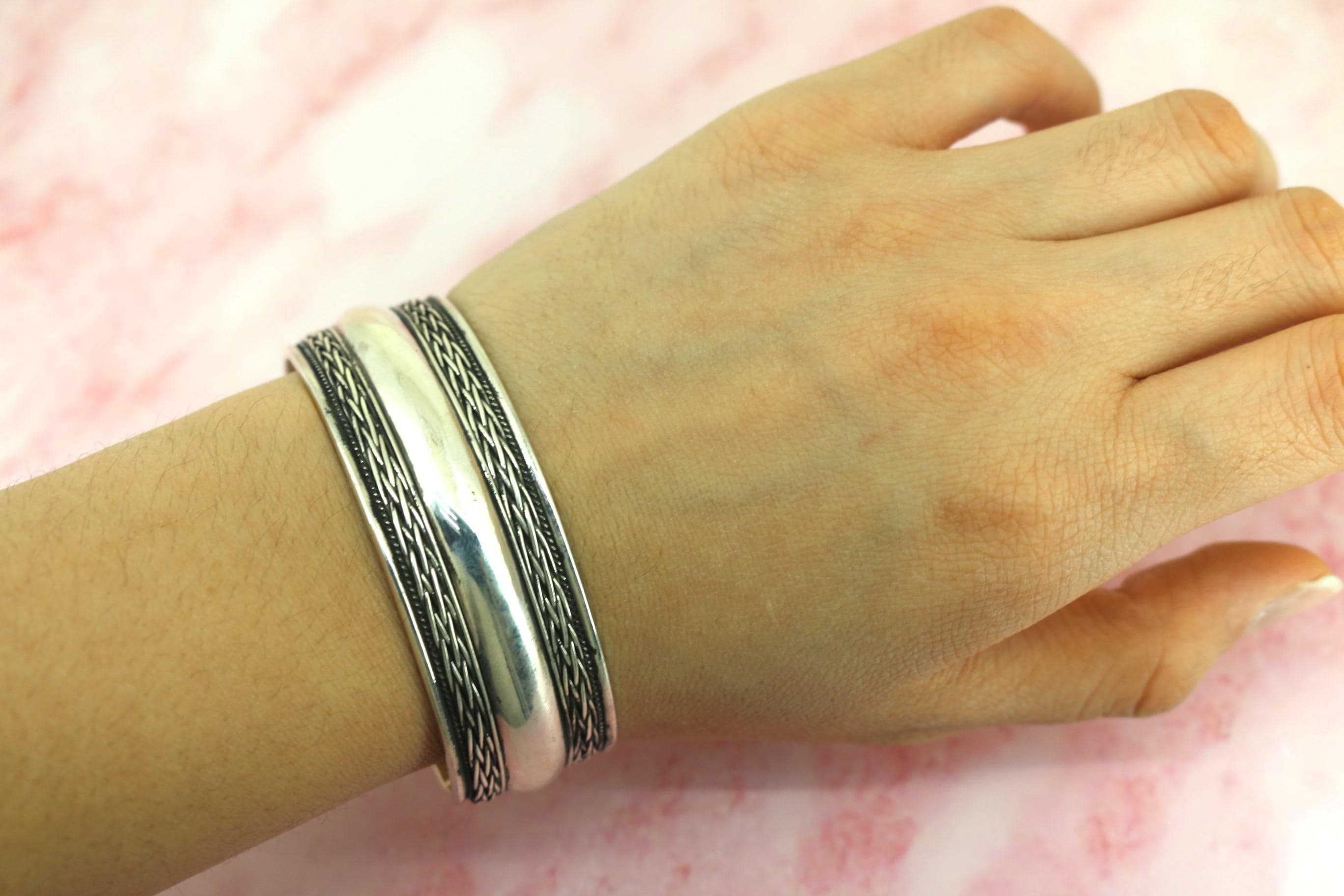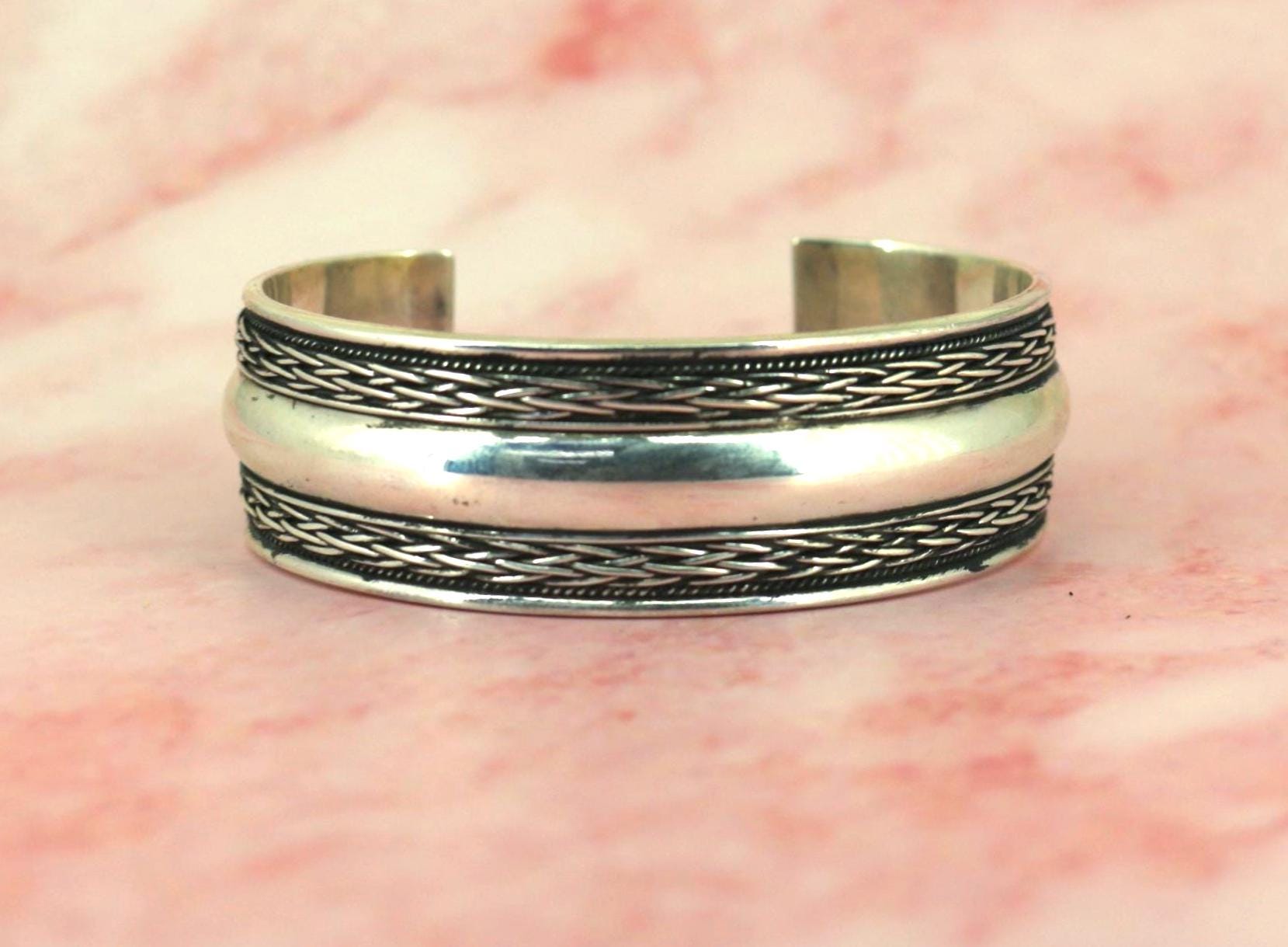 Vintage Textured Braided Wide 925 Sterling Silver Cuff Bracelet BR 196