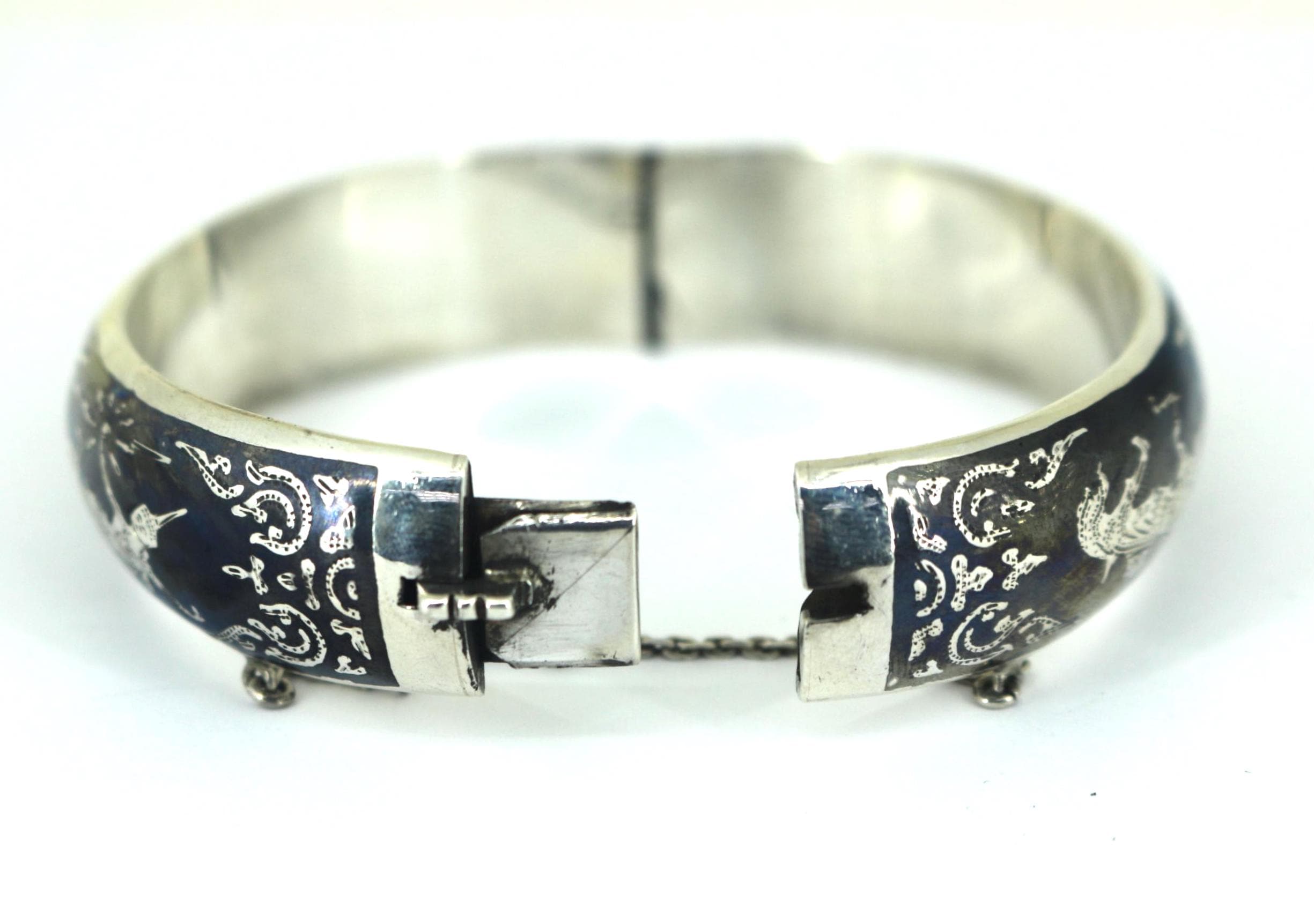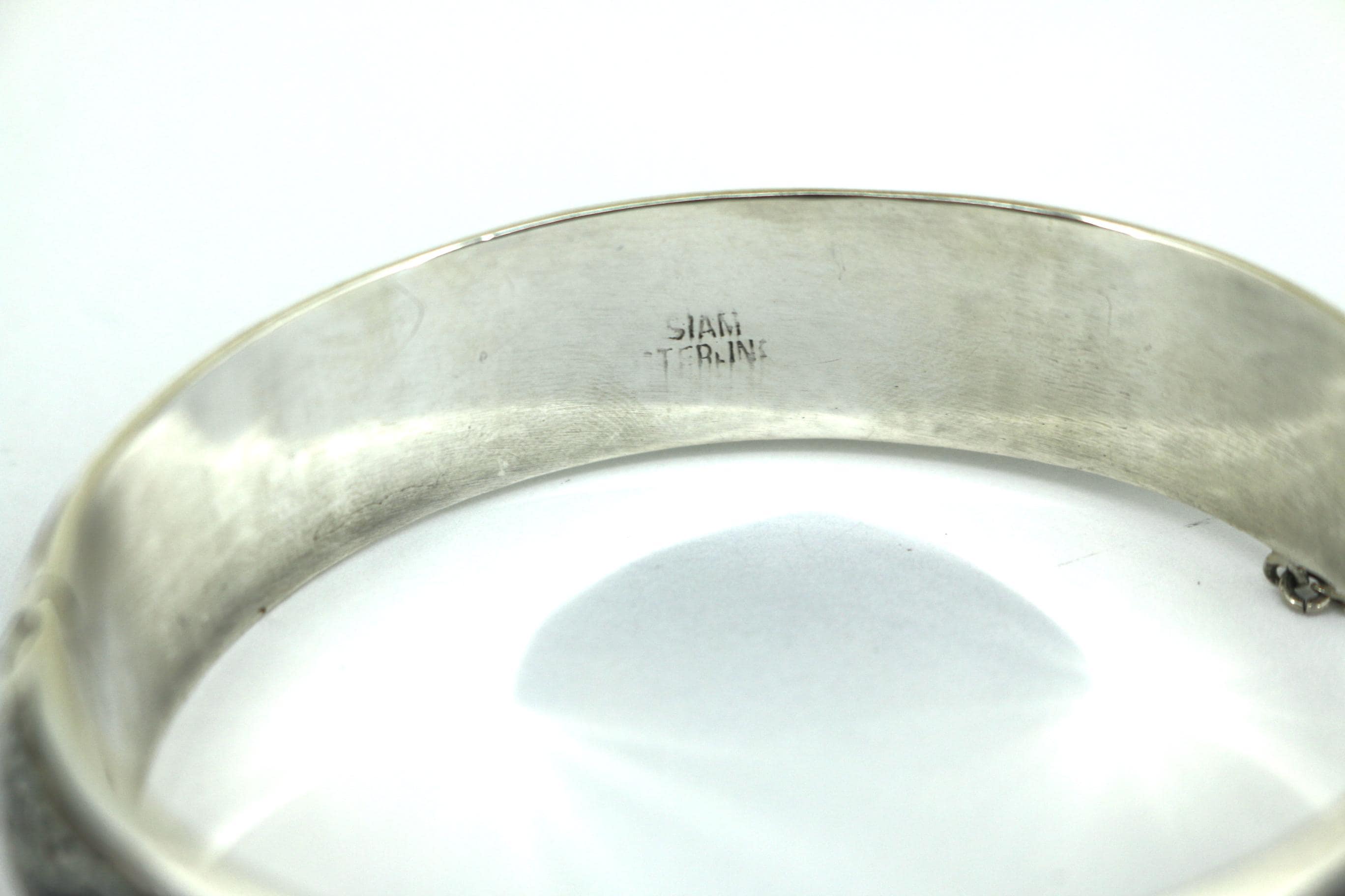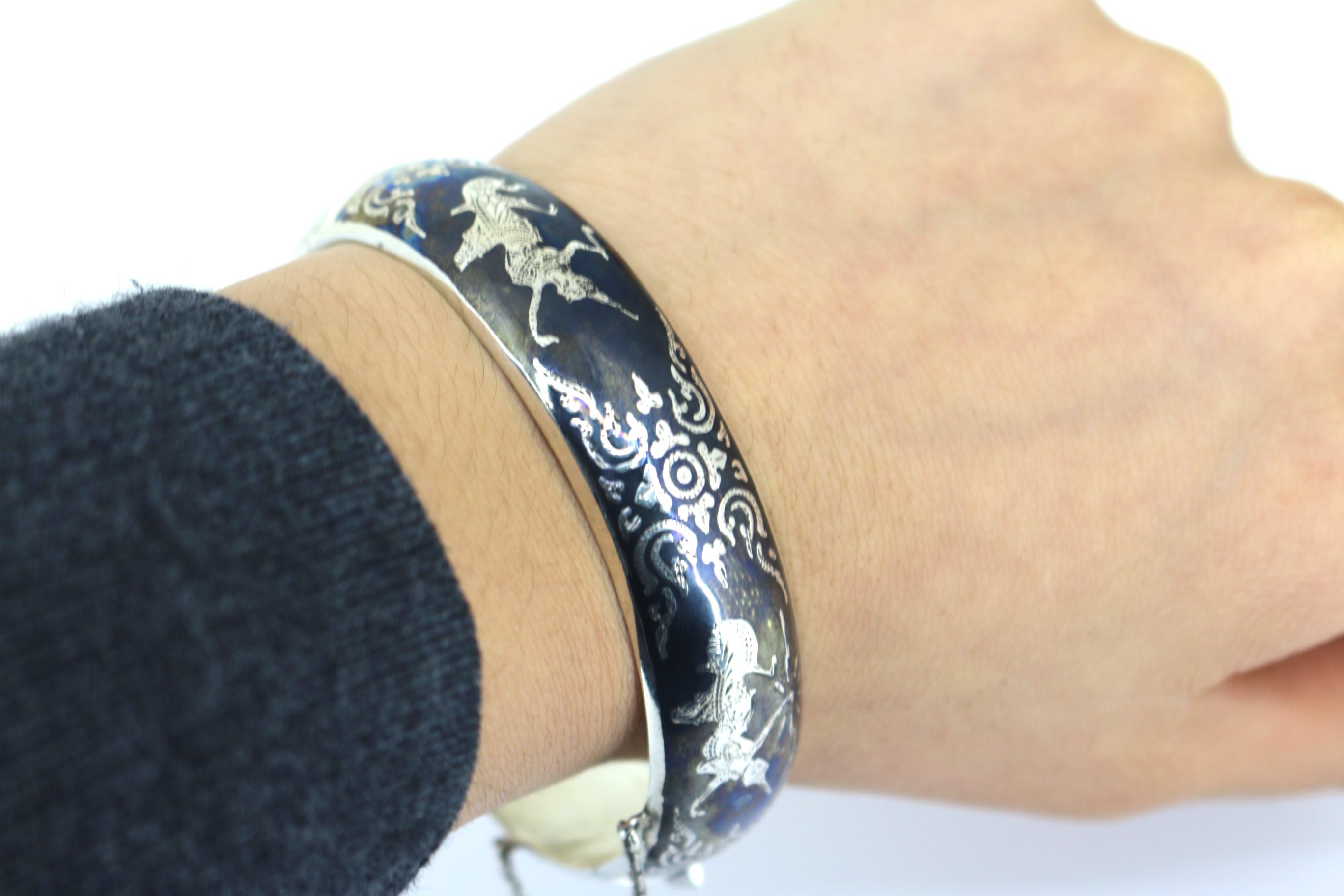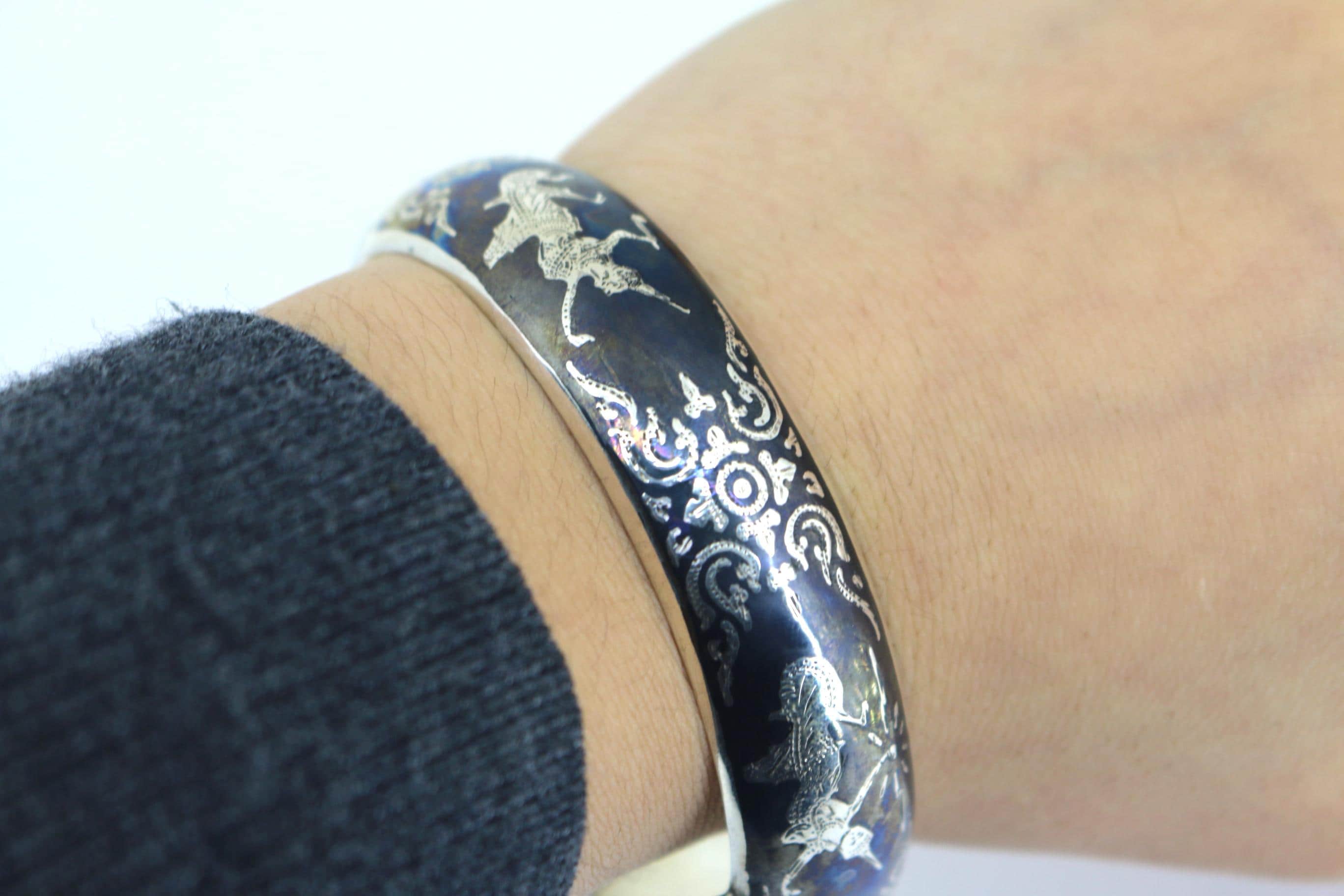 Vintage Thailand Siam Navy Blue Enamel Bangle Bracelet 925 Sterling BR 197