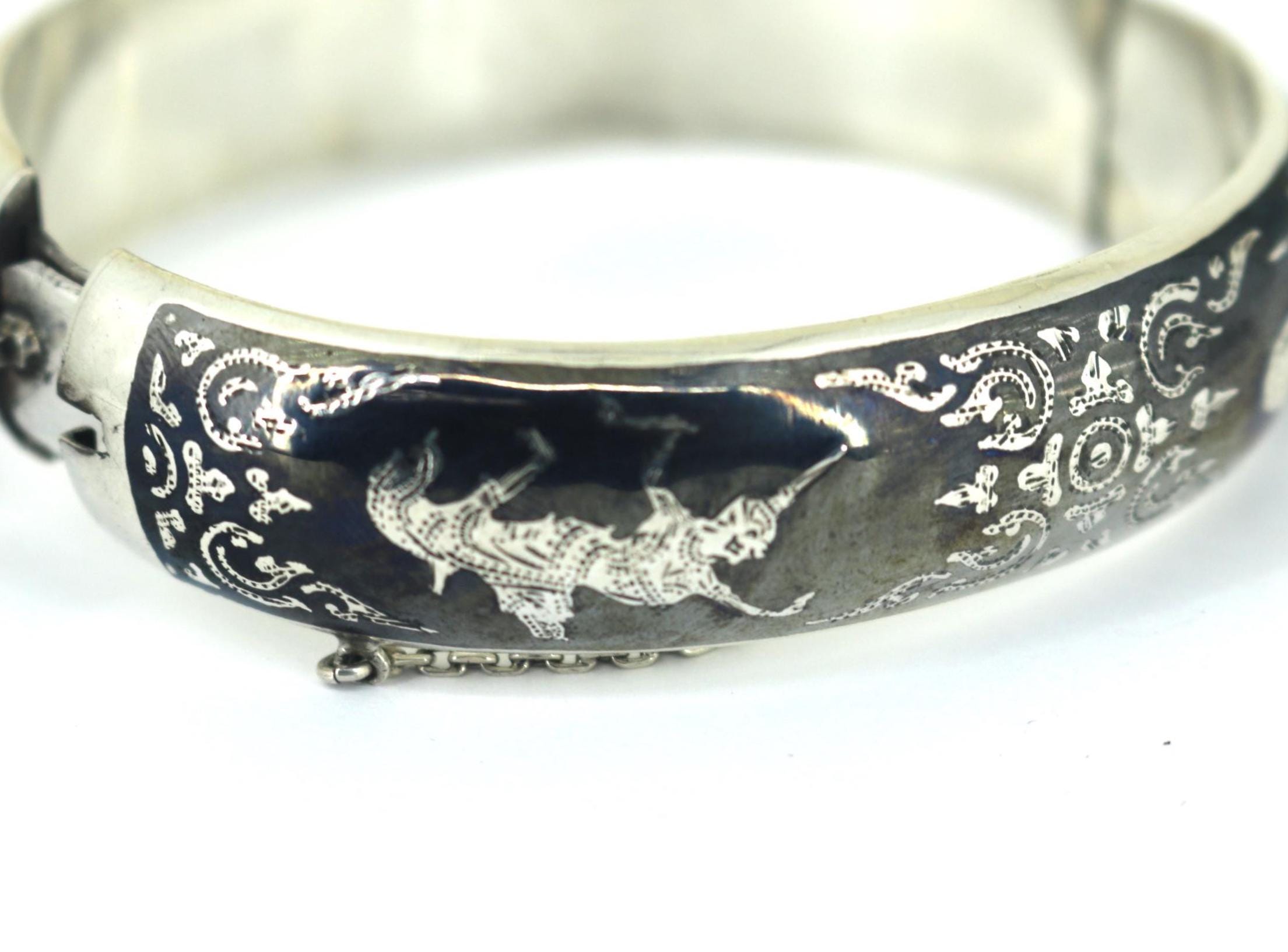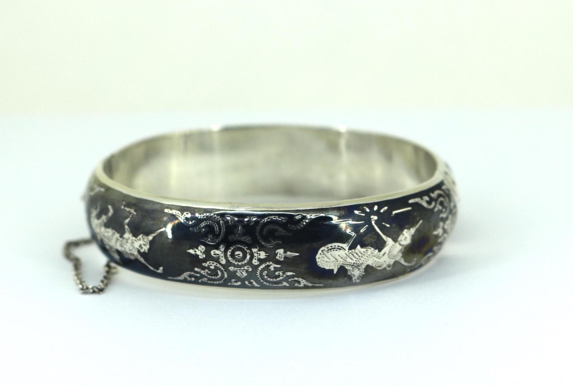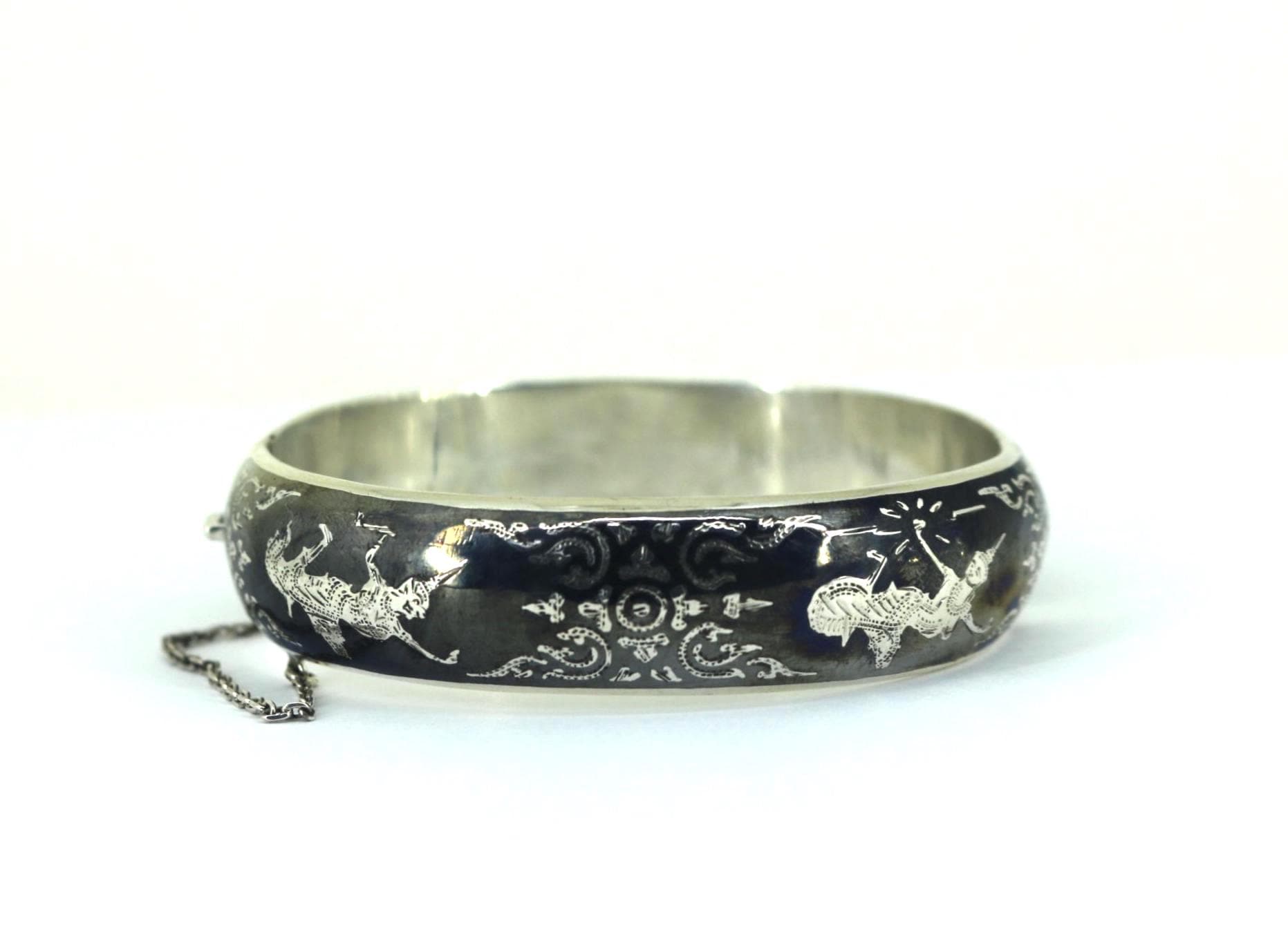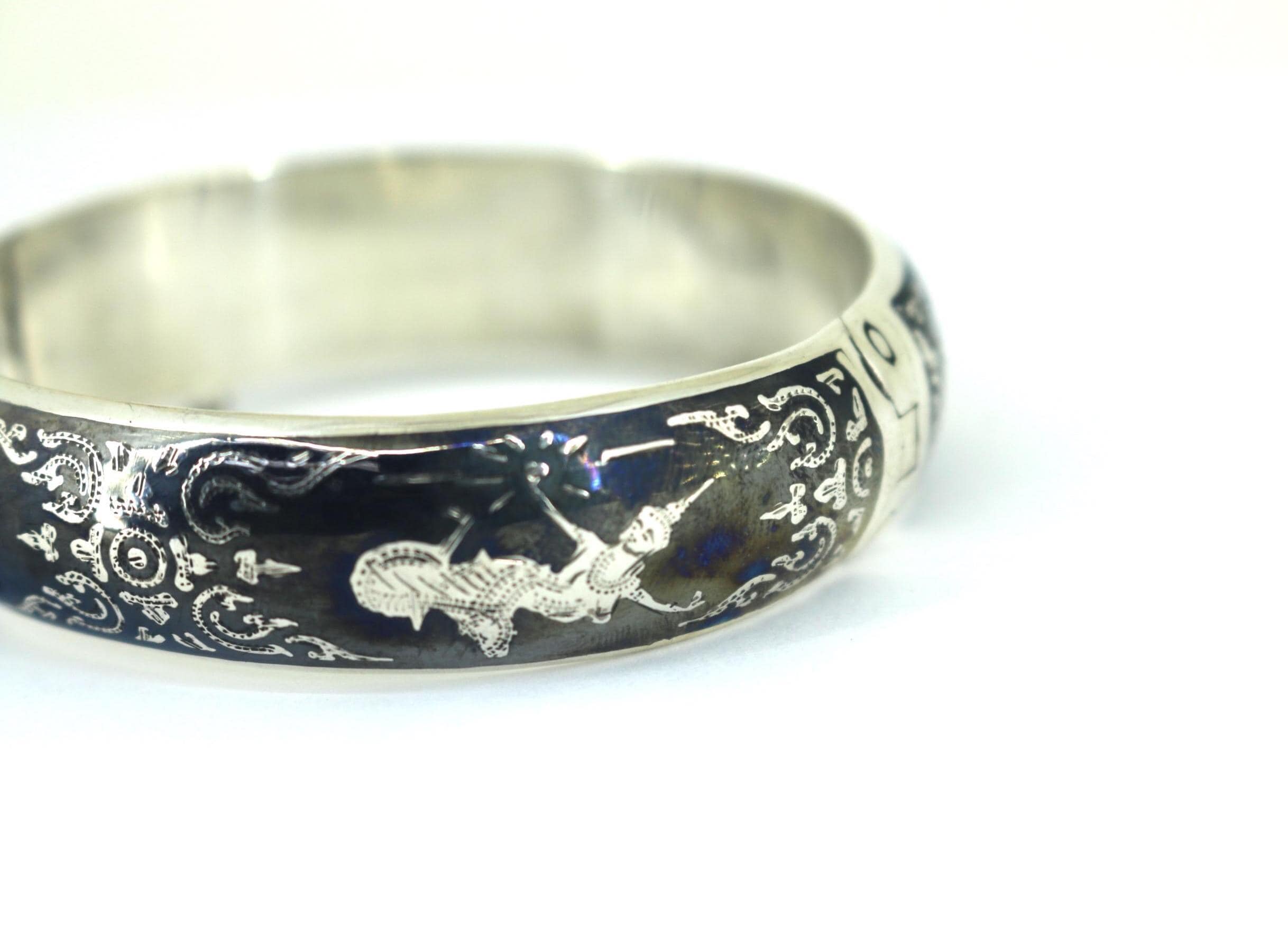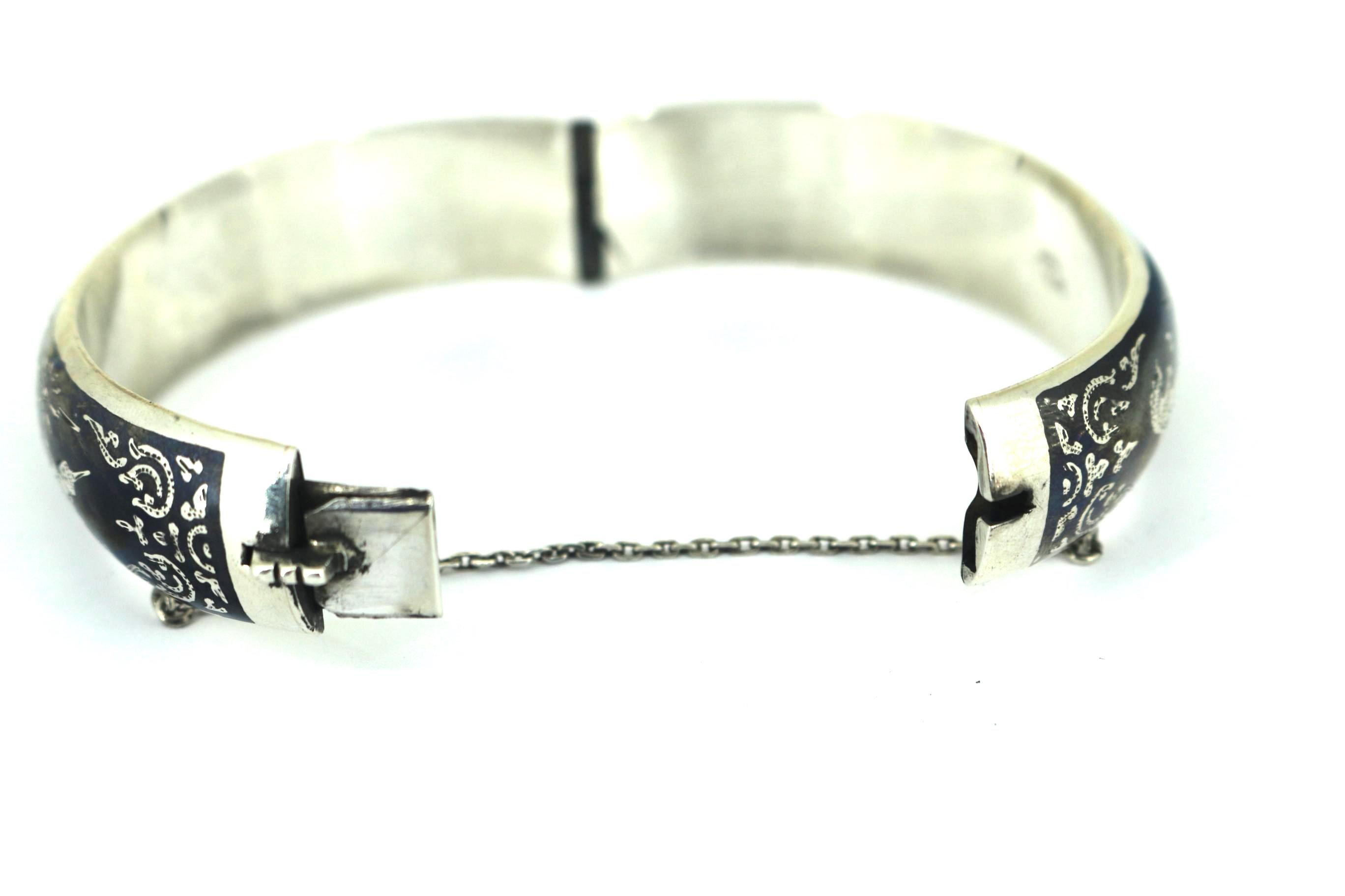 Vintage Thailand Siam Navy Blue Enamel Bangle Bracelet 925 Sterling BR 197