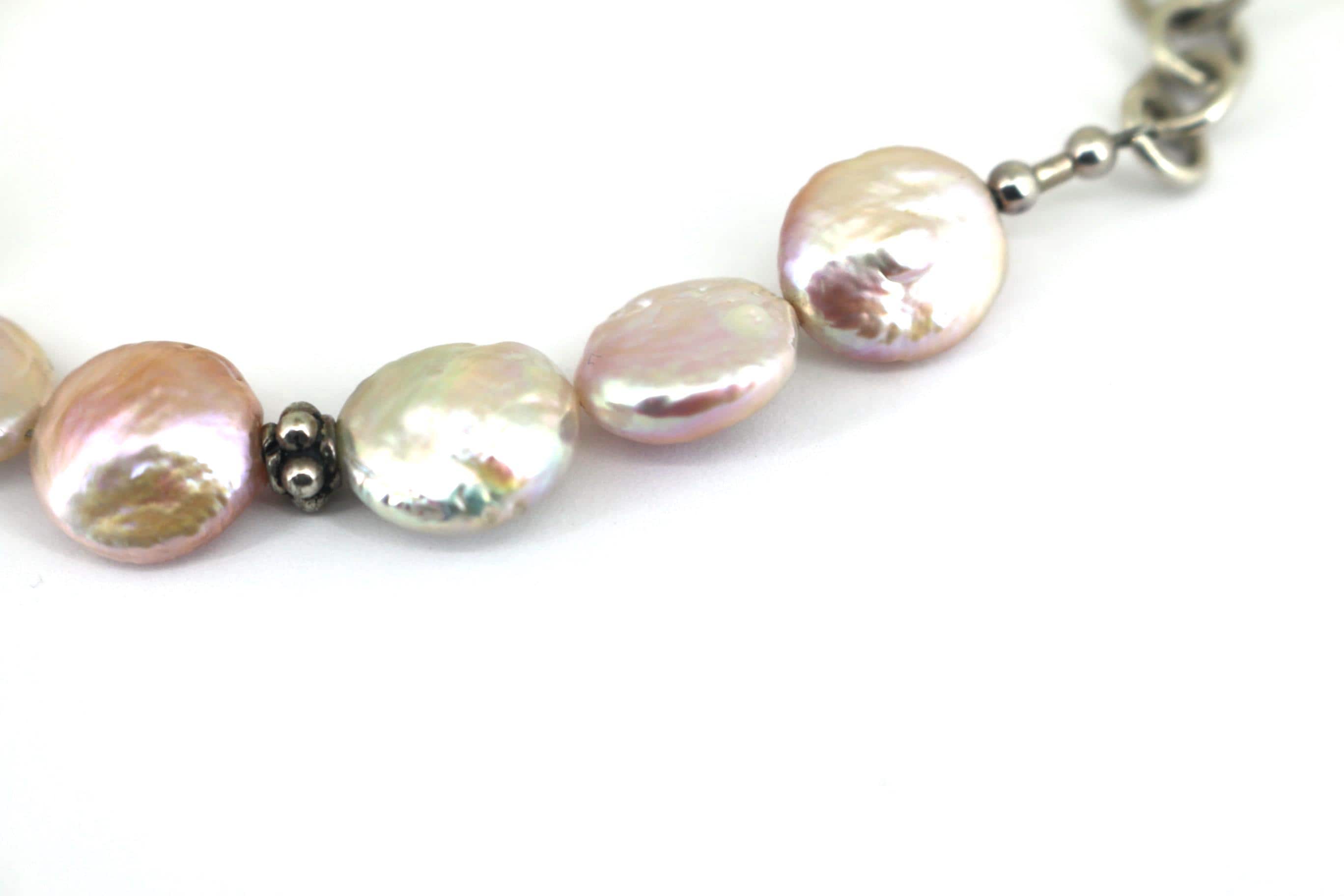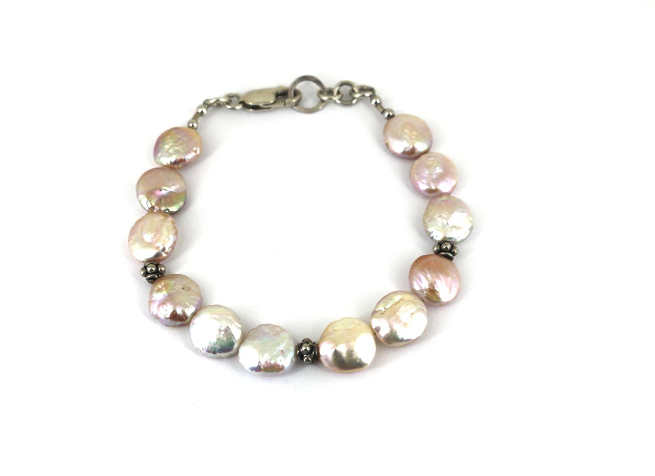 Vintage Baroque Freshwater Large Iridescent Pearl Bracelet 925 Sterling BR 199