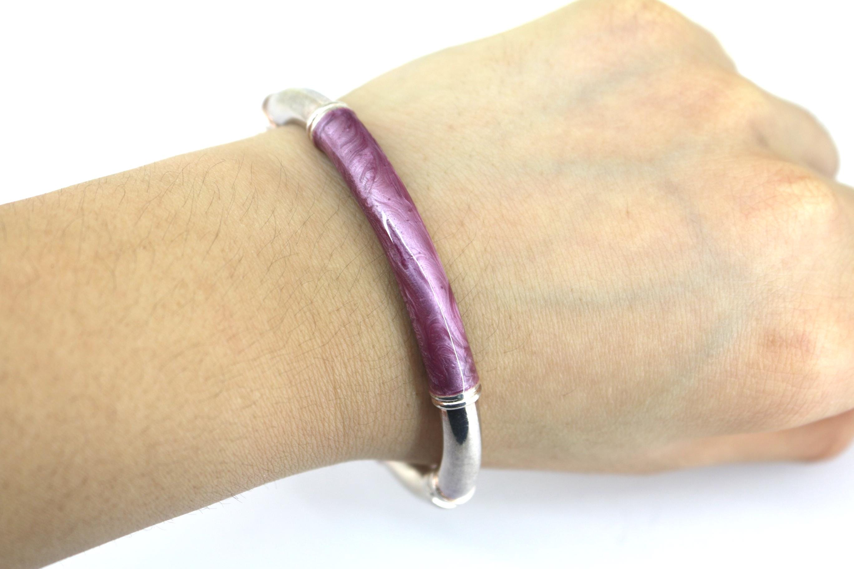 Vintage Milor Italy Purple Enamel Bangle Bracelet 925 Sterling BR 201