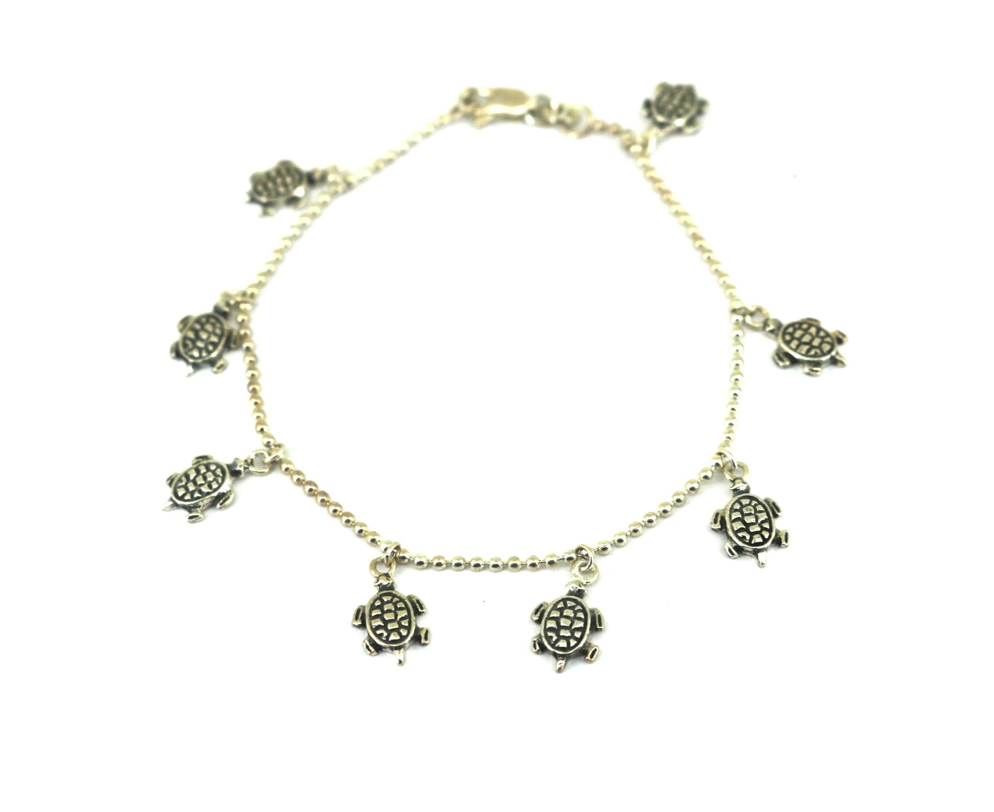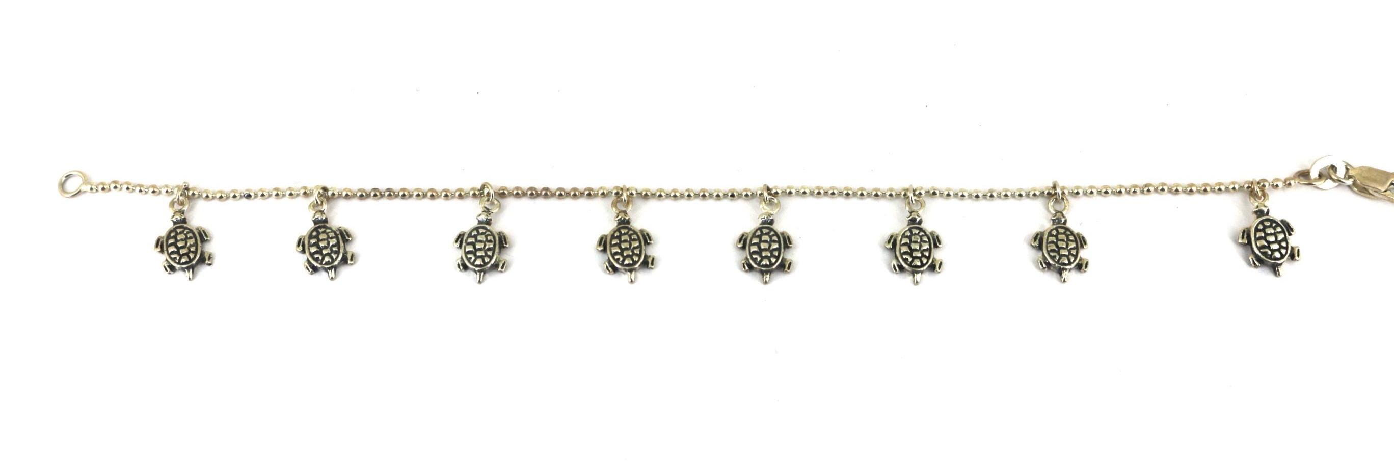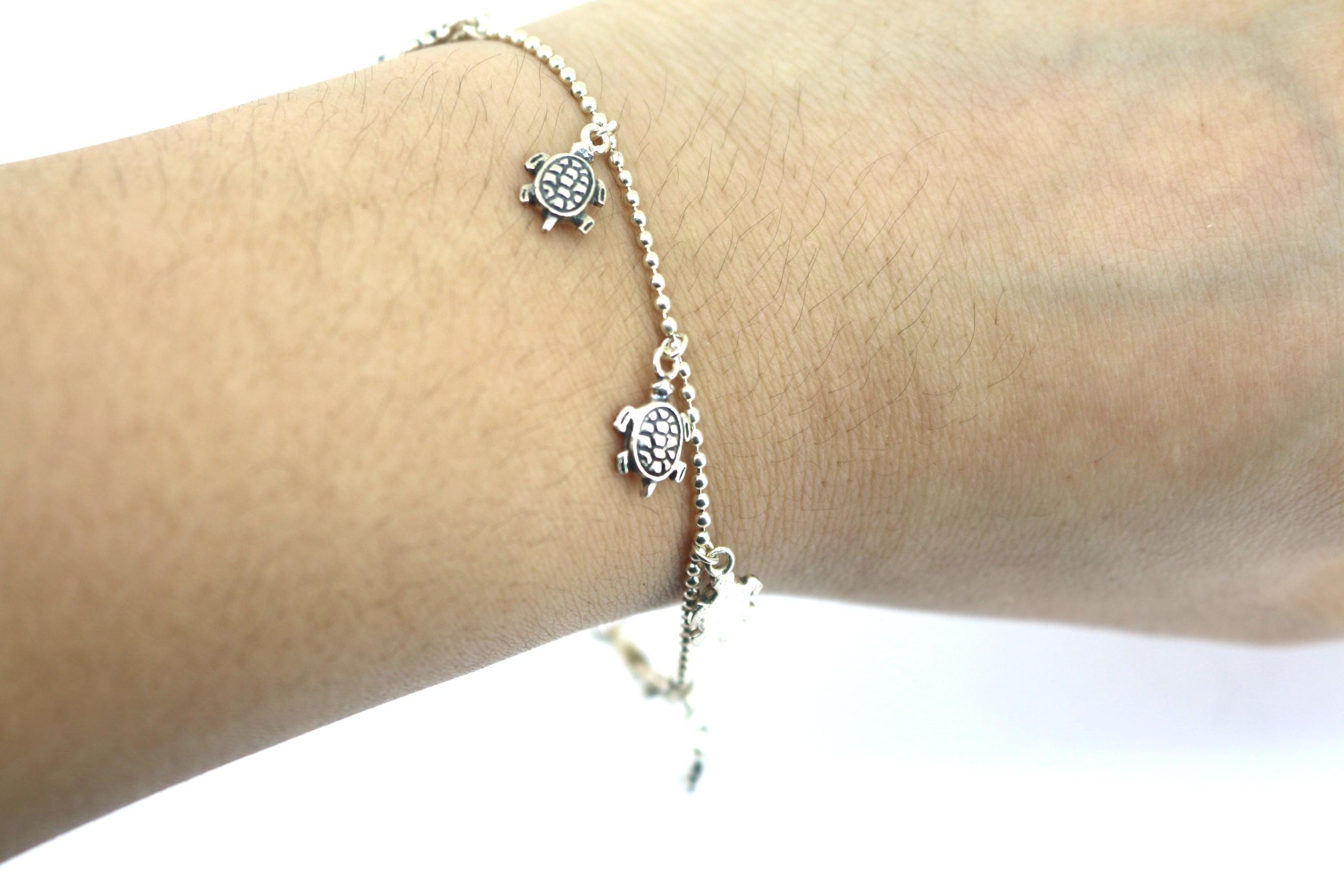 Vintage Thin Chain Turtle Charm Bracelet 925 Sterling Silver BR 203