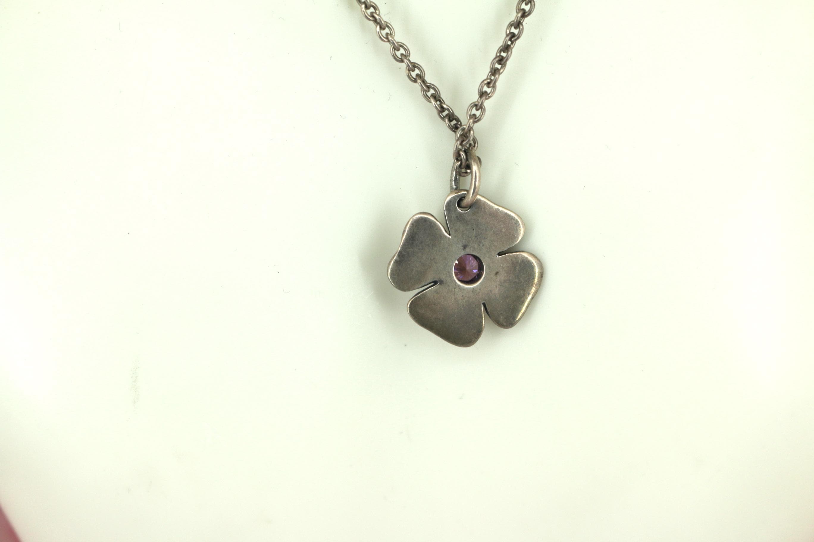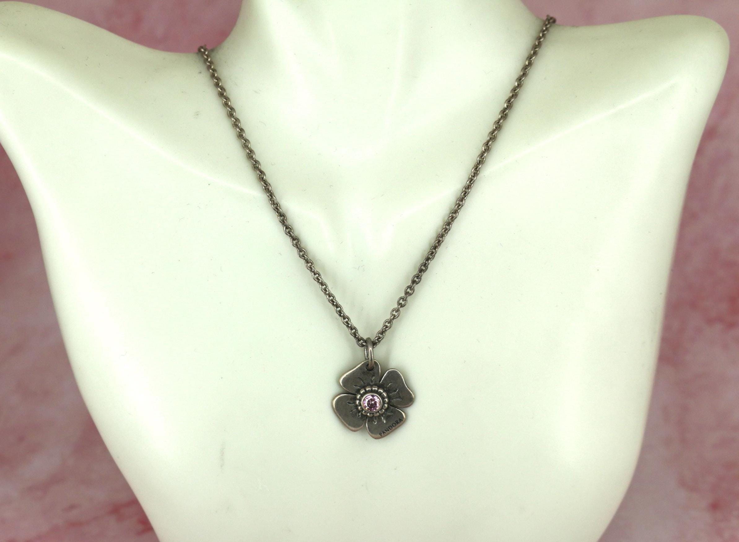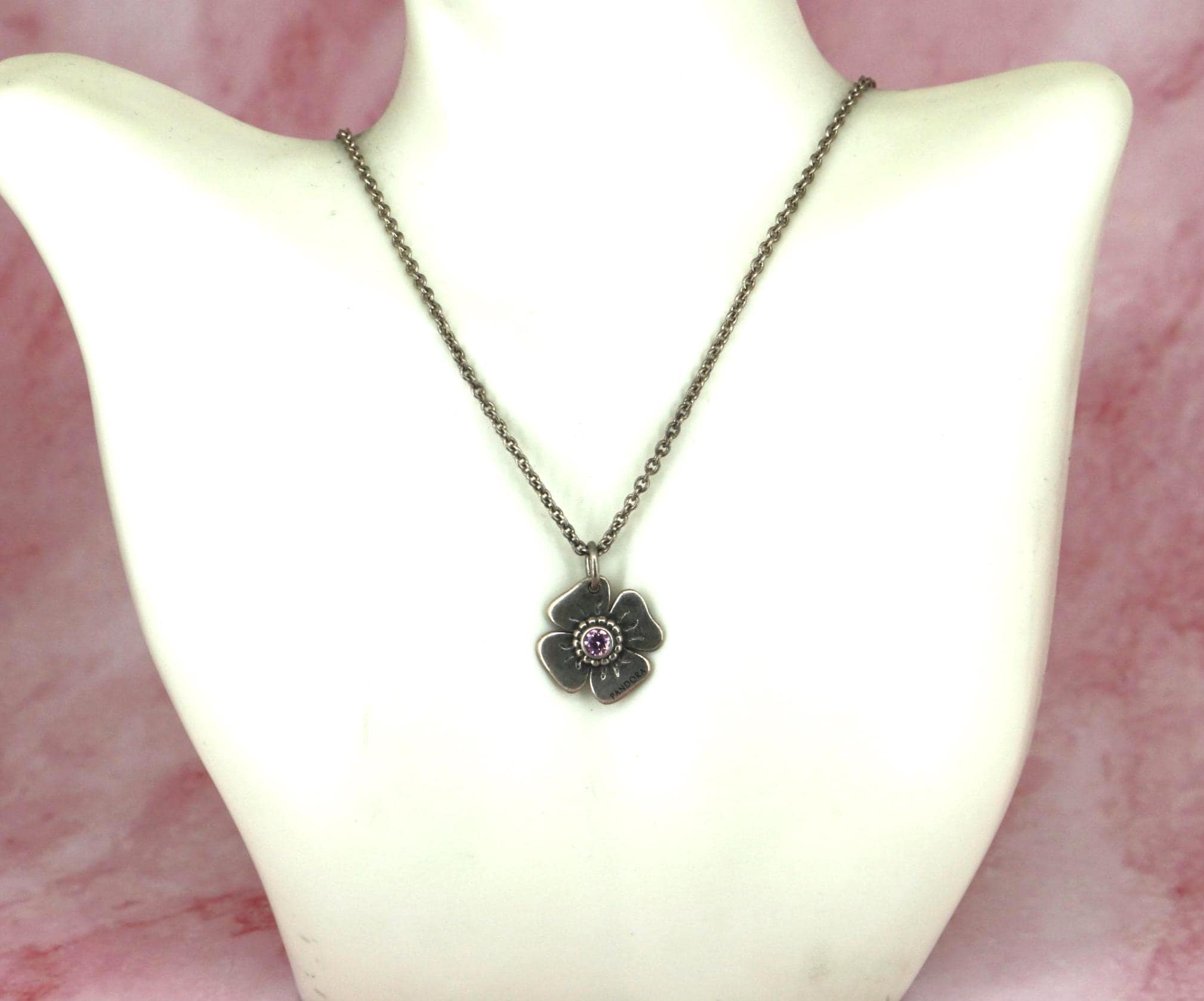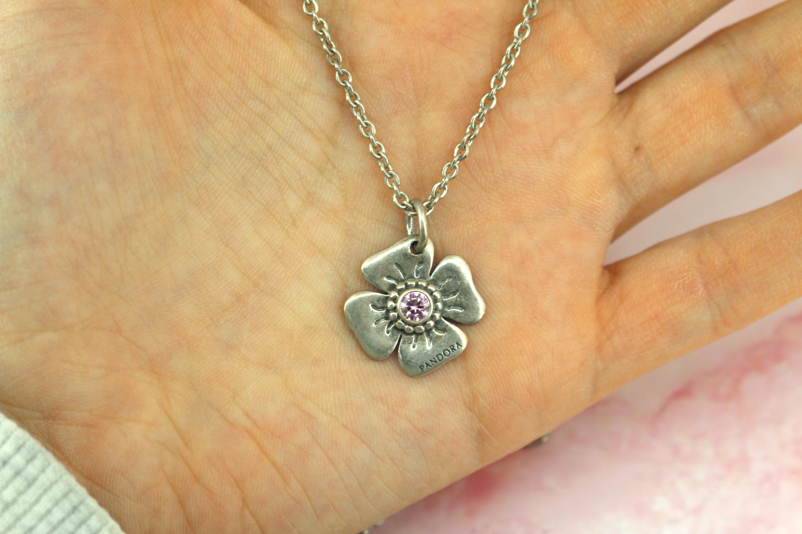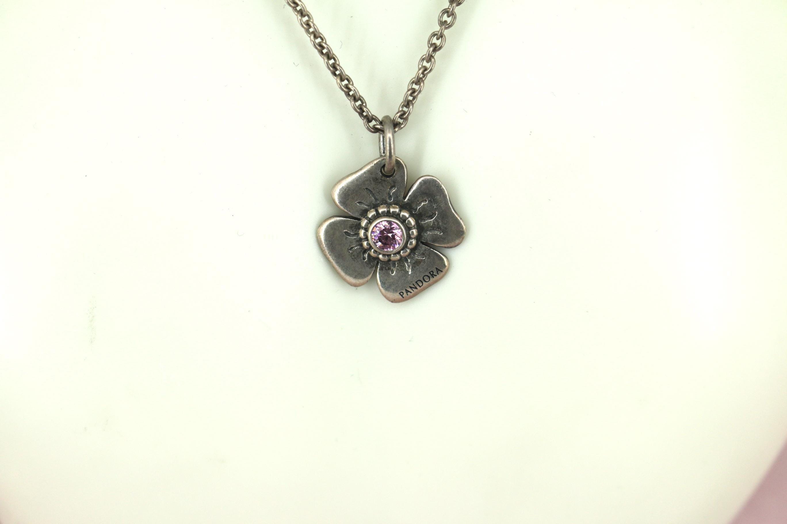Authentic 18in Pandora Pink Topaz Flower Pendant Necklace Sterling Silver NC 014