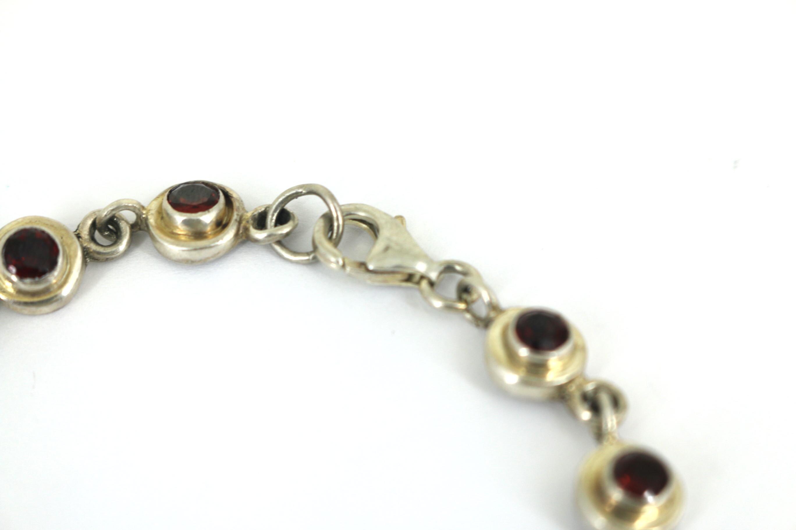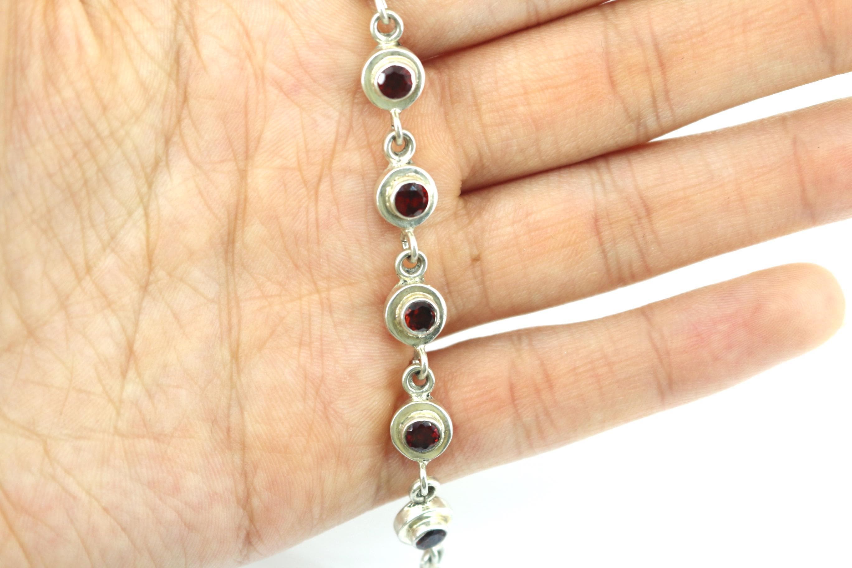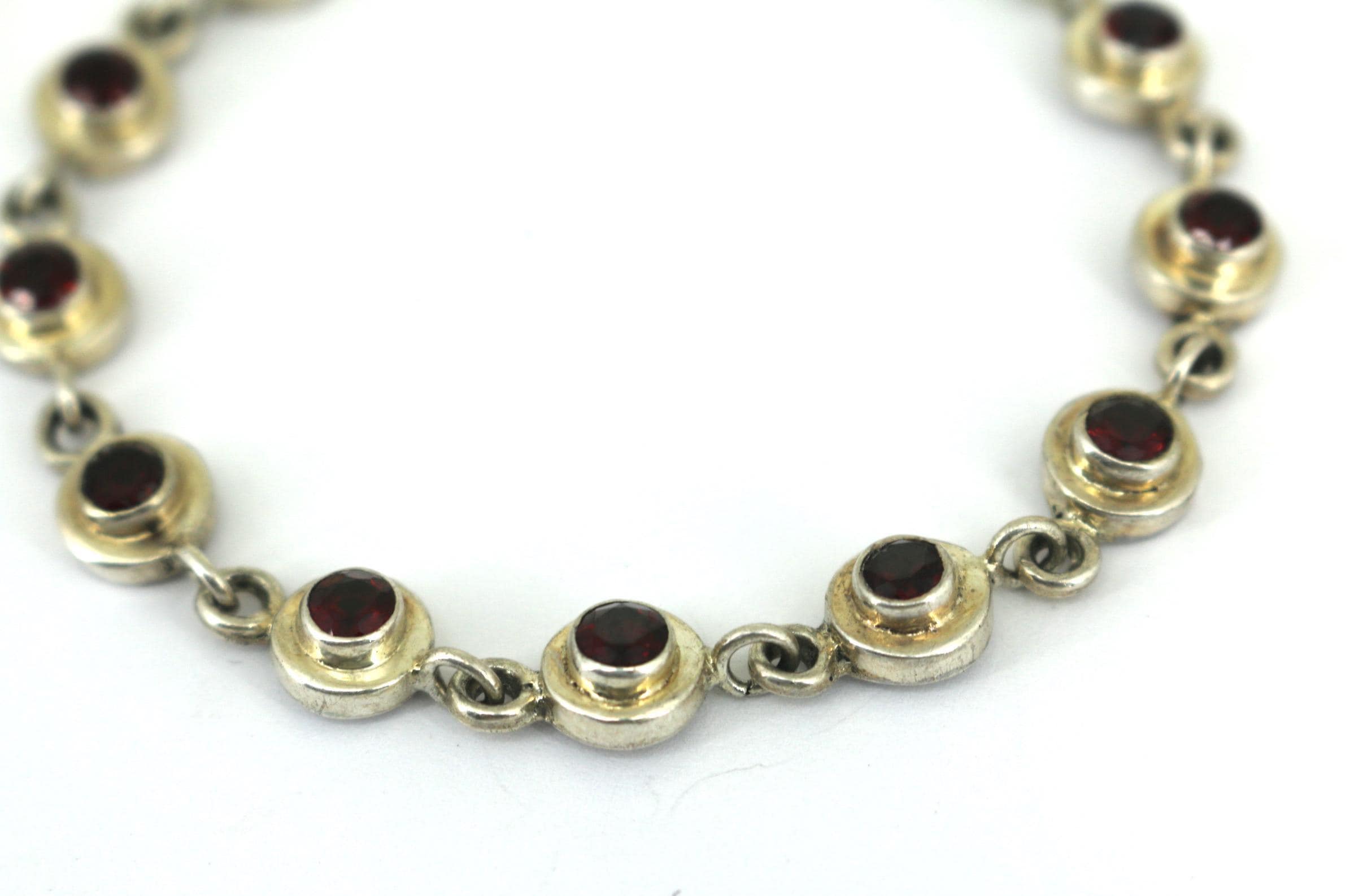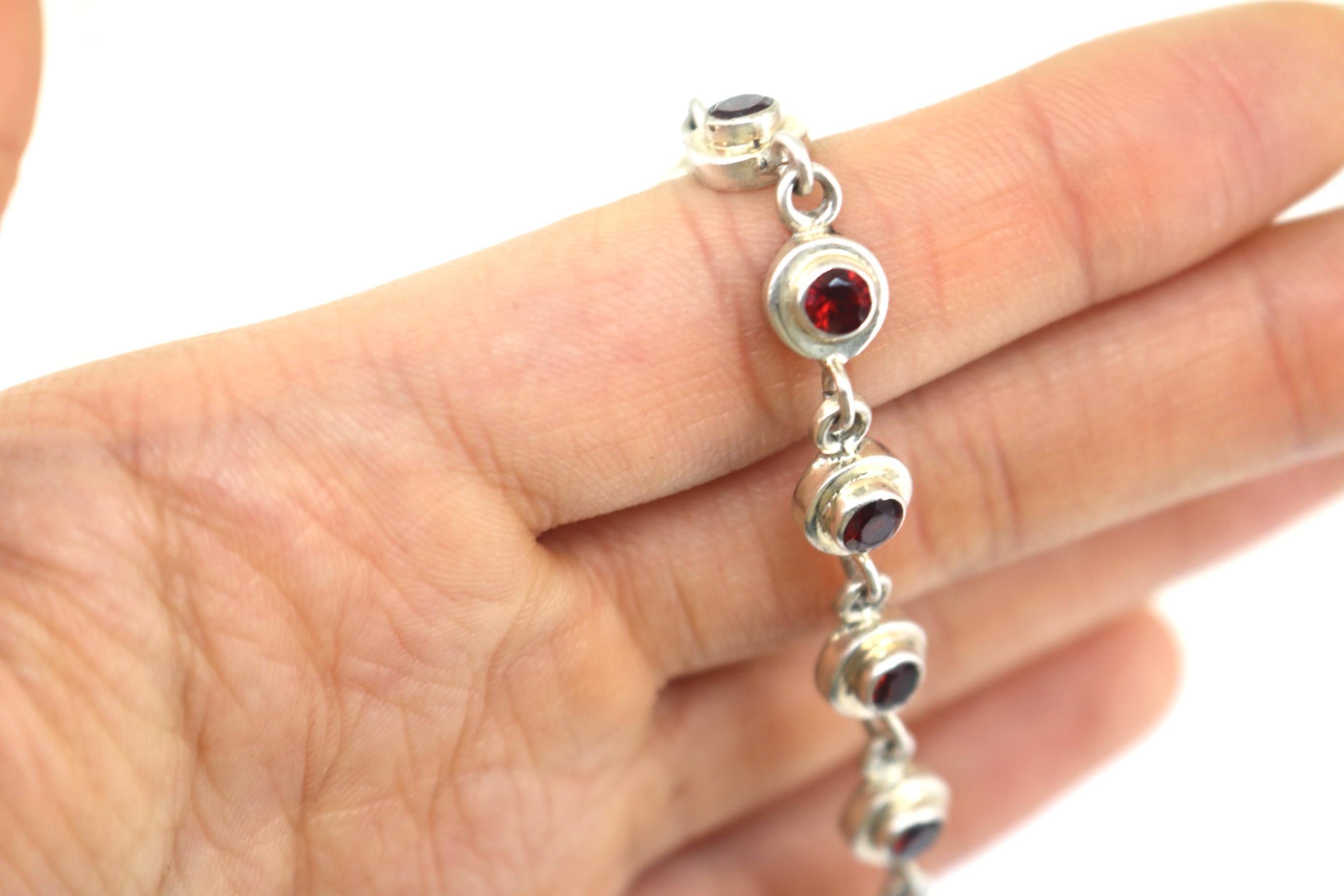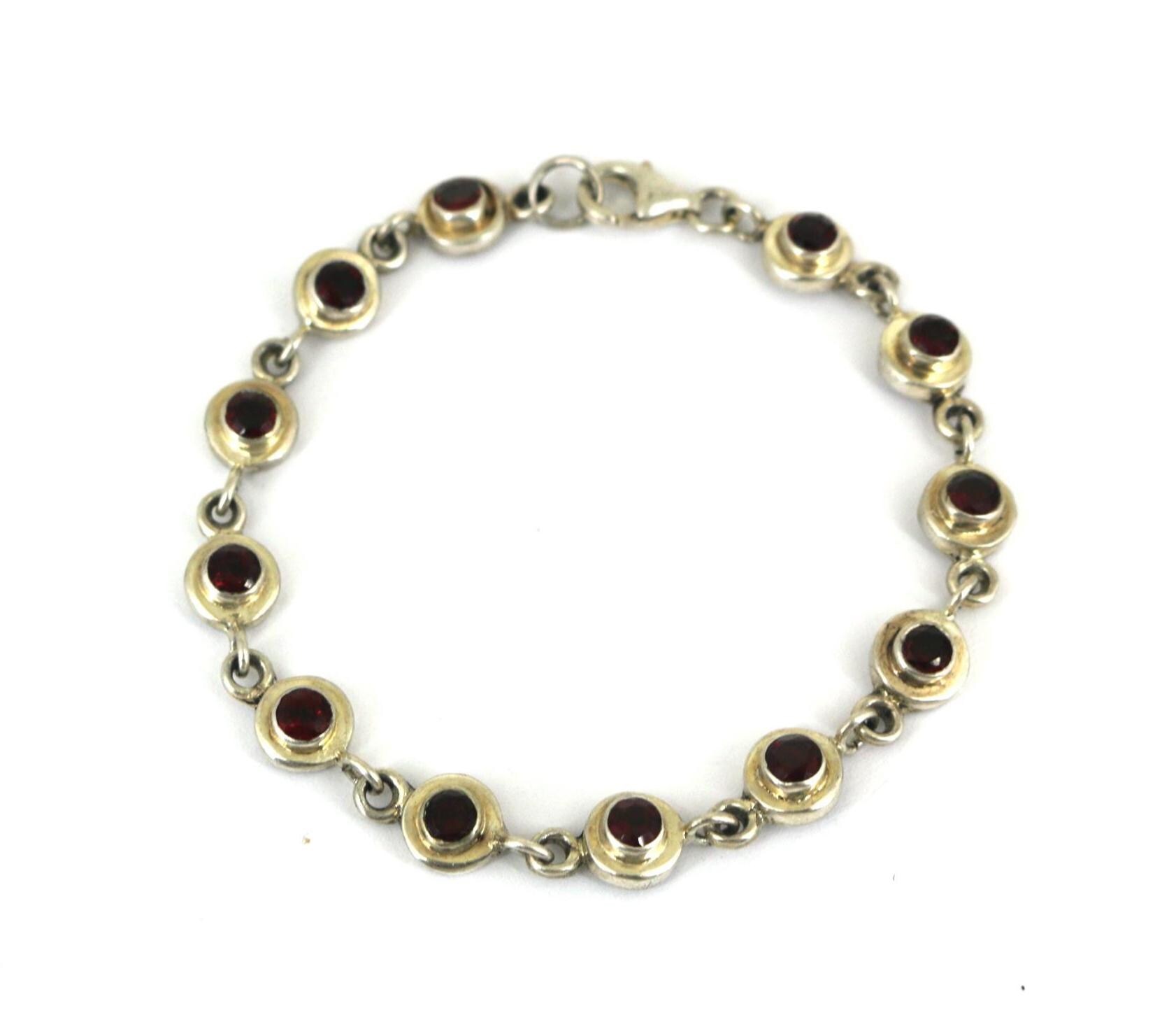 Vintage Red CZ Crystals Link Bracelet Sterling Silver BR 204
