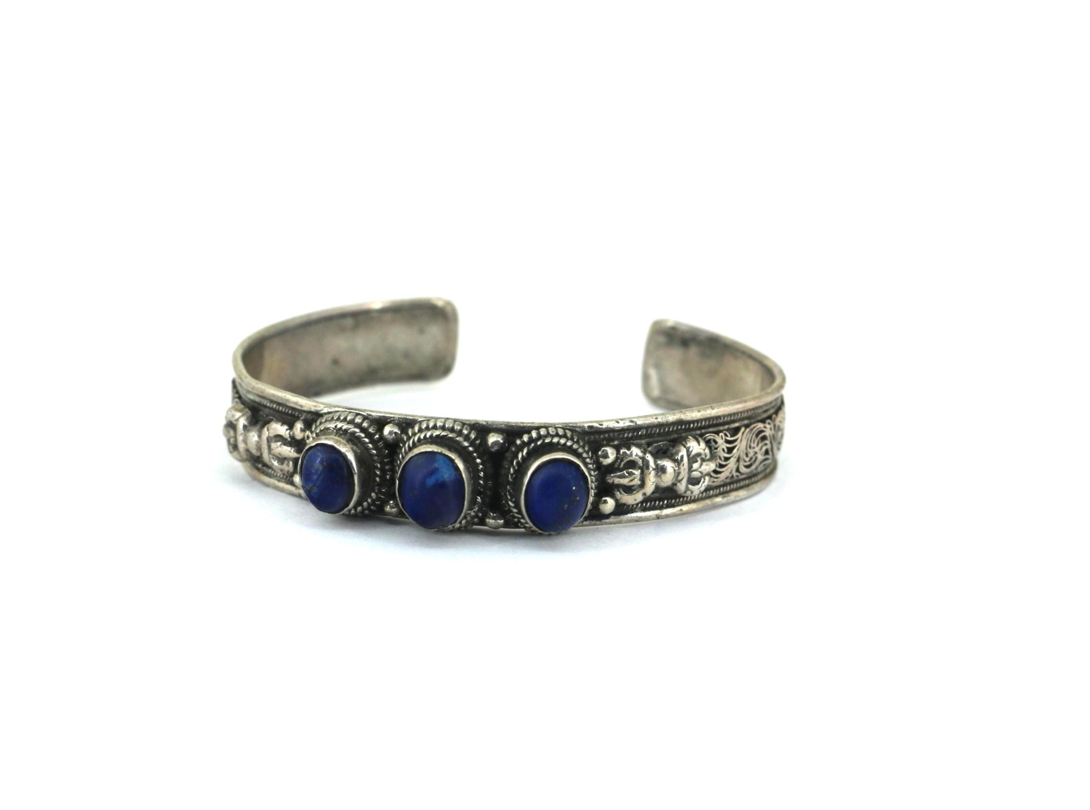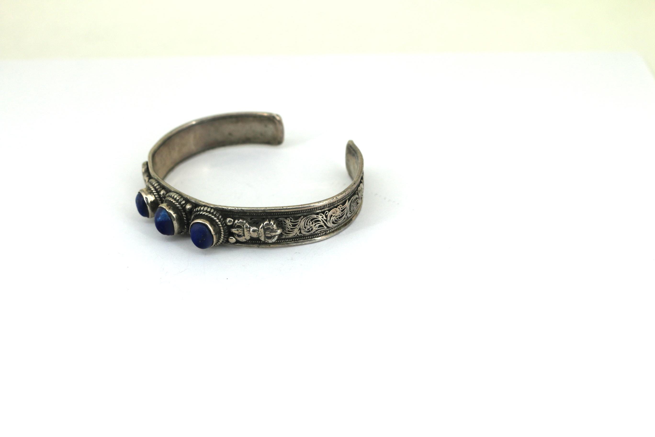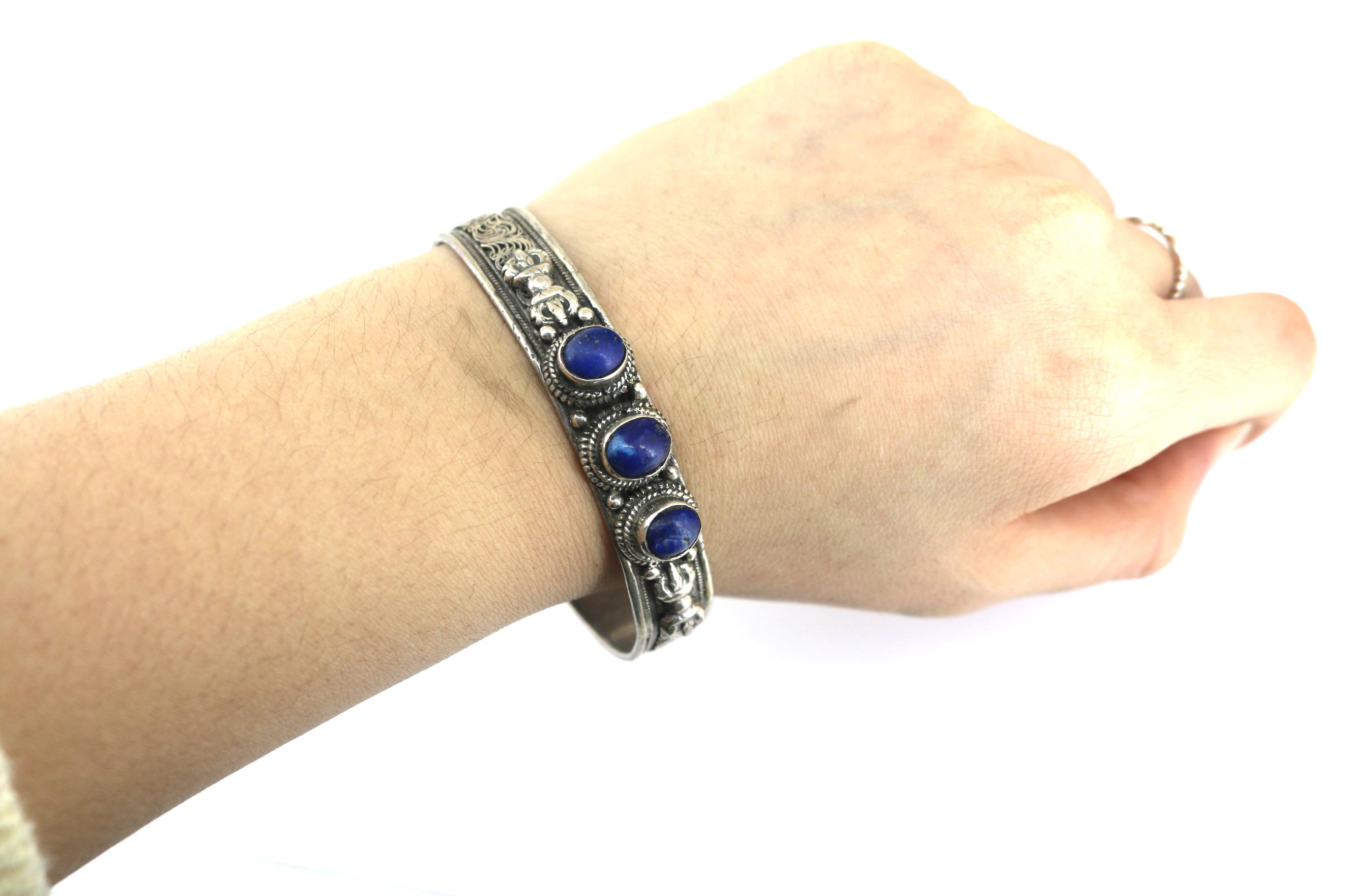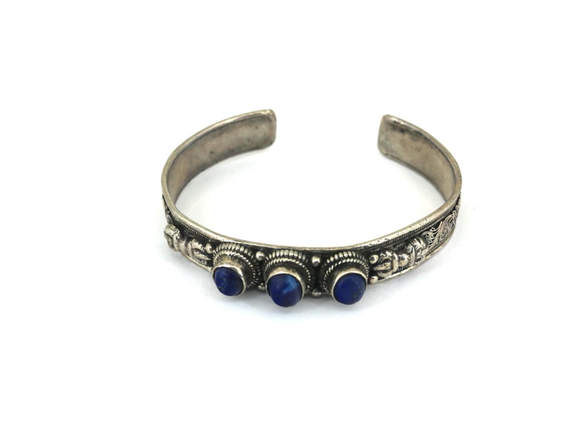Vintage Lapis Lazuli Stone 925 Sterling Silver Cuff Bracelet BR 208