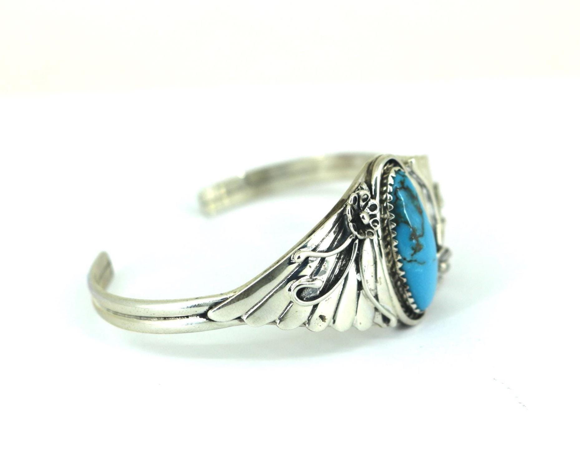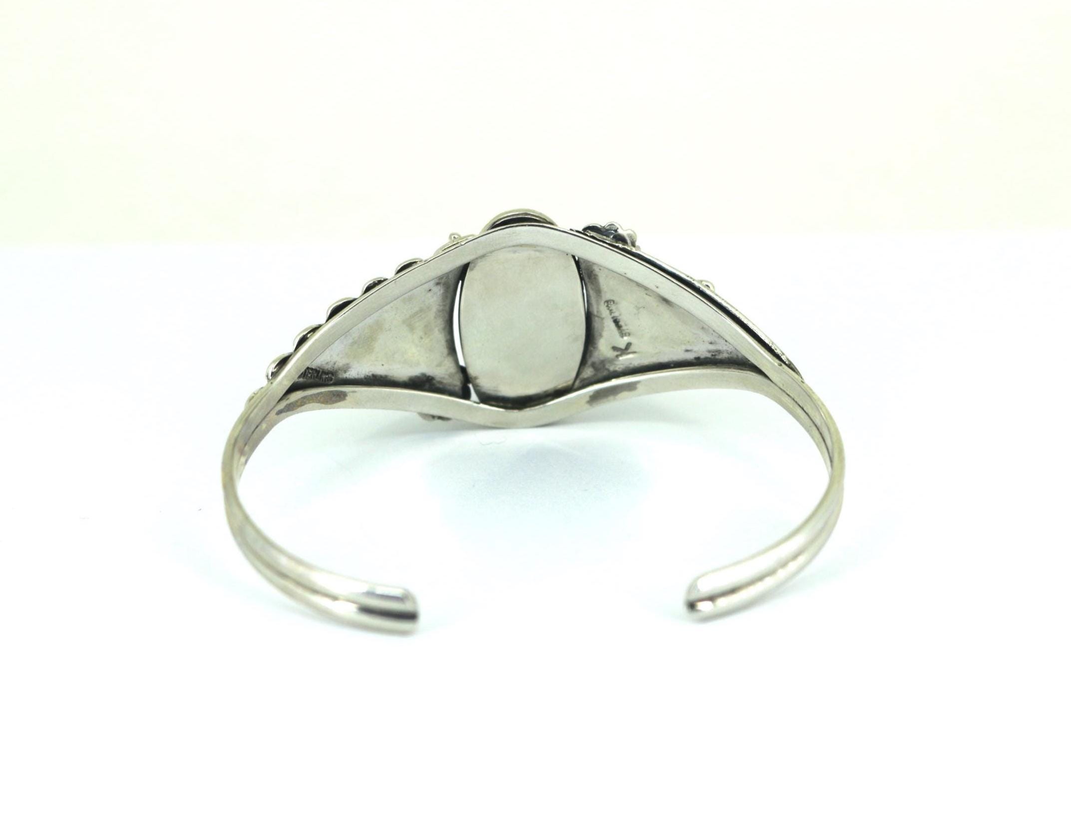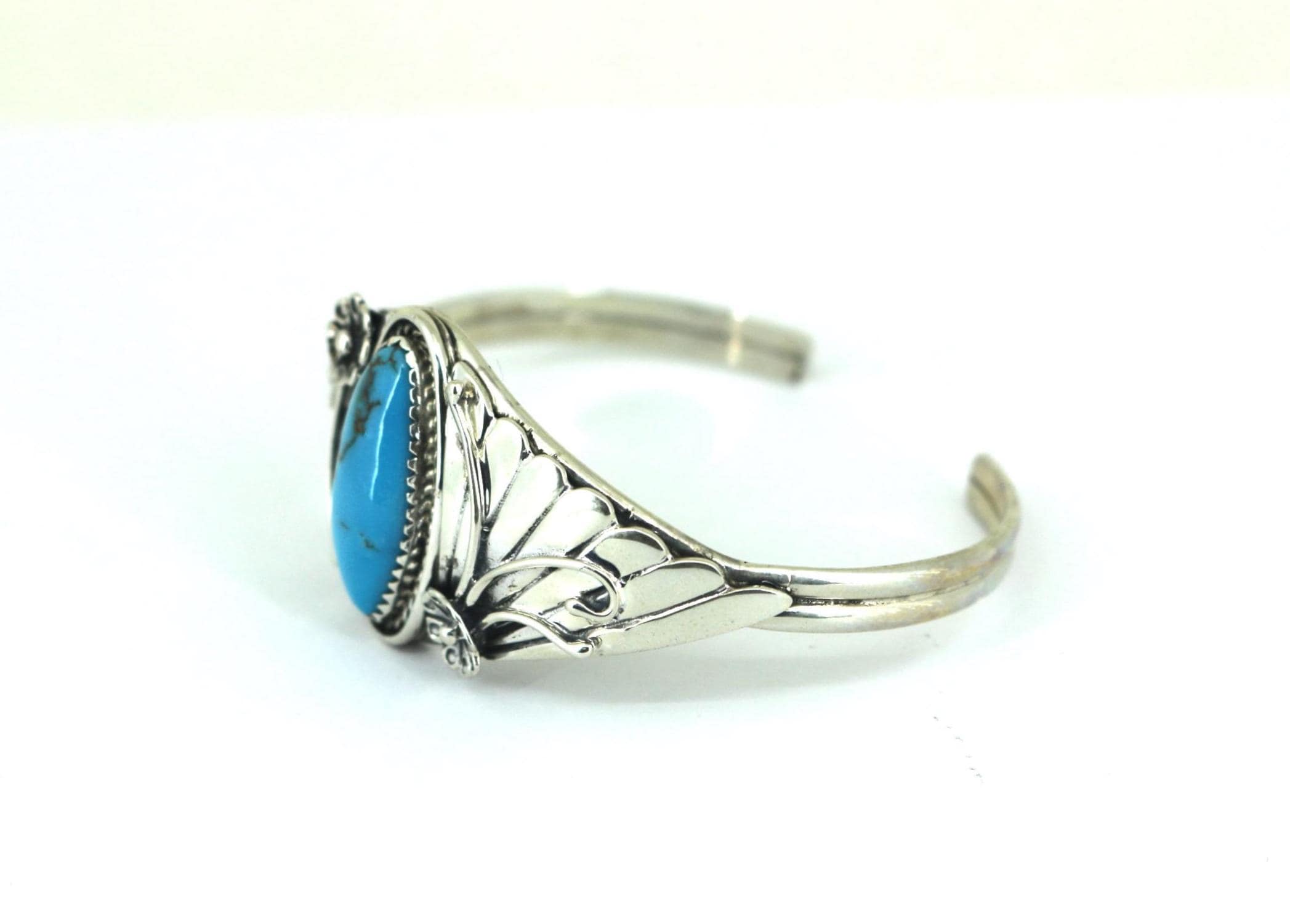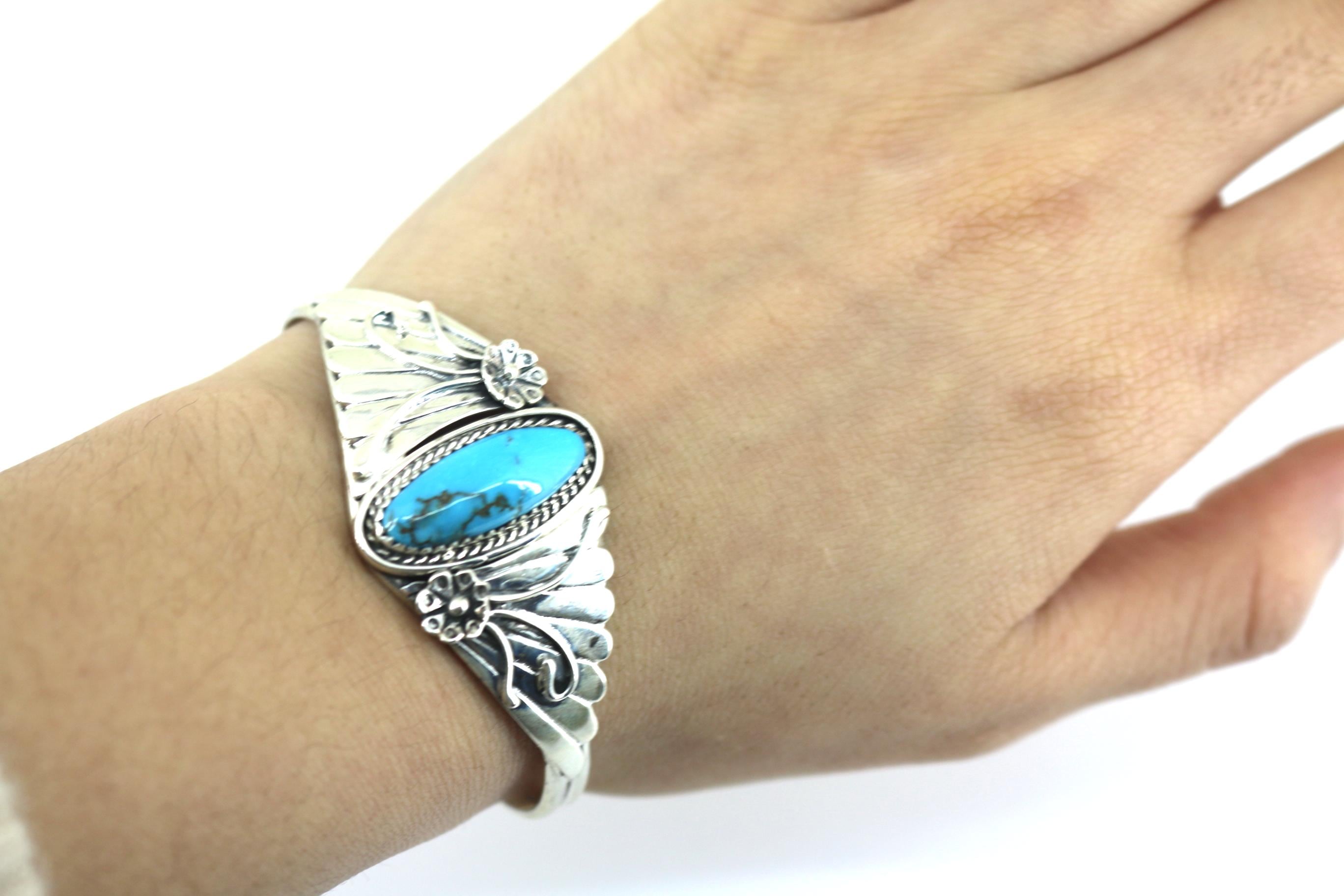 Vintage K Sterling Turquoise Floral Cuff Bracelet Sterling BR 165