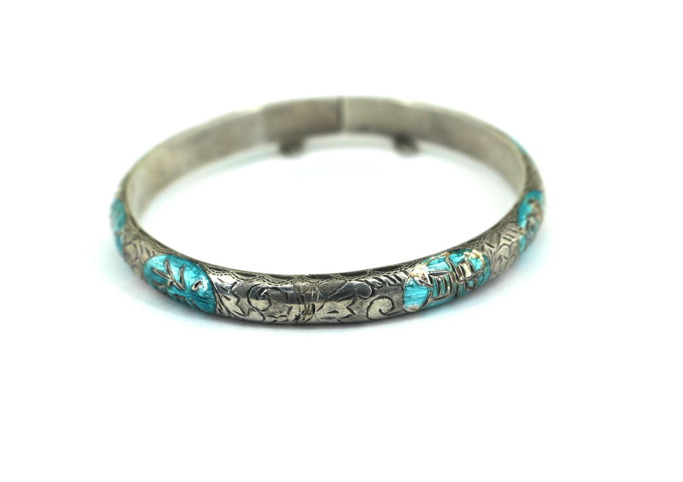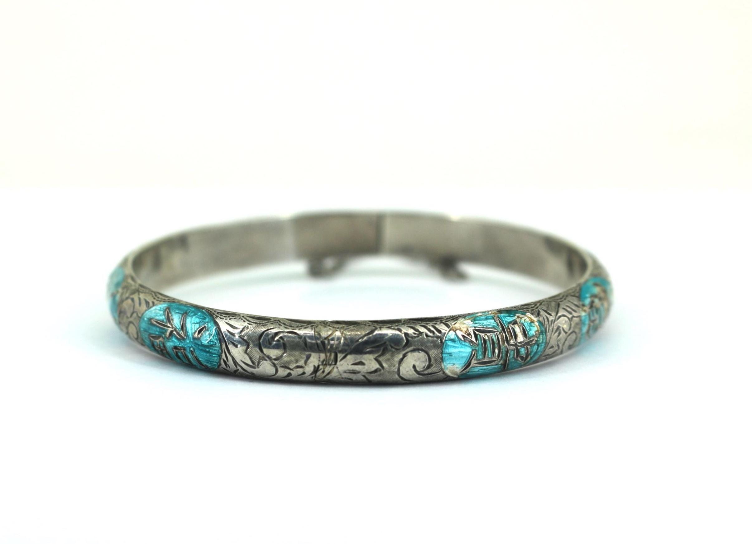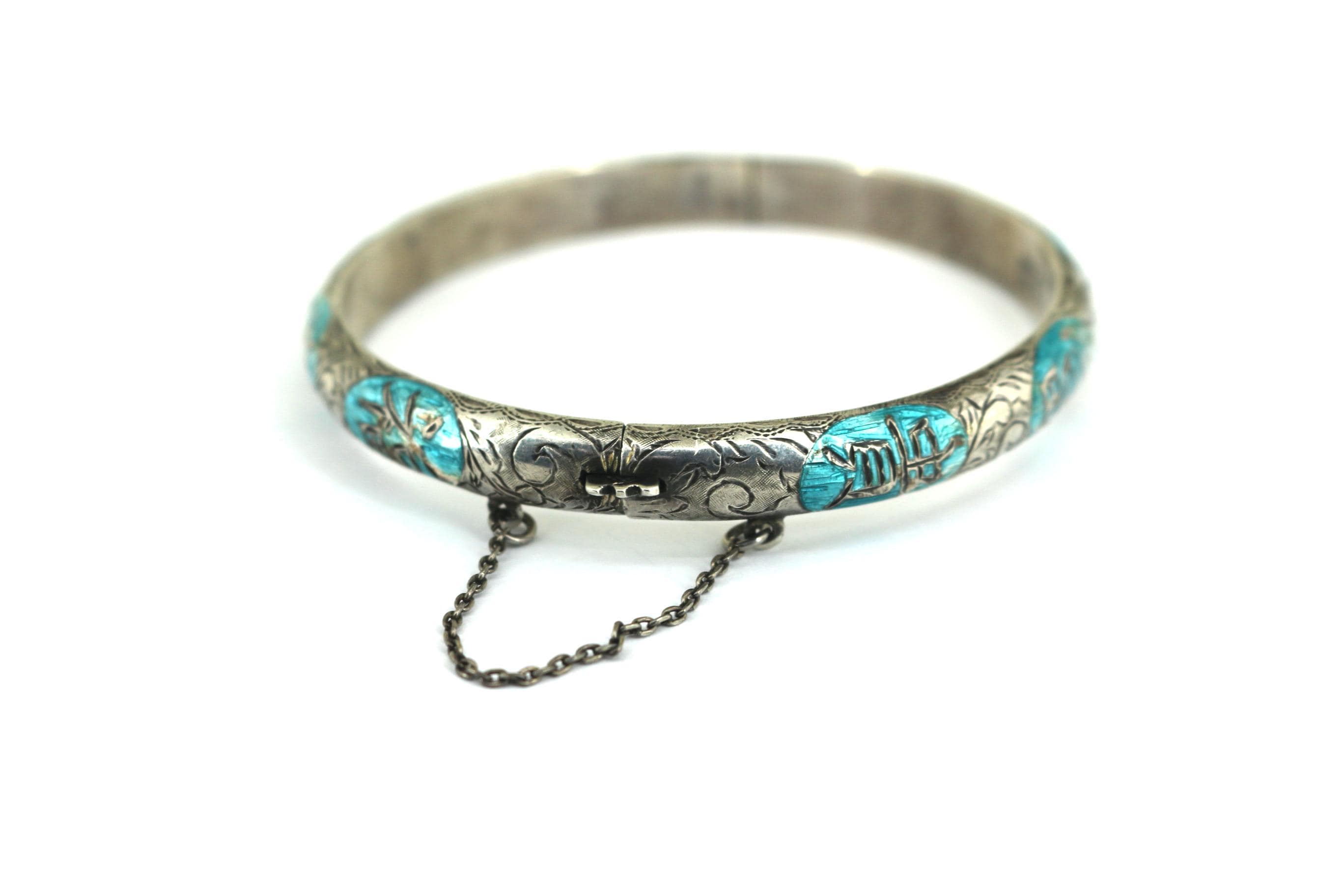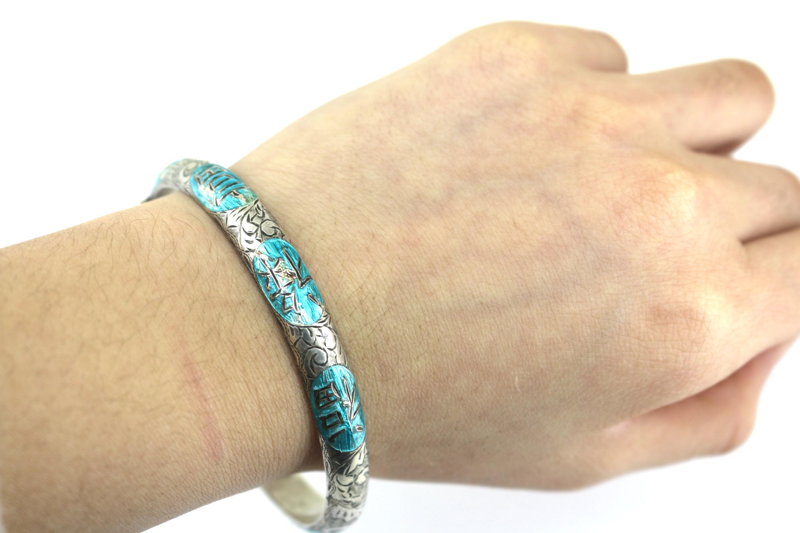 Vintage Thailand Chinese Characters Bangle Bracelet 925 Sterling BR 116