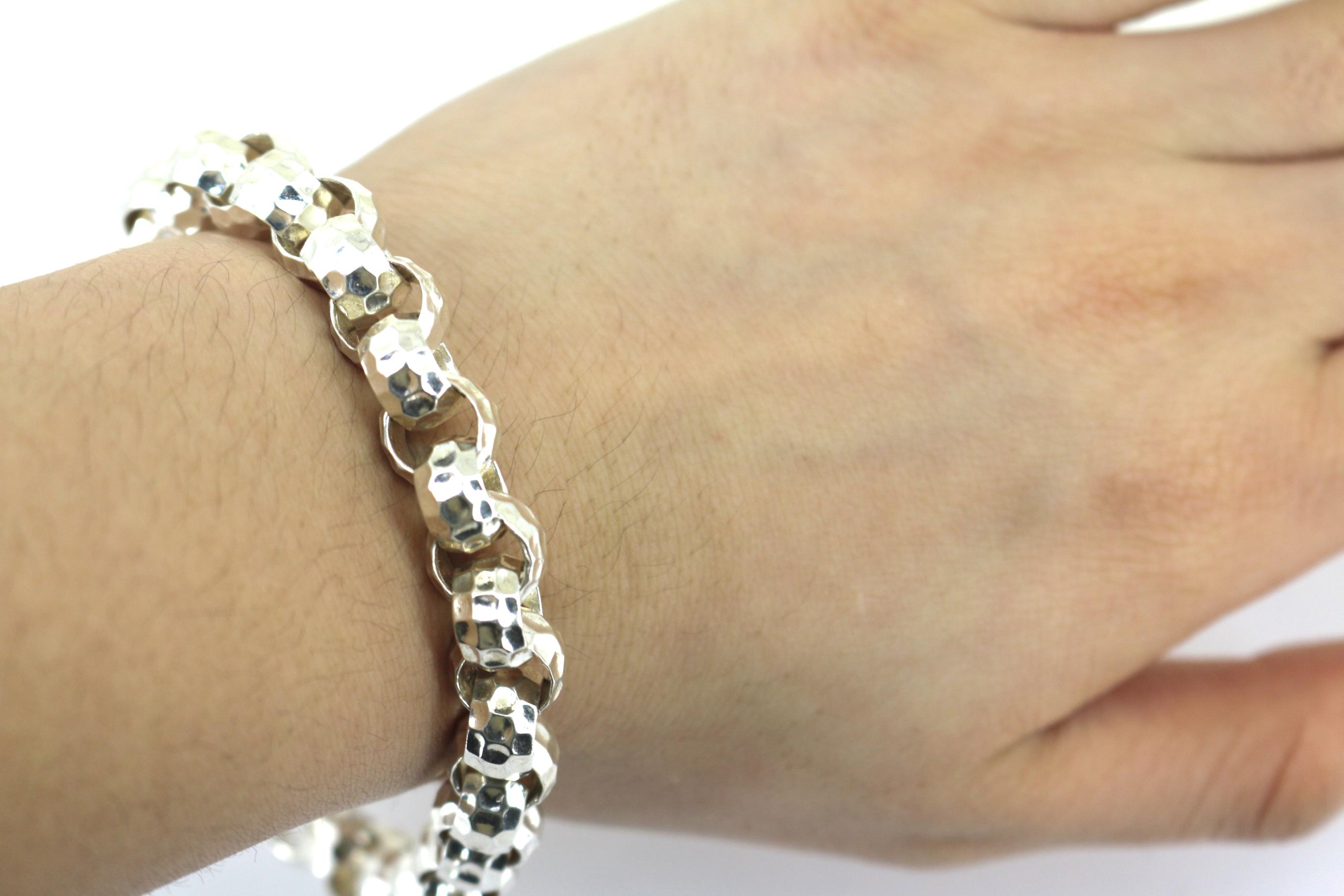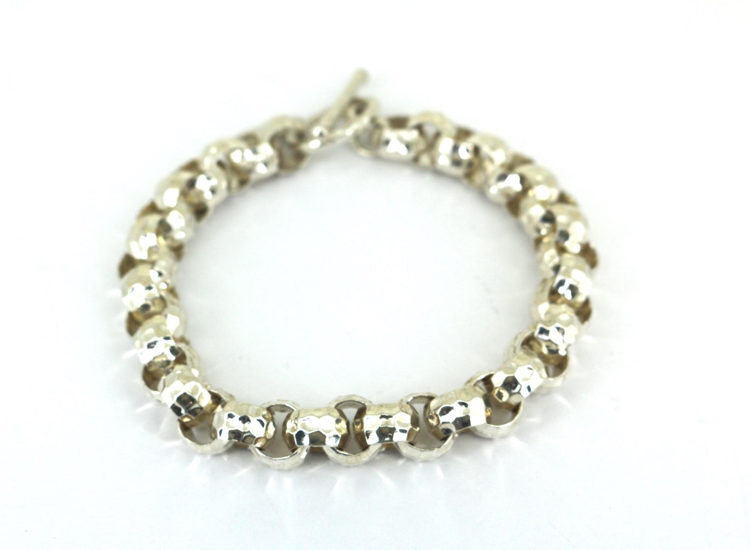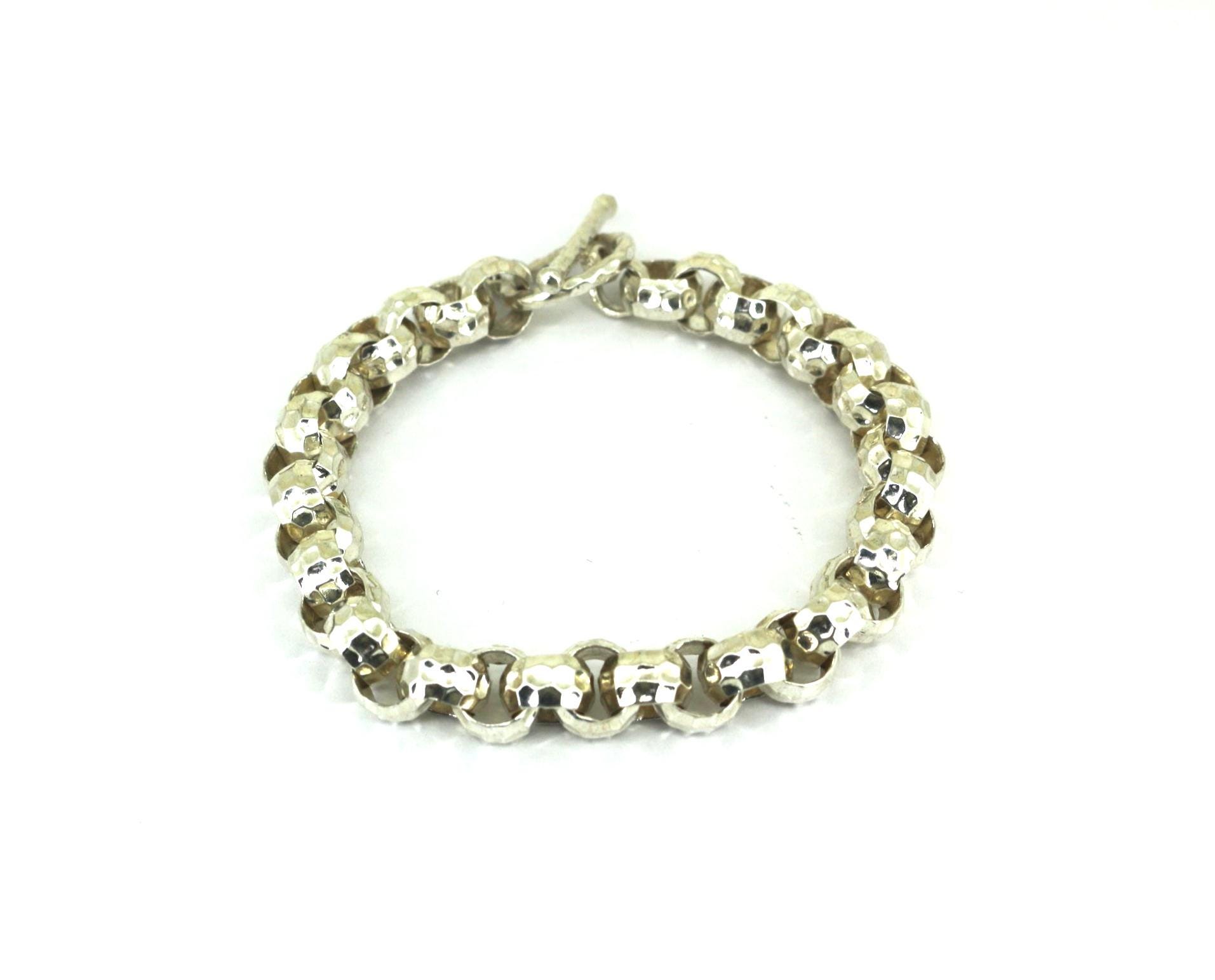 Vintage Stencil Heart Link Bracelet 925 Sterling Silver BR 068