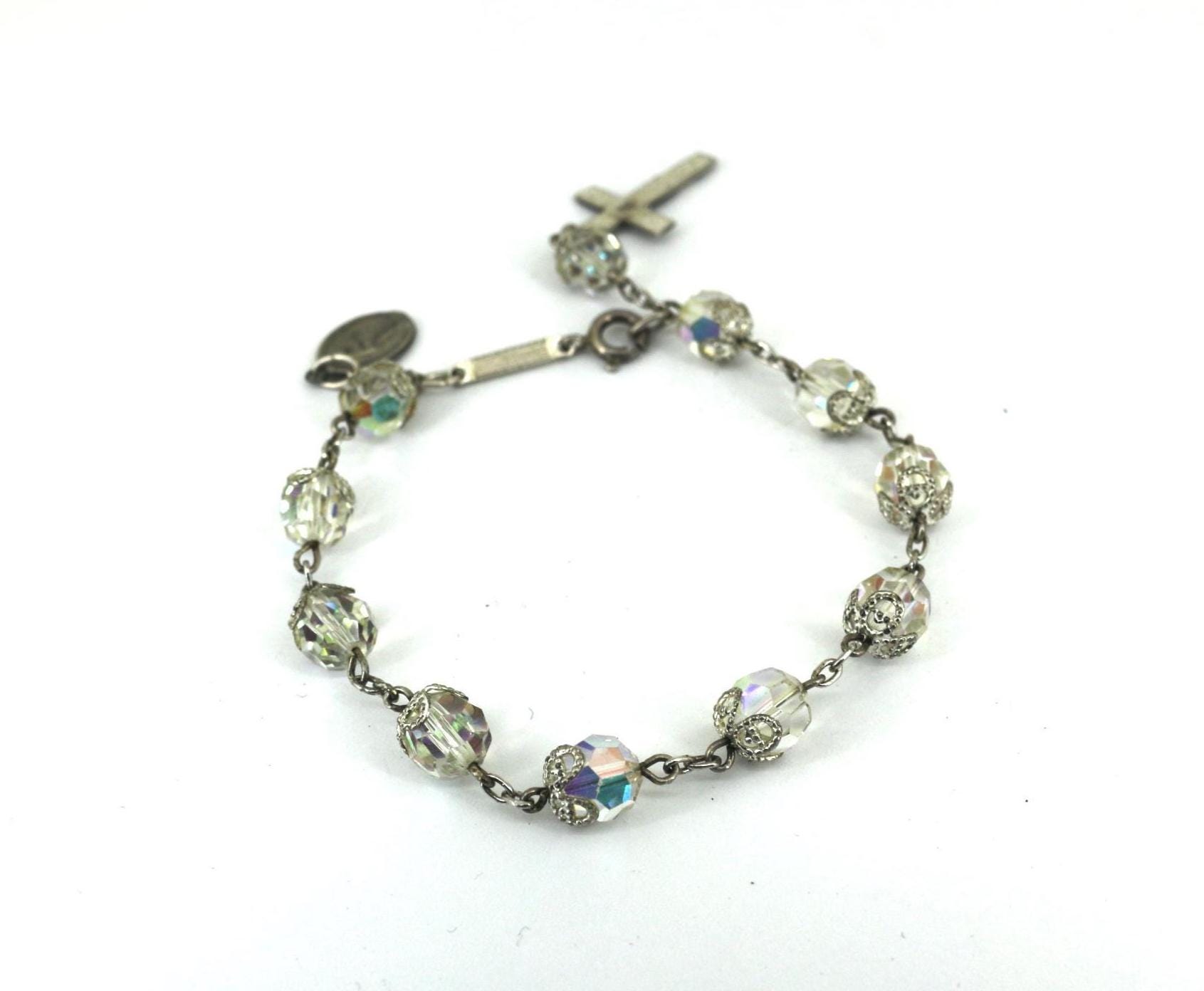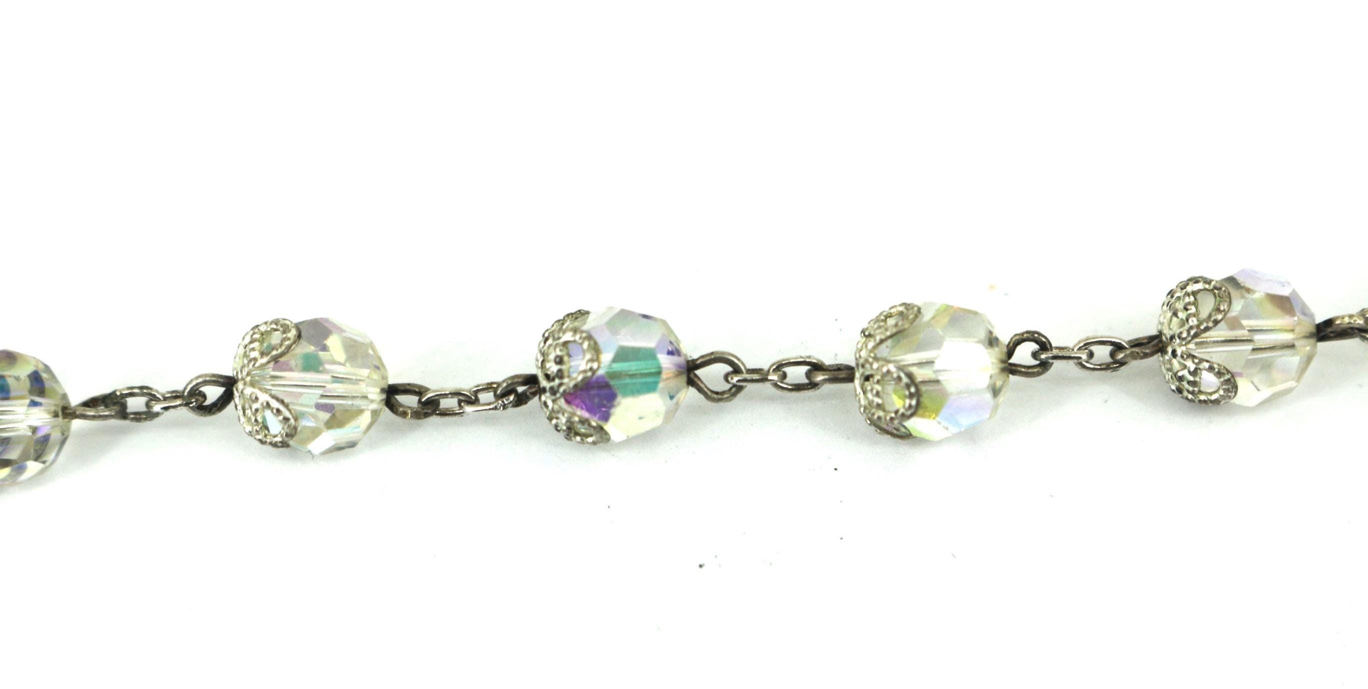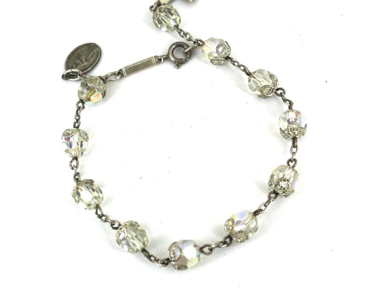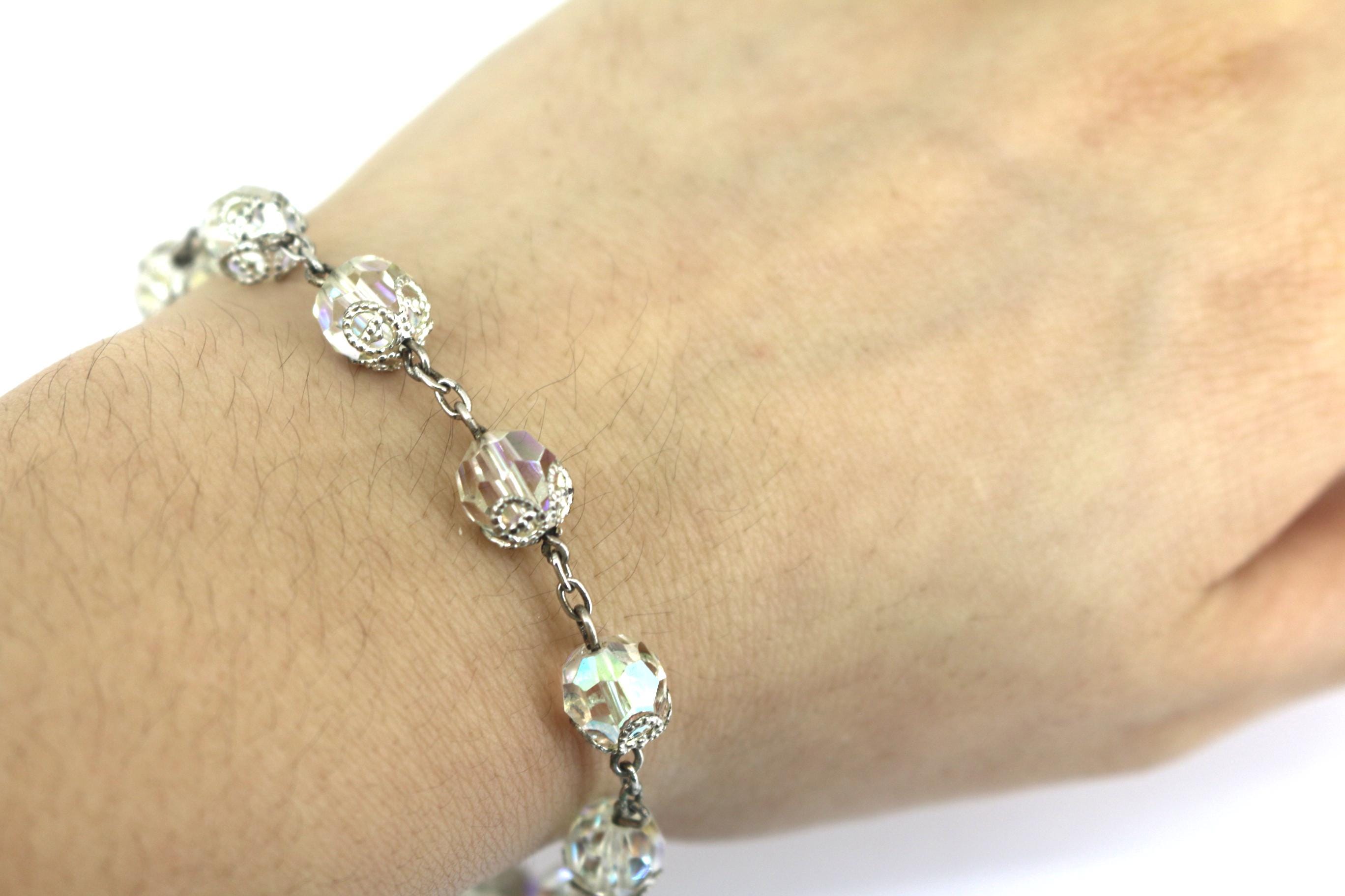 Vintage Clear Beads Bracelet 925 Sterling BR 164
