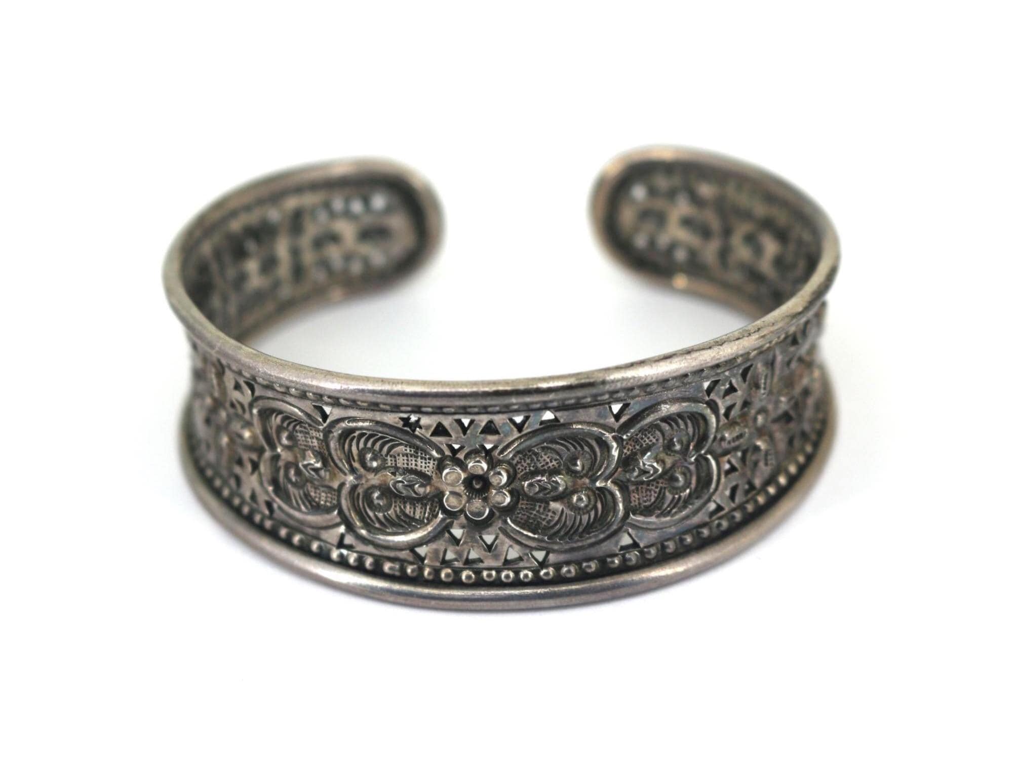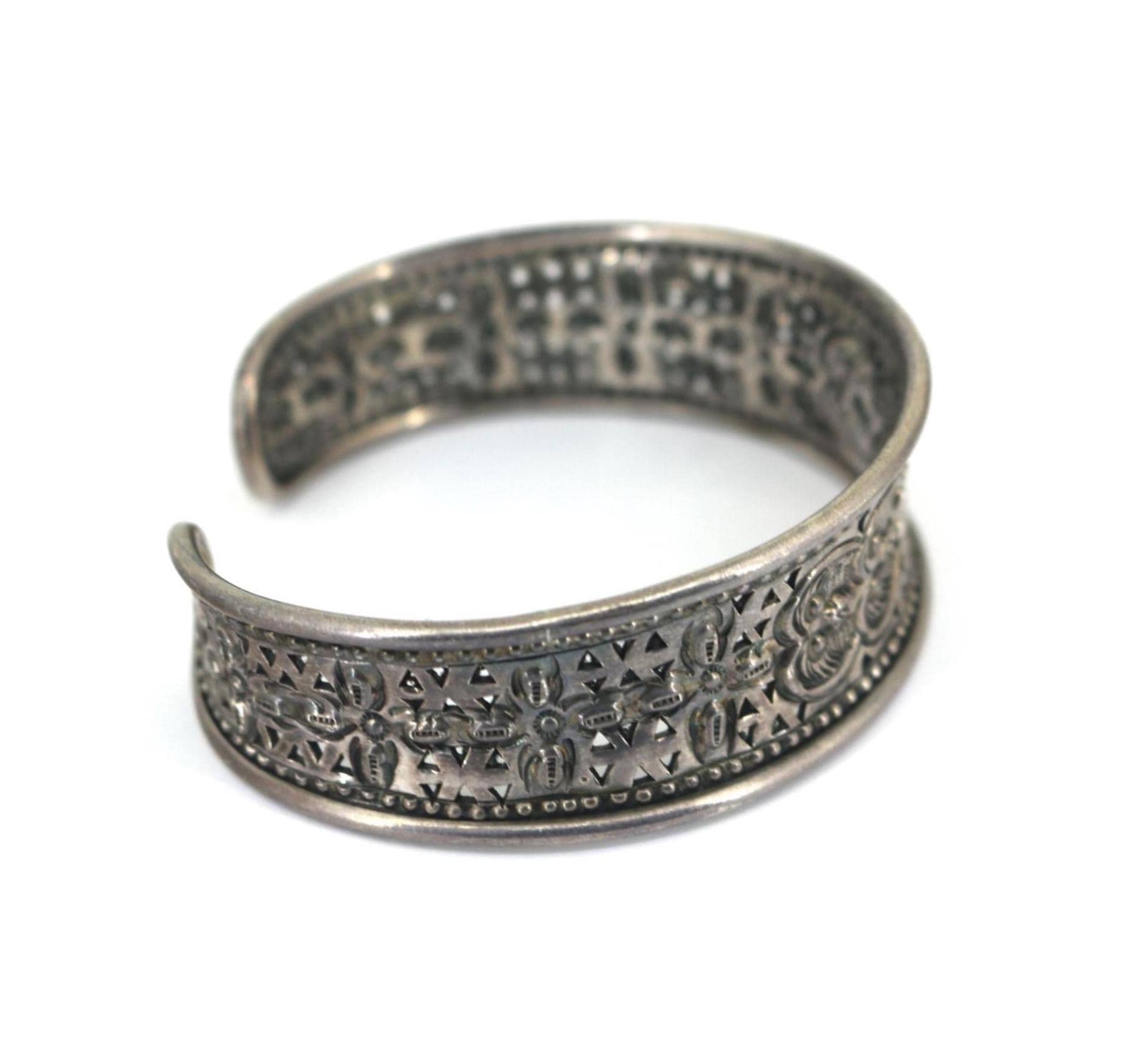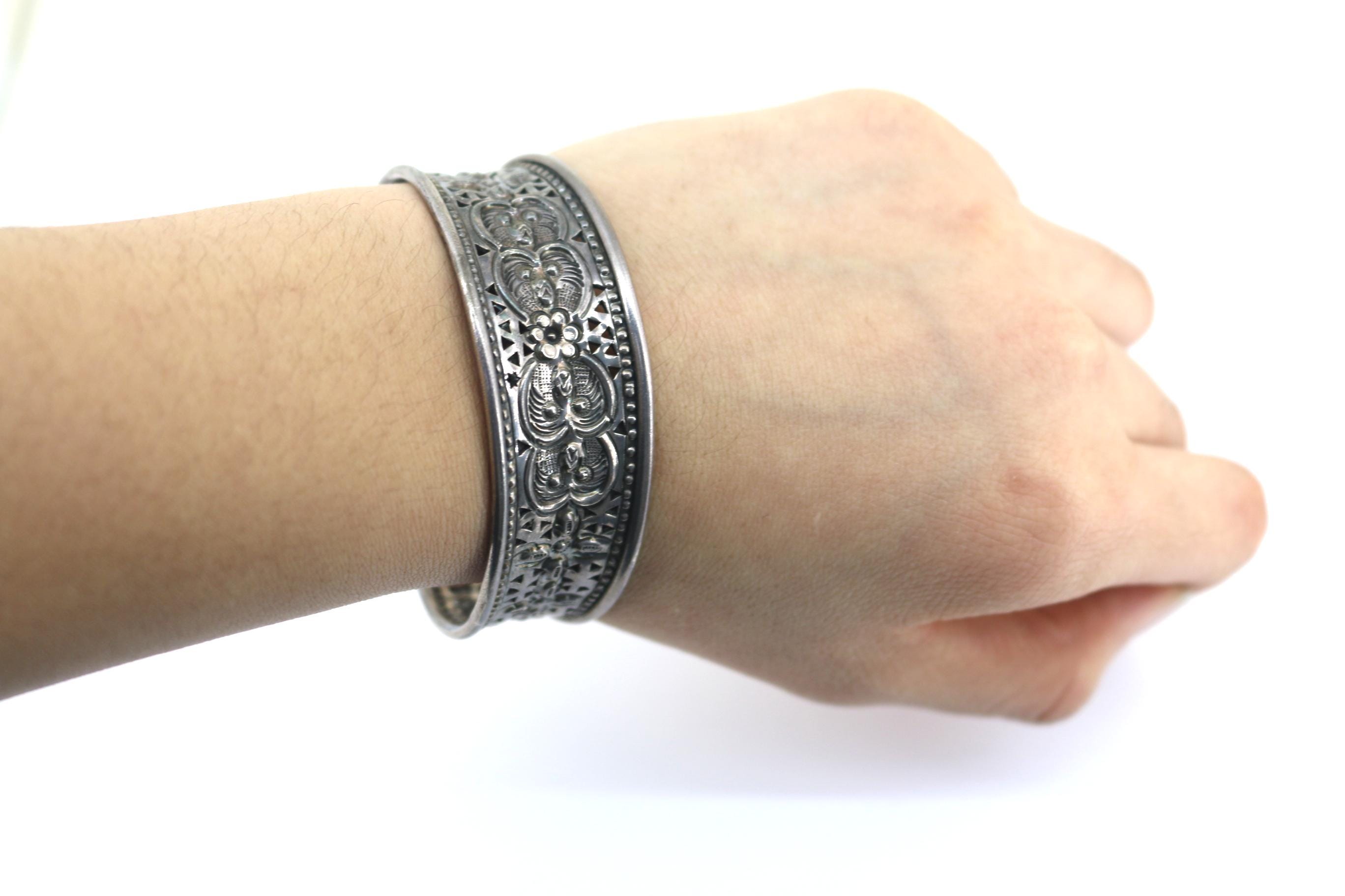 Vintage Scroll Floral Cuff Bracelet 925 Sterling Silver BR 214