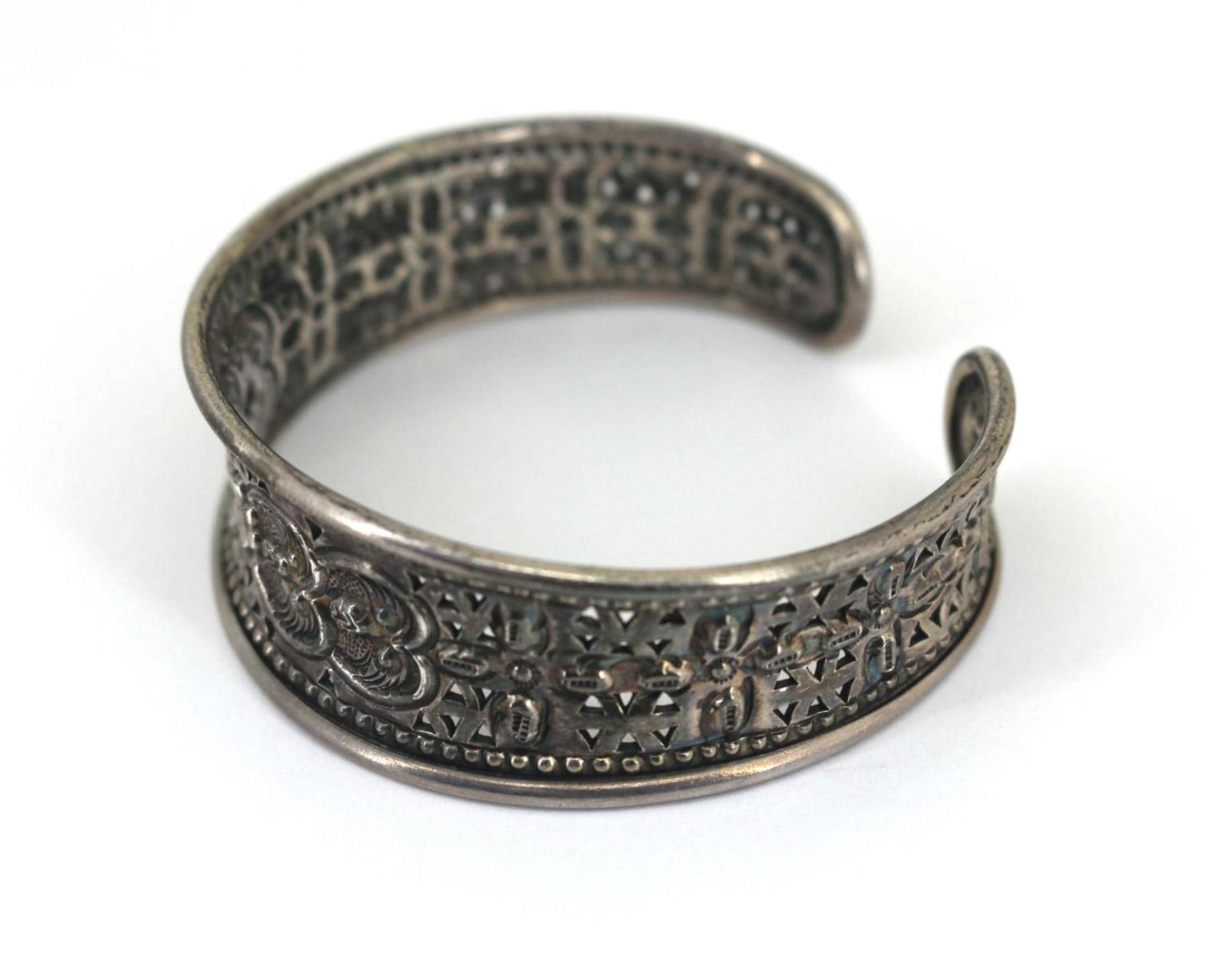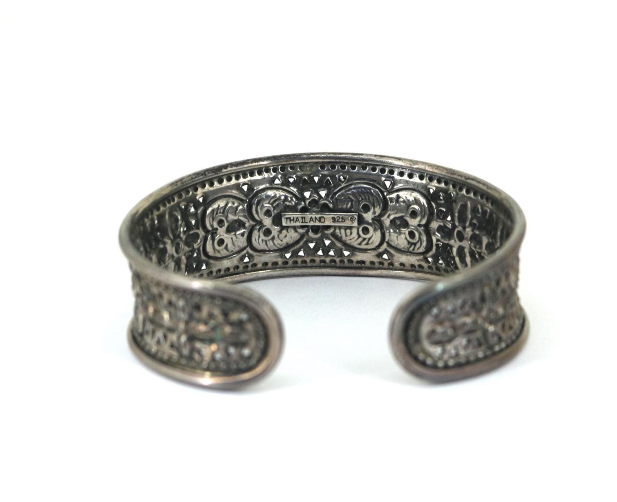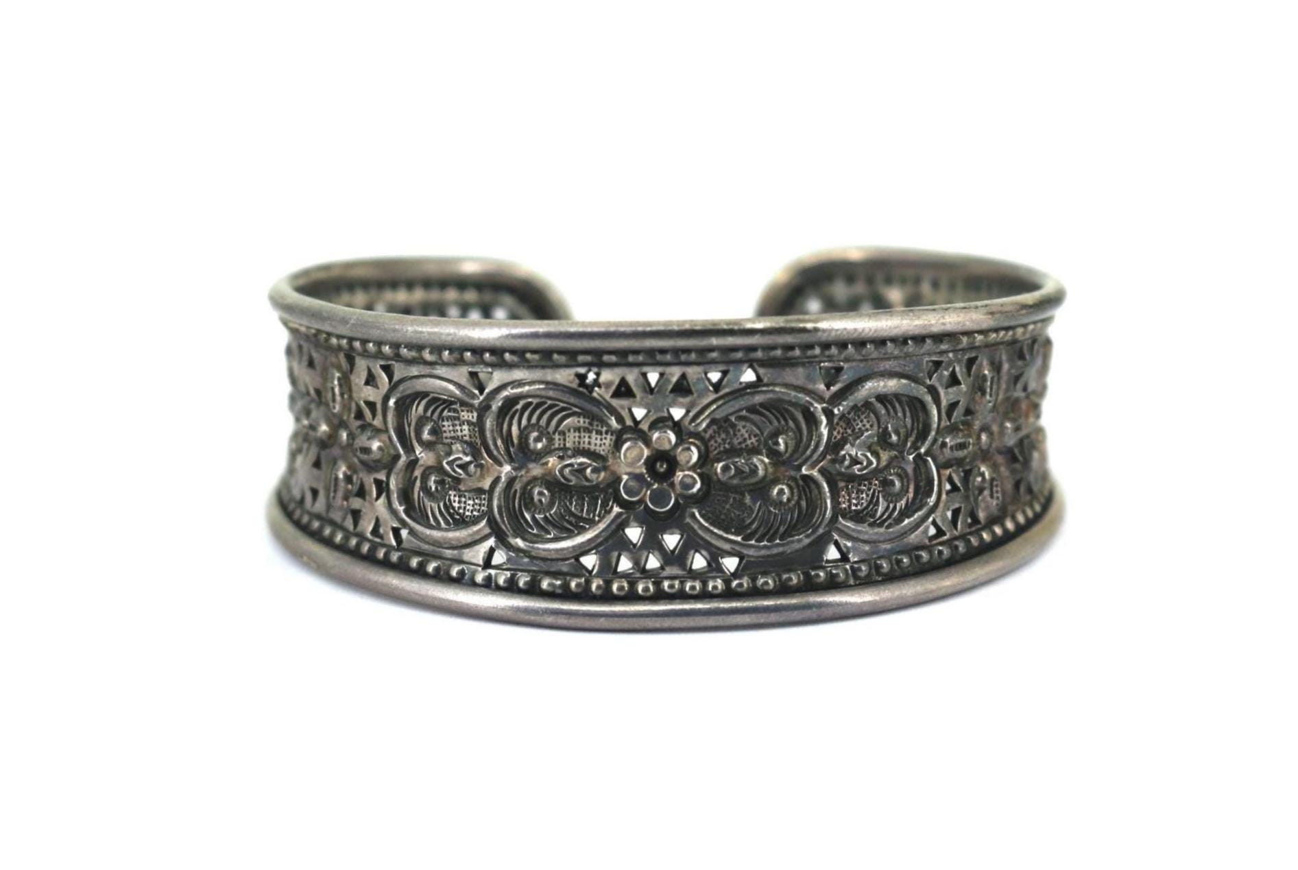 Vintage Scroll Floral Cuff Bracelet 925 Sterling Silver BR 214