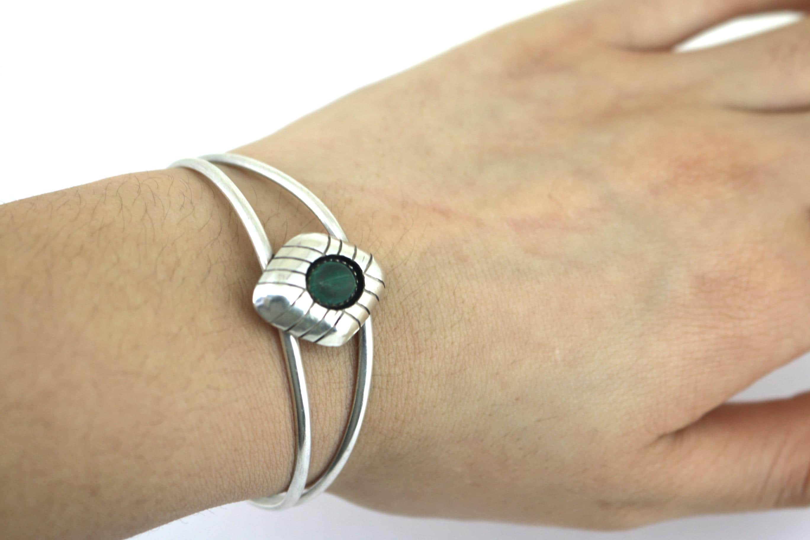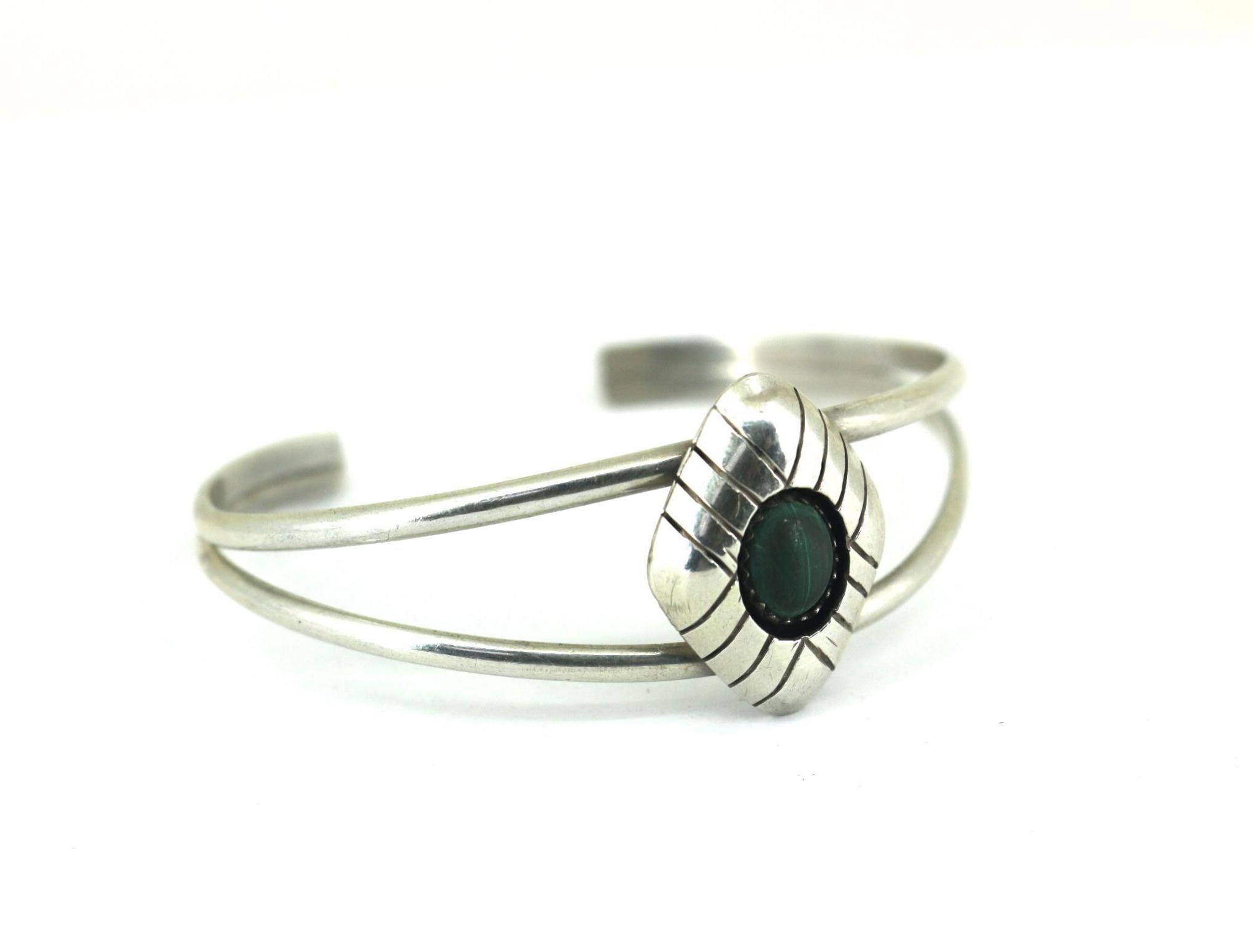 Vintage Carolyn Pollack Southwestern Malachite Cuff Bracelet Sterling BR 183