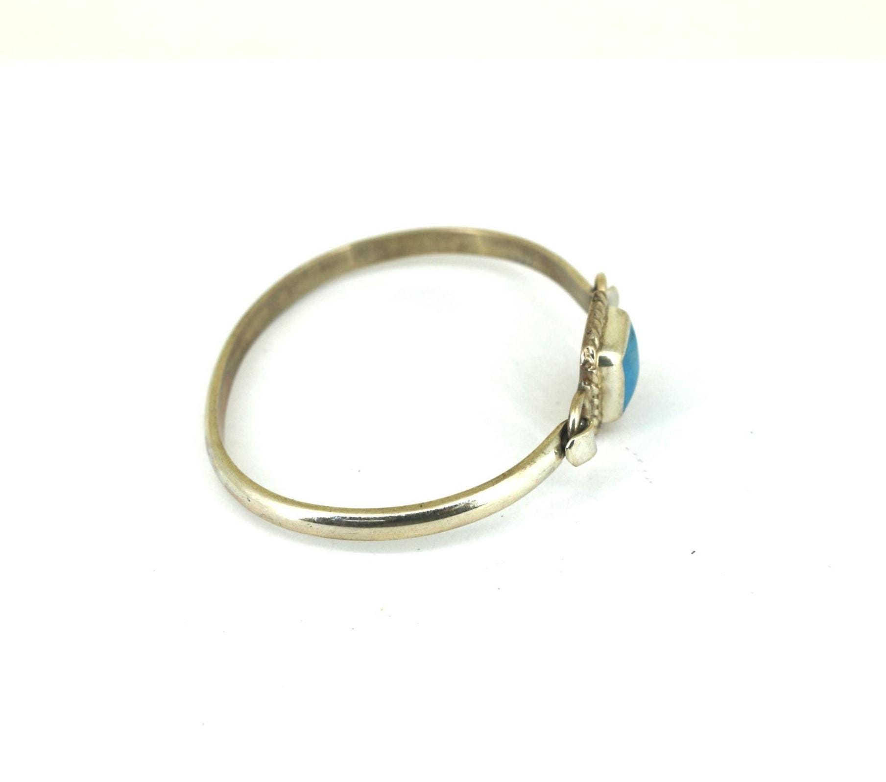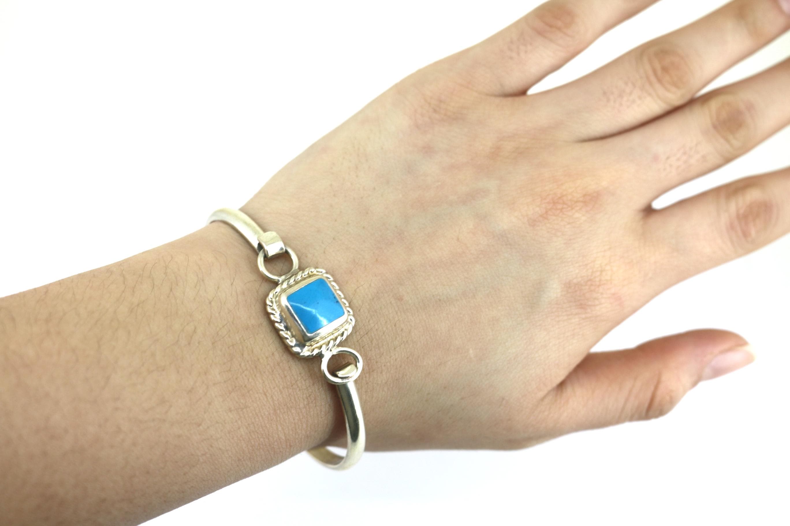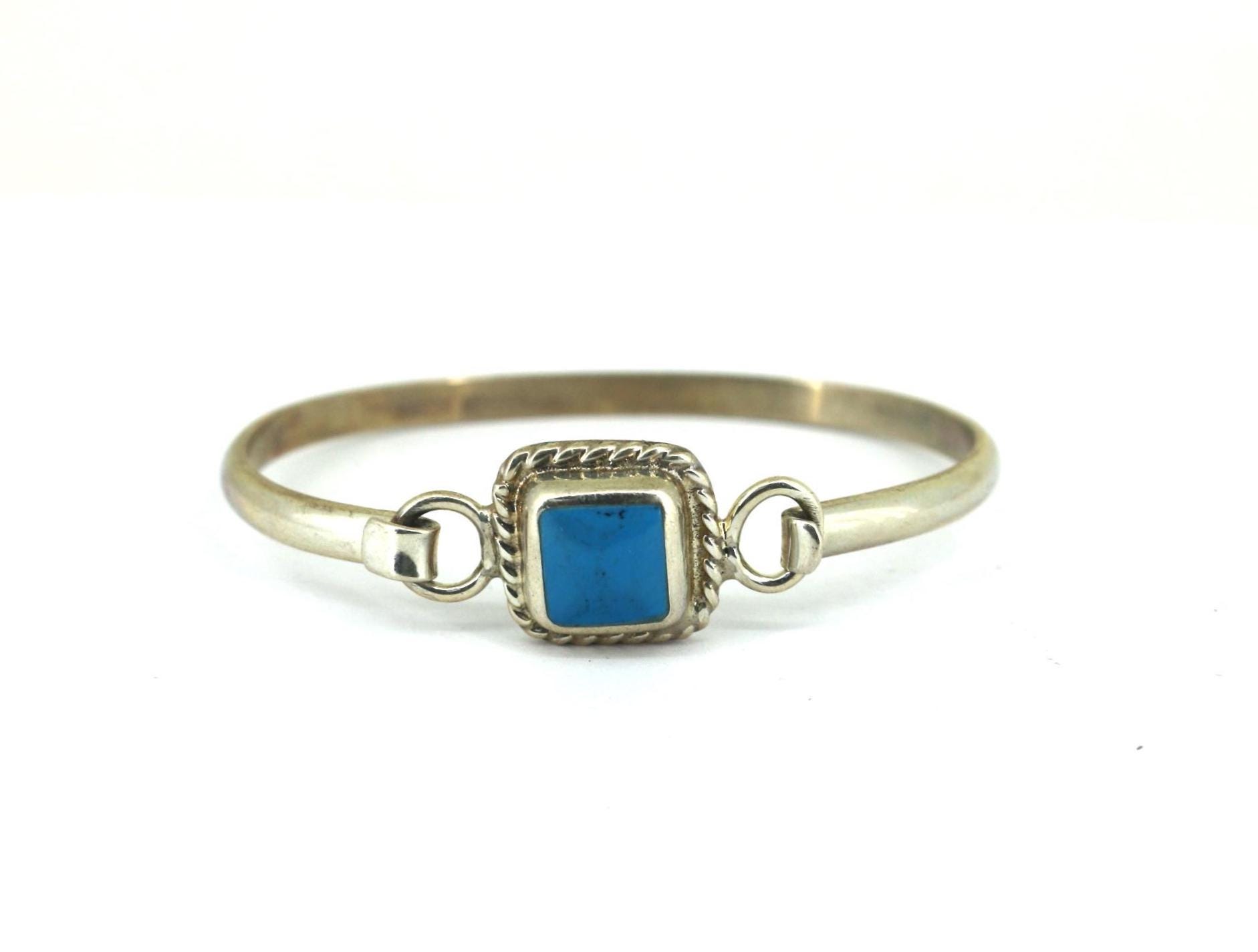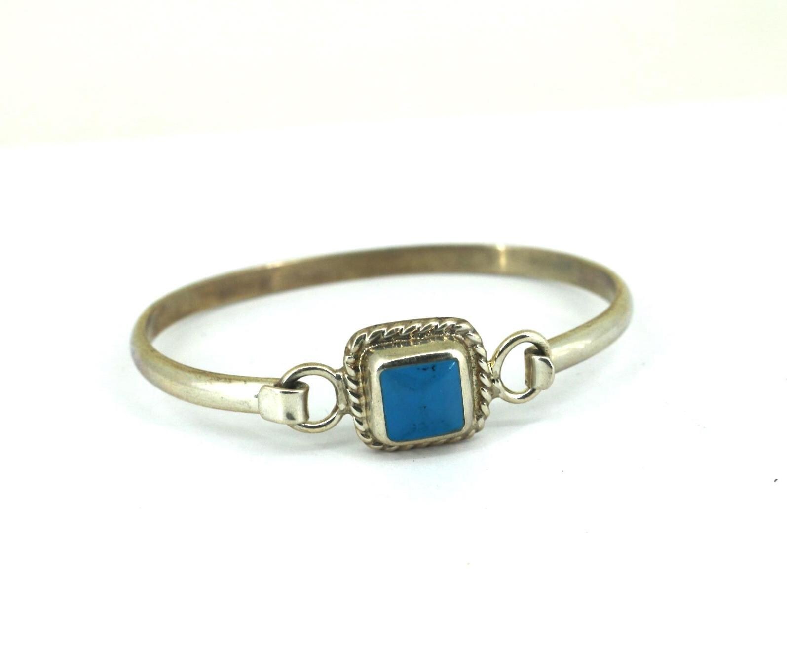 Vintage Mexico Square Cut Turquoise Cuff Bracelet Sterling BR 215