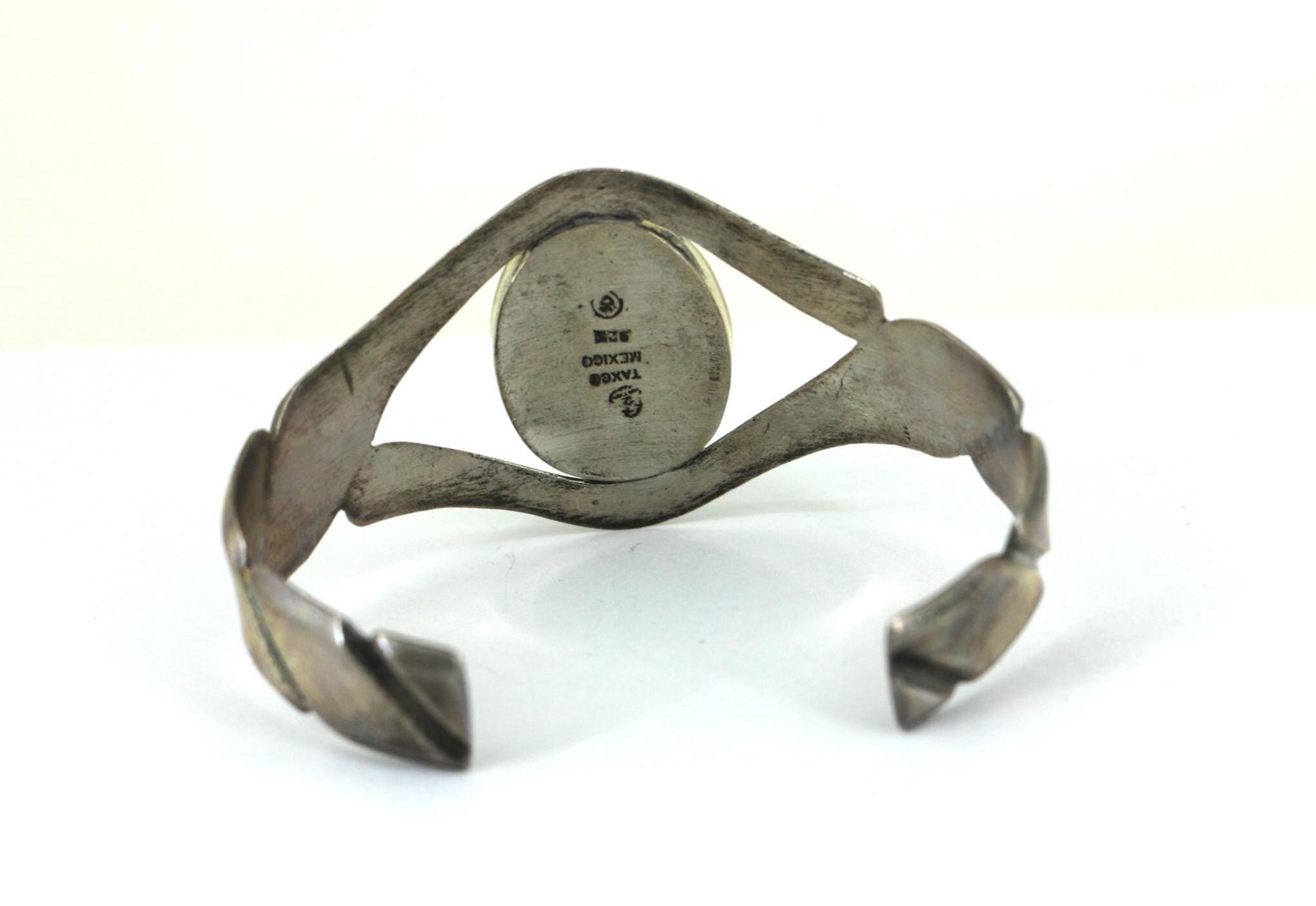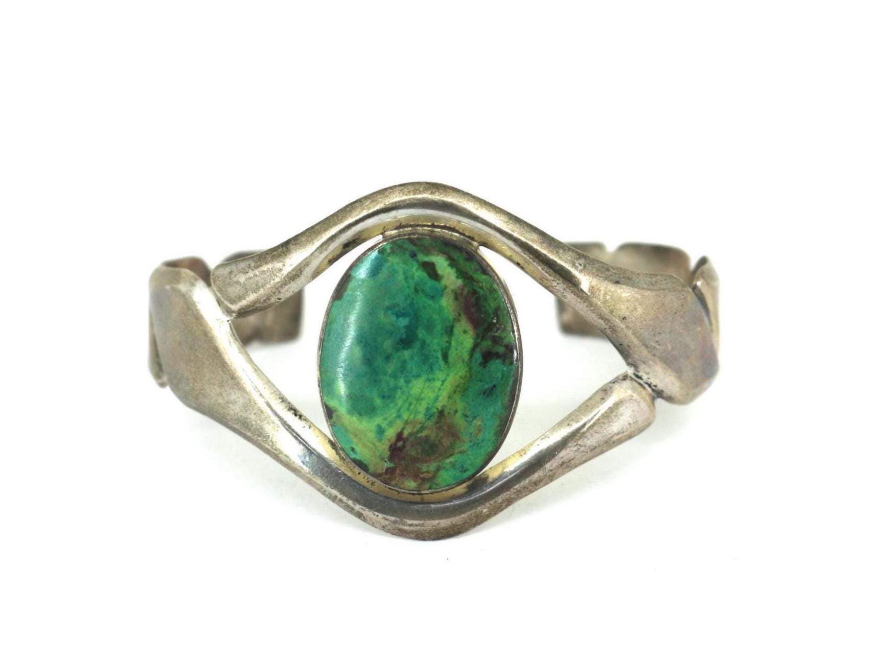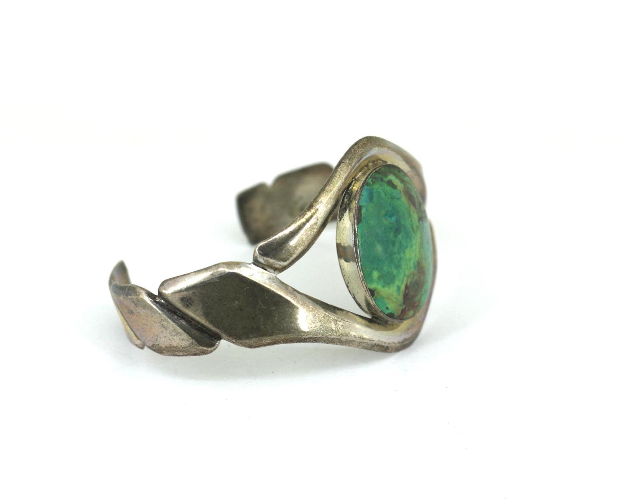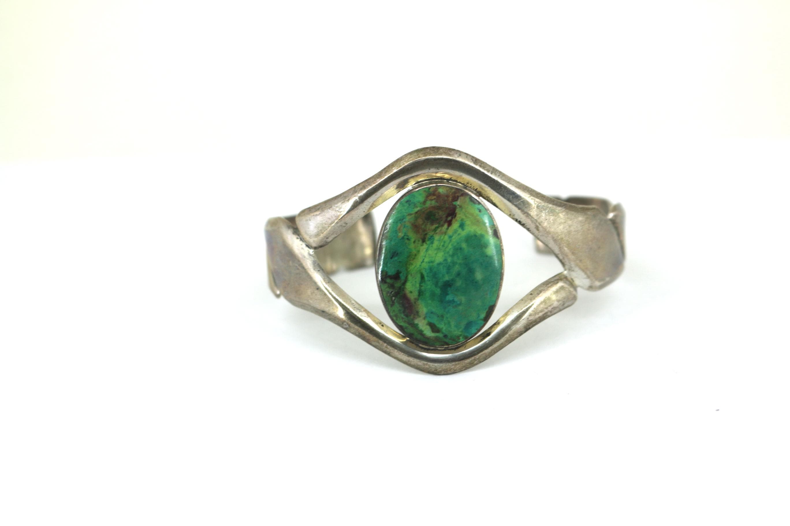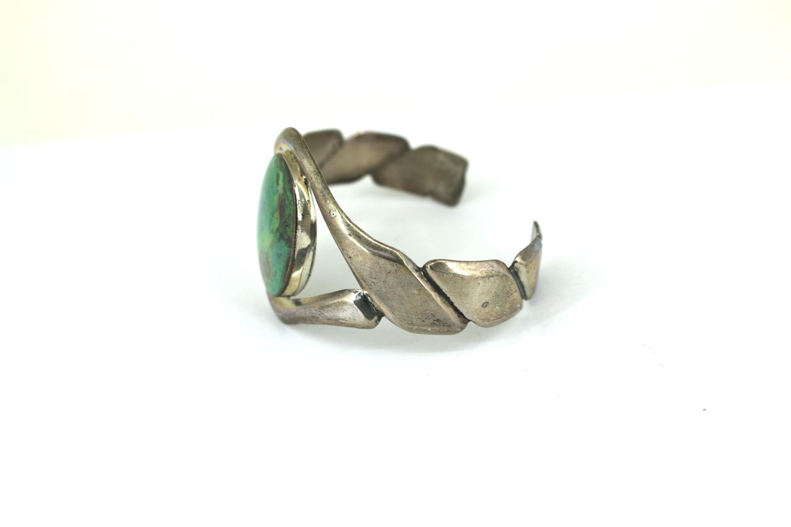 Vintage Mexico Green Turquoise 925 Sterling Silver Cuff Bracelet BR 219