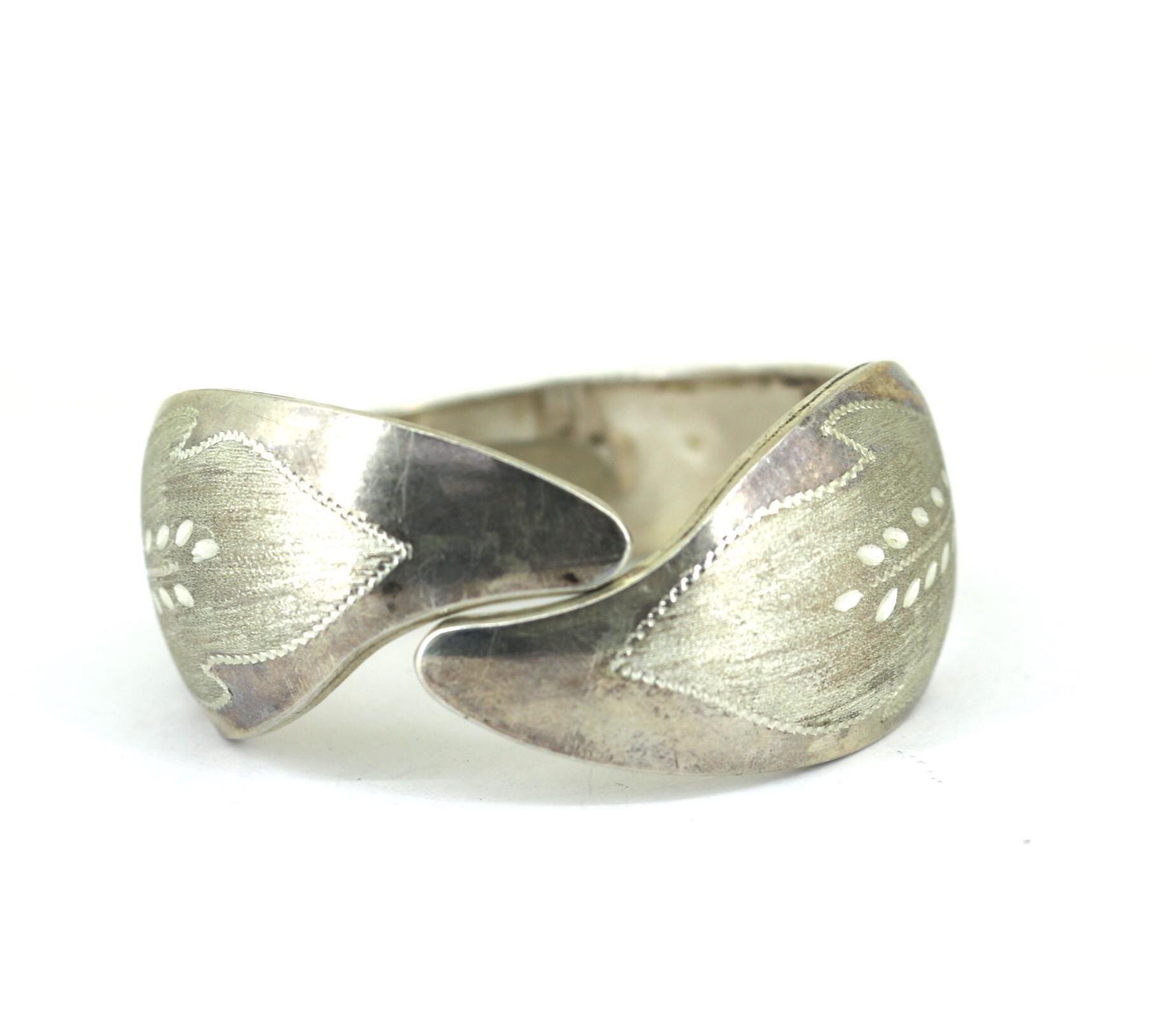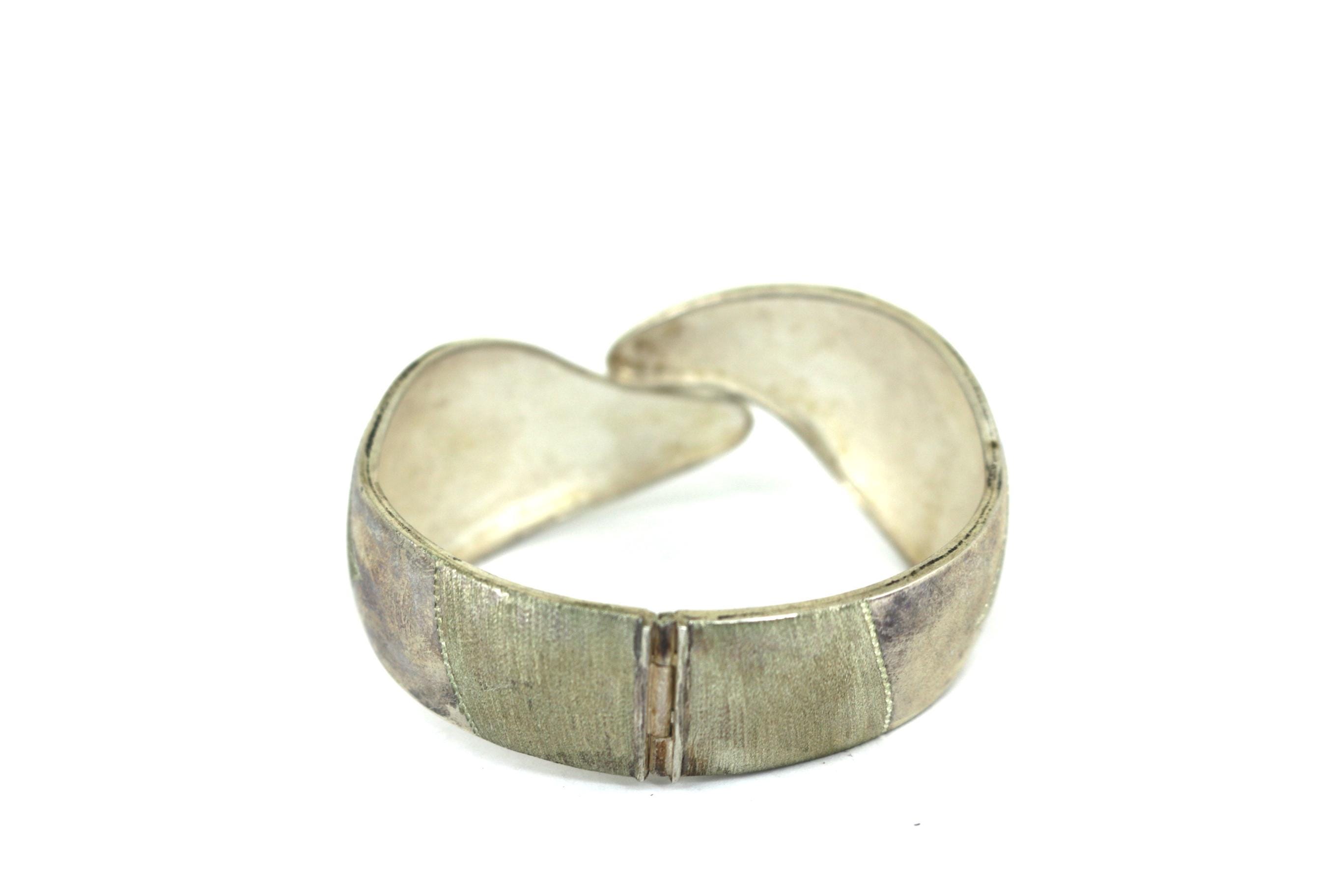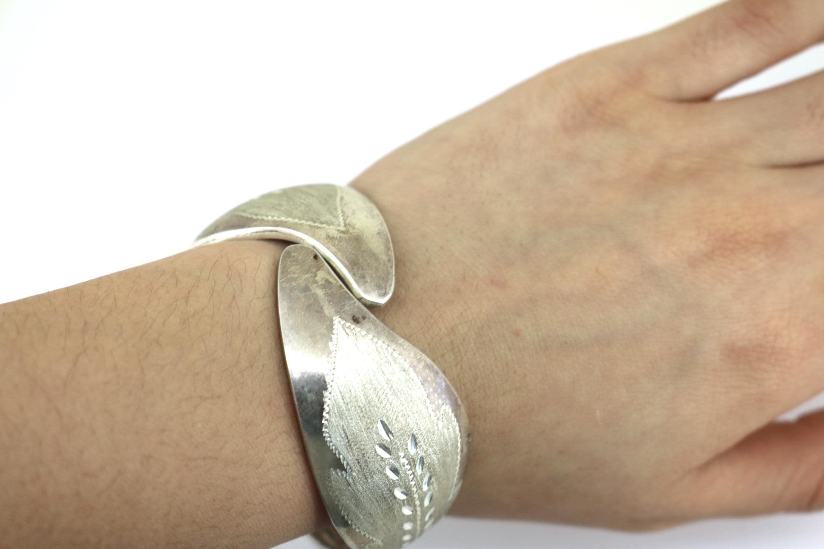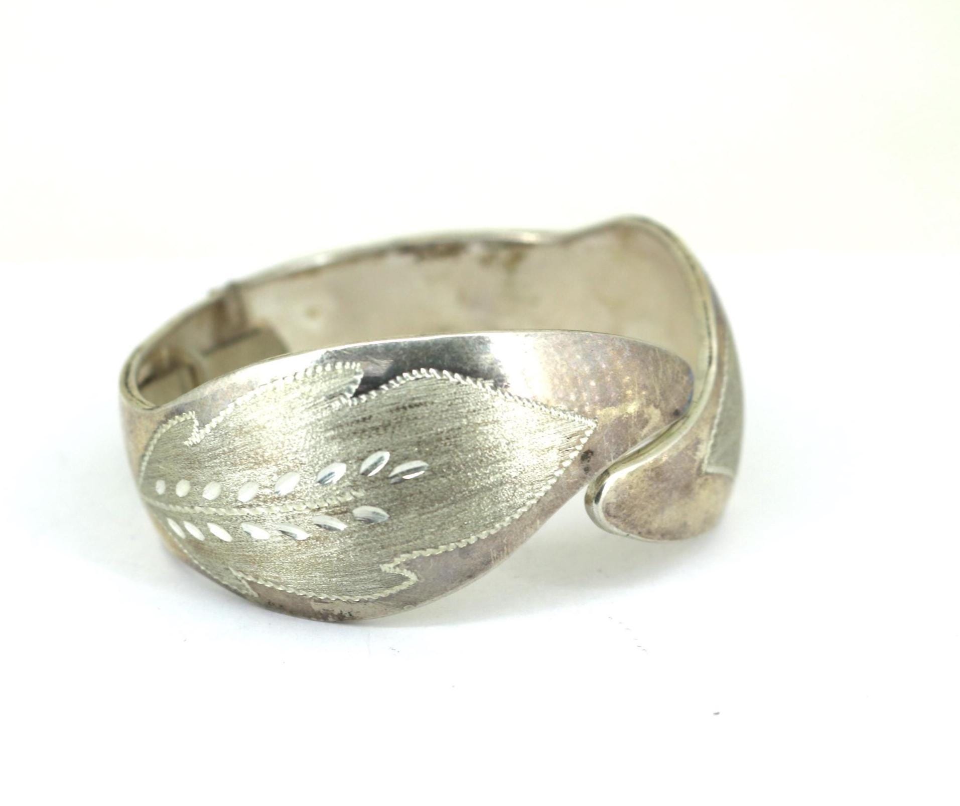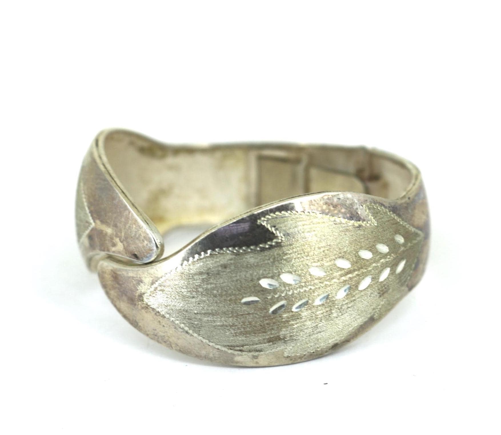 Vintage Leaf-Like Wide Bangle Bracelet 925 Sterling BR 220