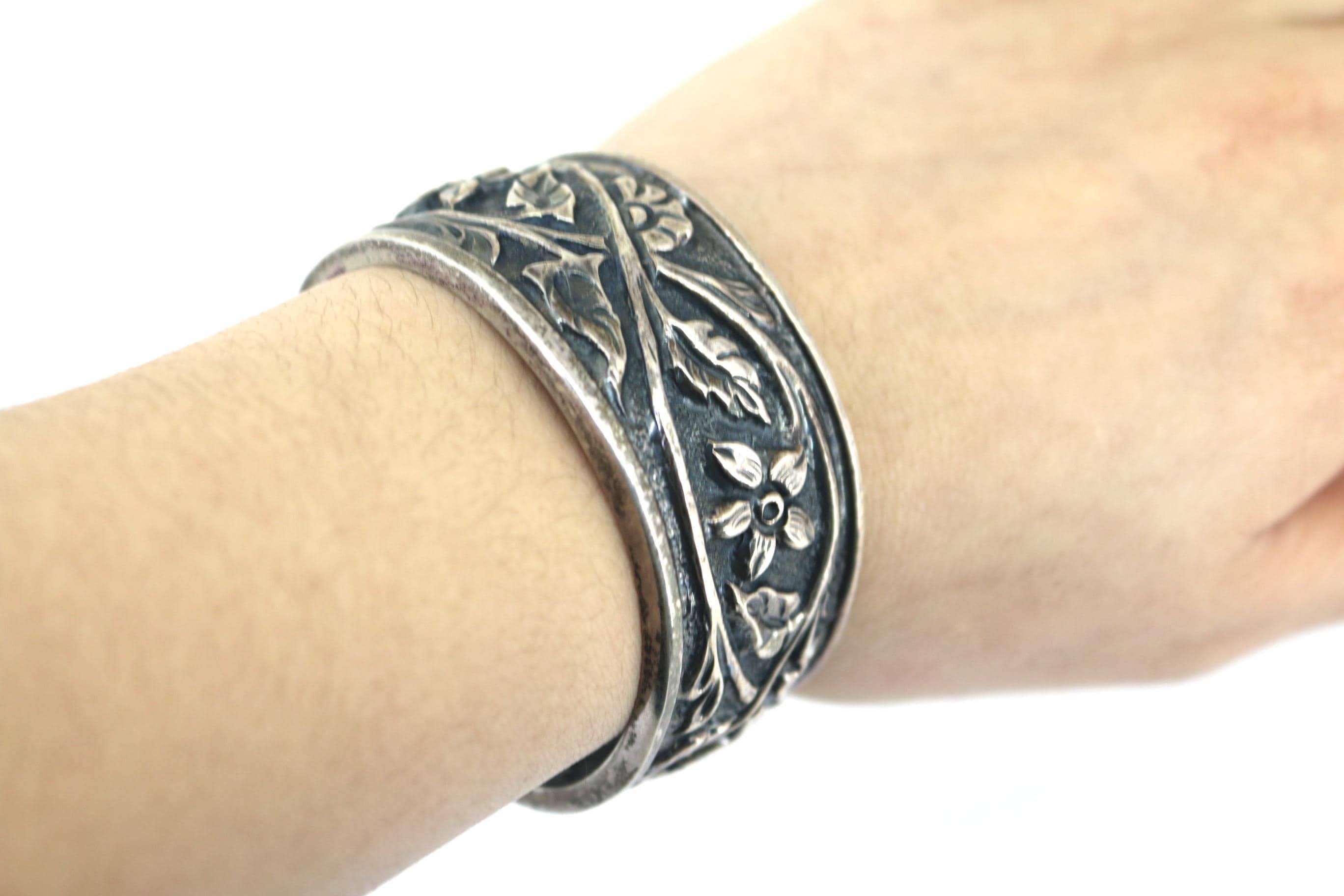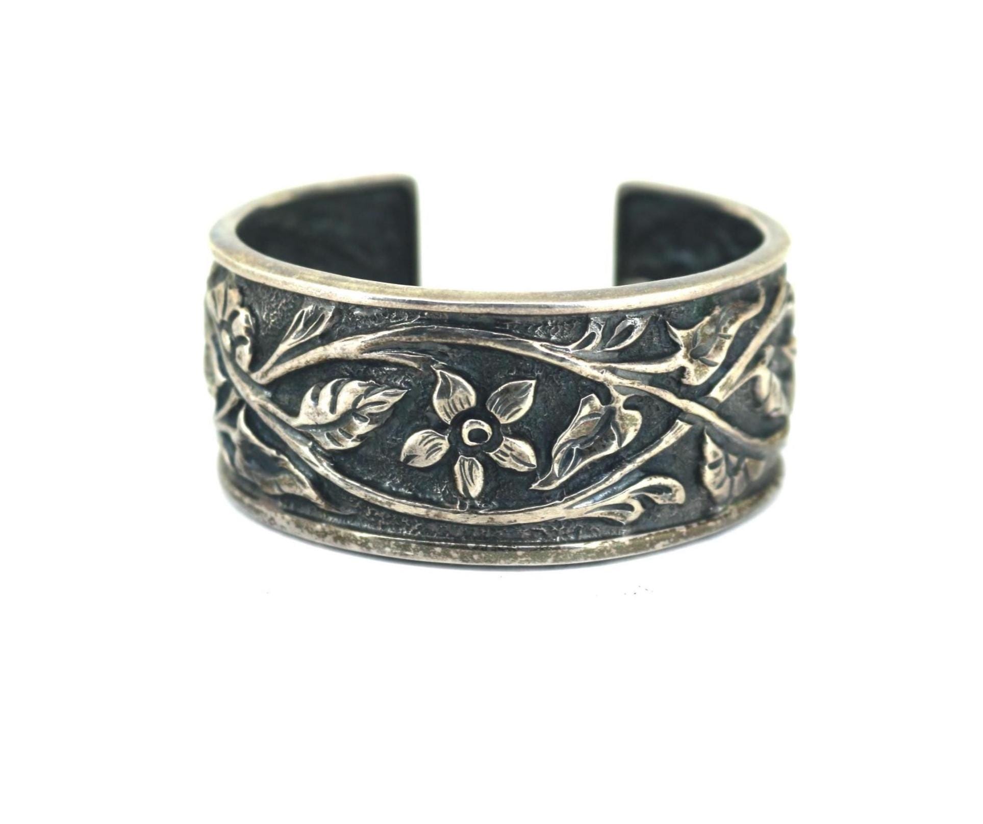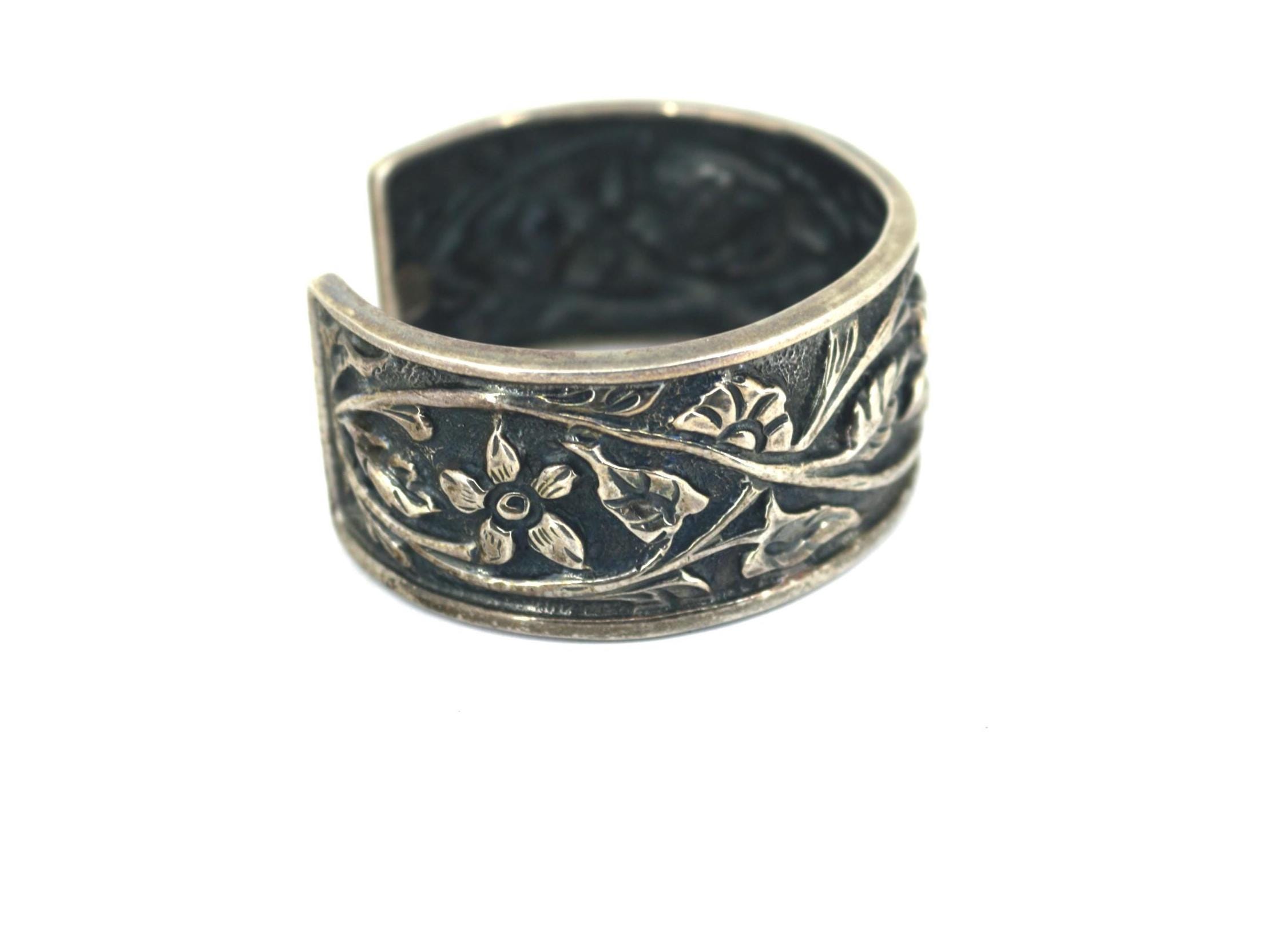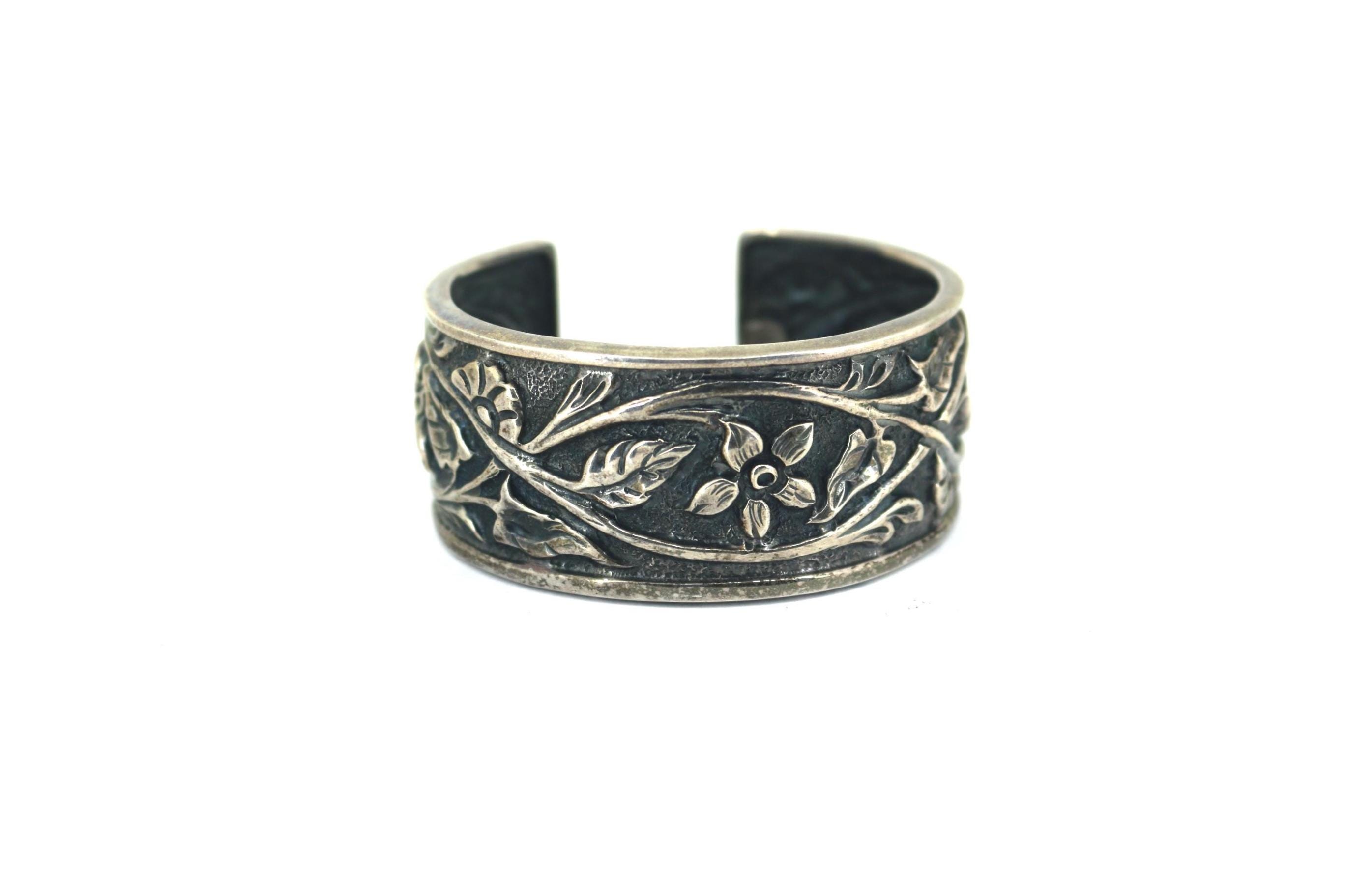 Vintage Silpada Floral Cuff Bracelet Etched Flowers BR 227