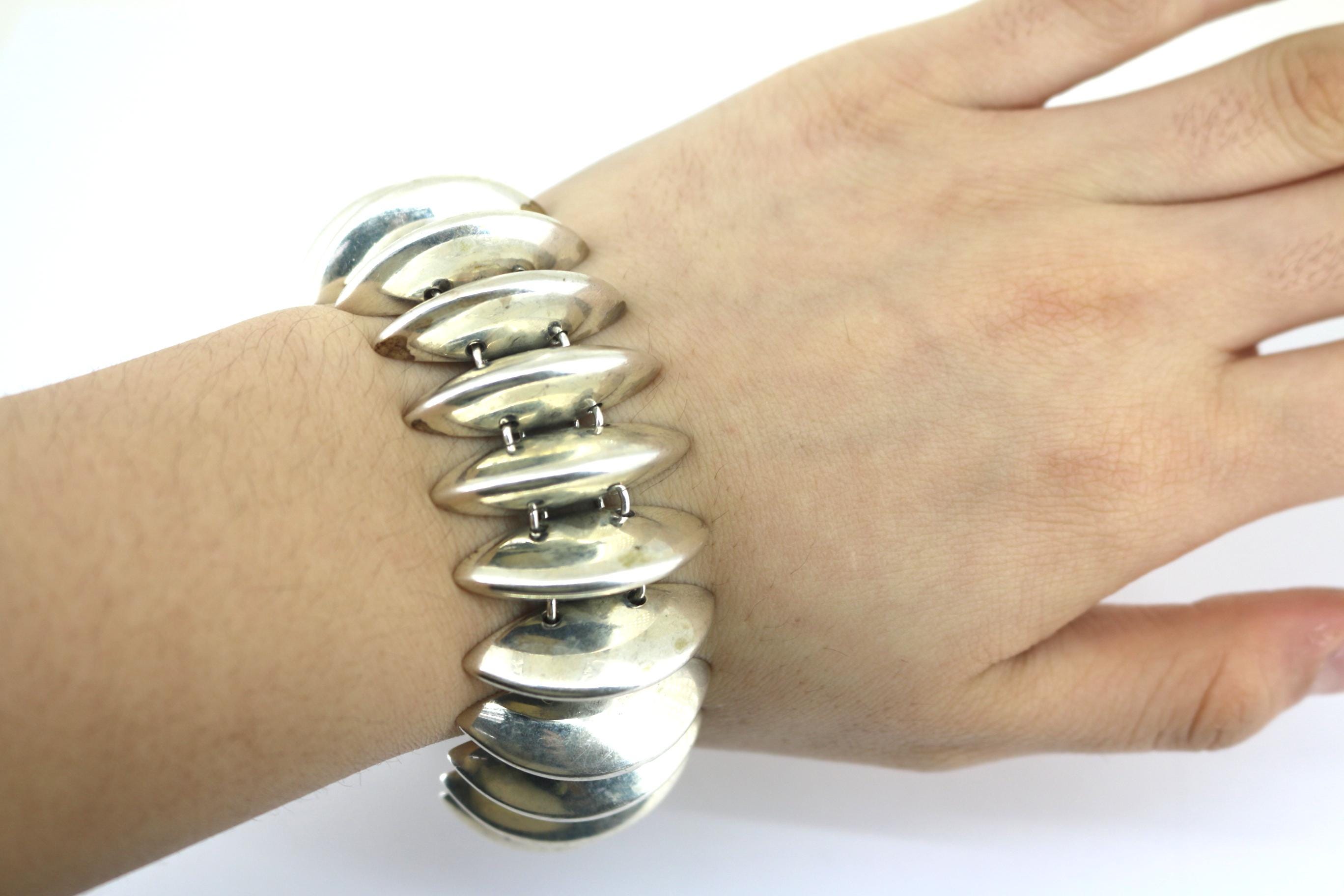 Vintage Robert Lee Morris 925 Italy Heavy Sculptural Disk Bracelet 925 Sterling BR 055