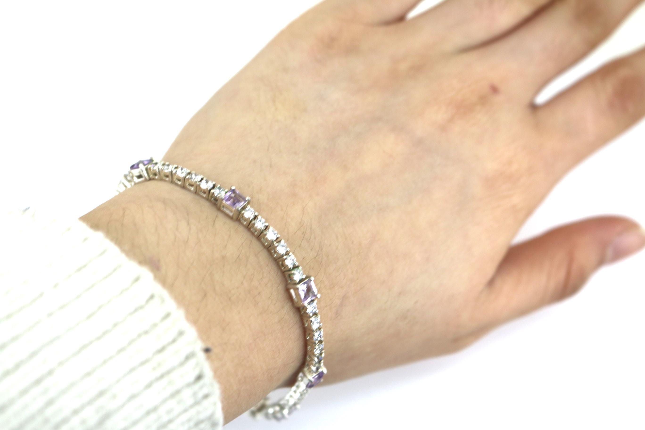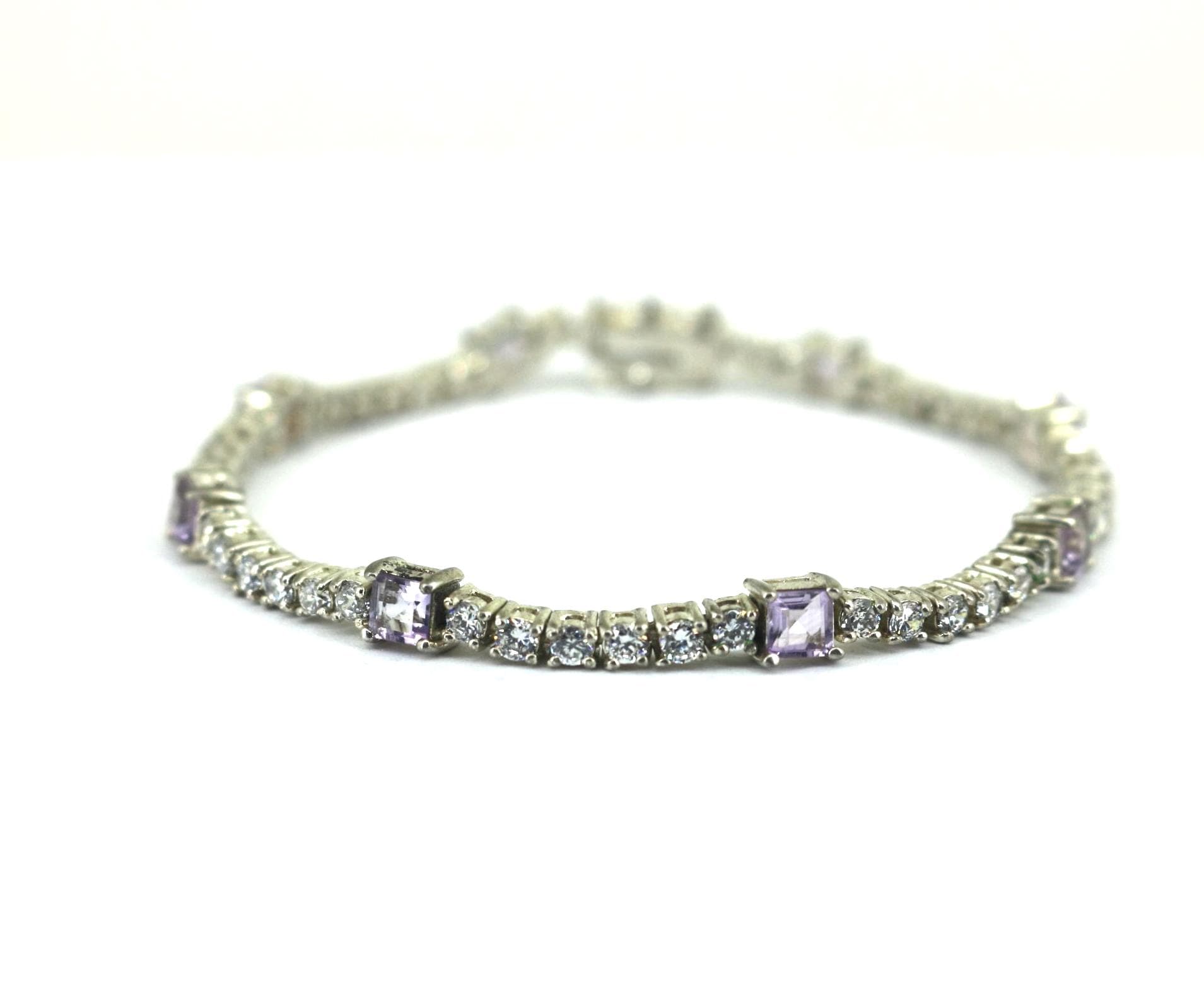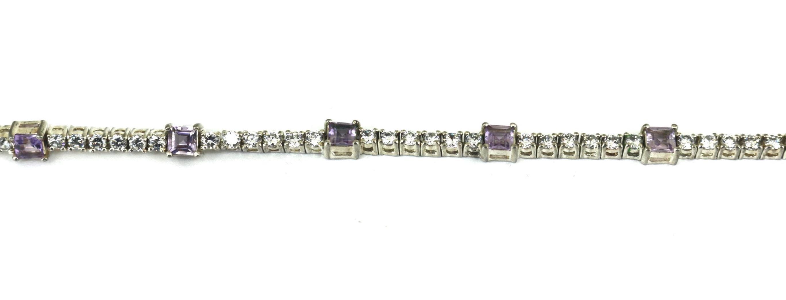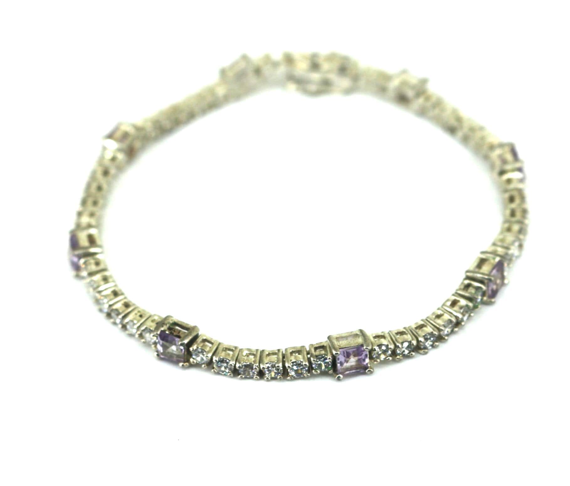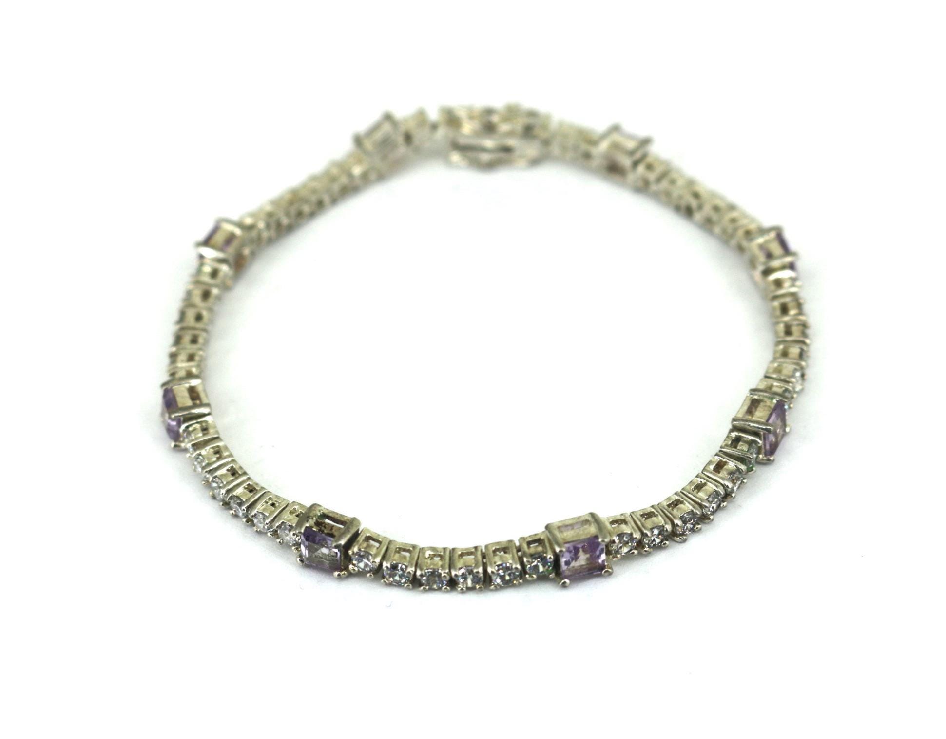 Vintage Sparkling White & Purple Tennis Bracelet 925 Sterling BR 240