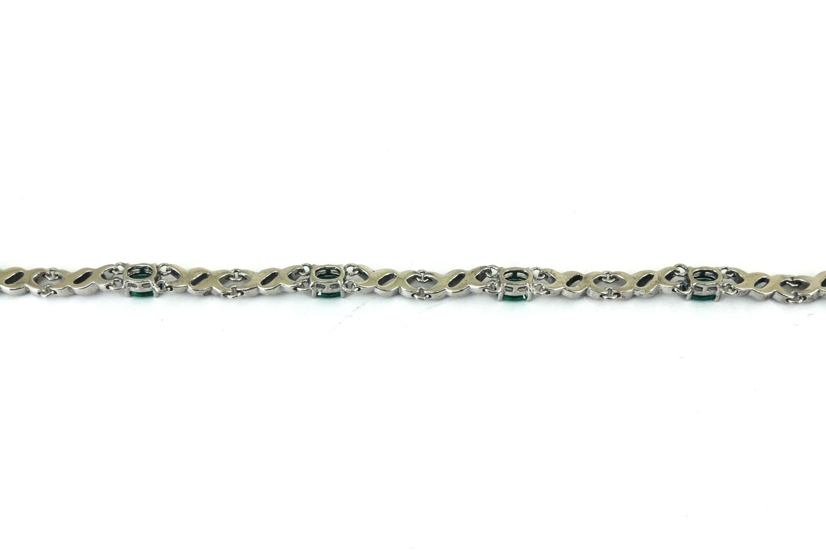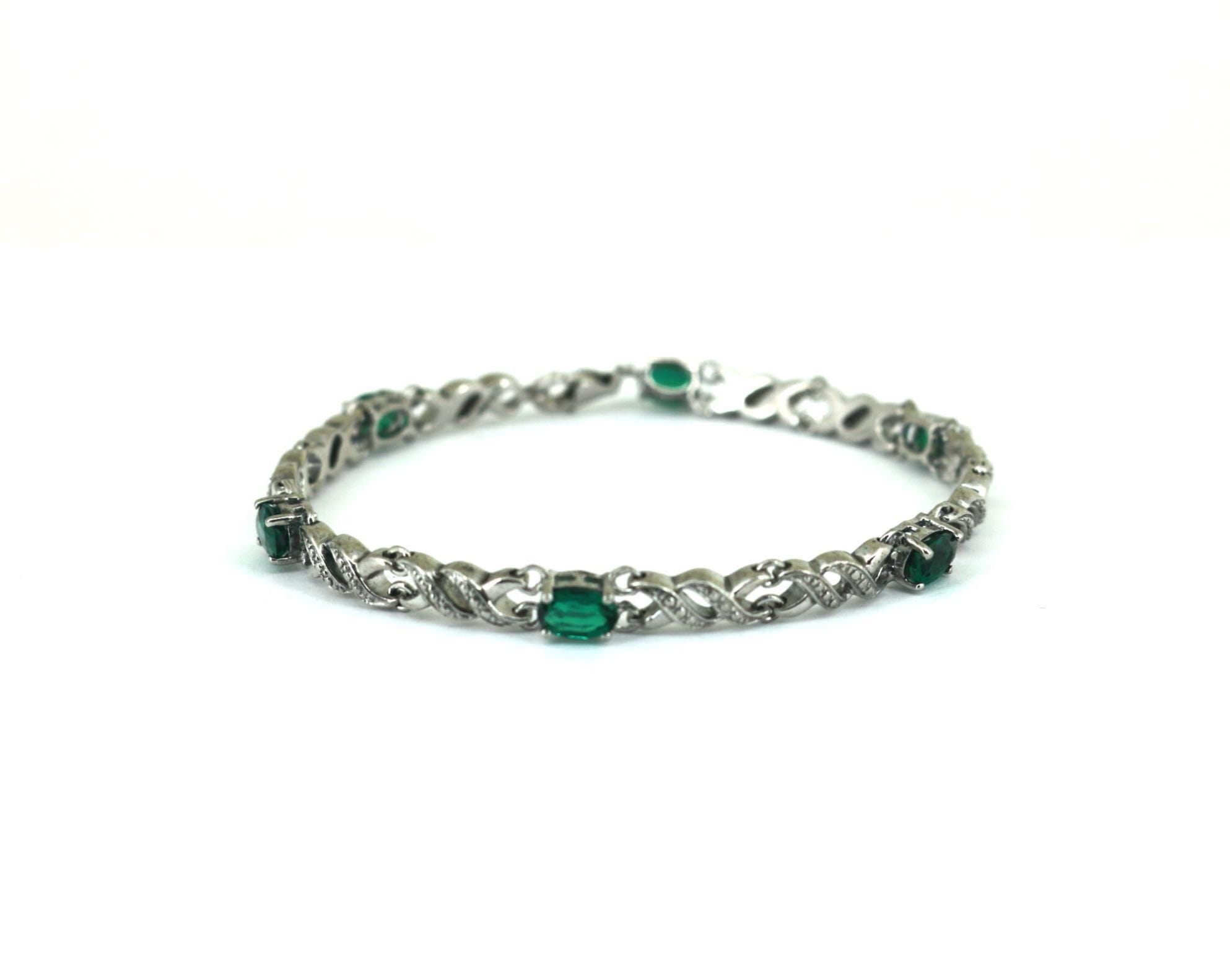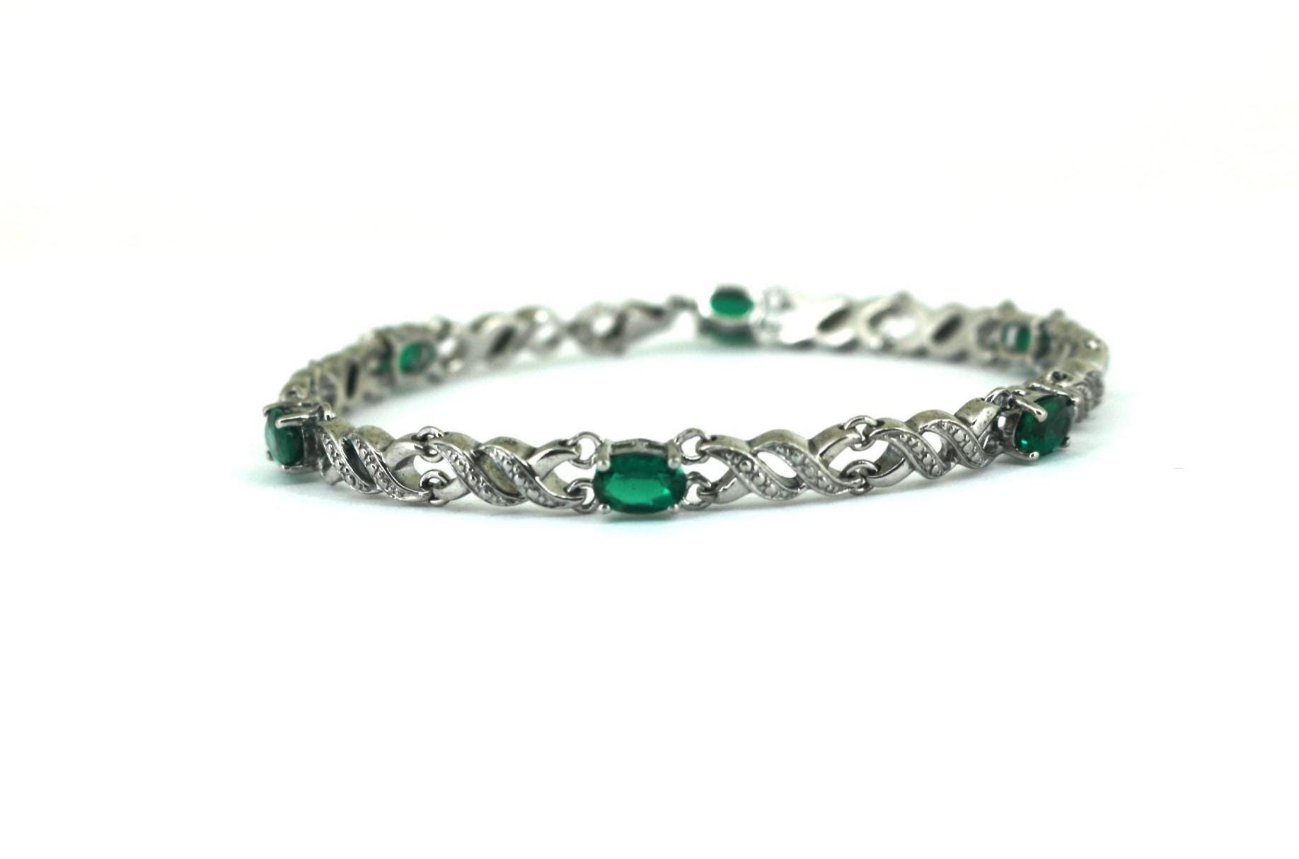 Vintage Emerald Green CZ Links Tennis Bracelet 925 Sterling BR 249