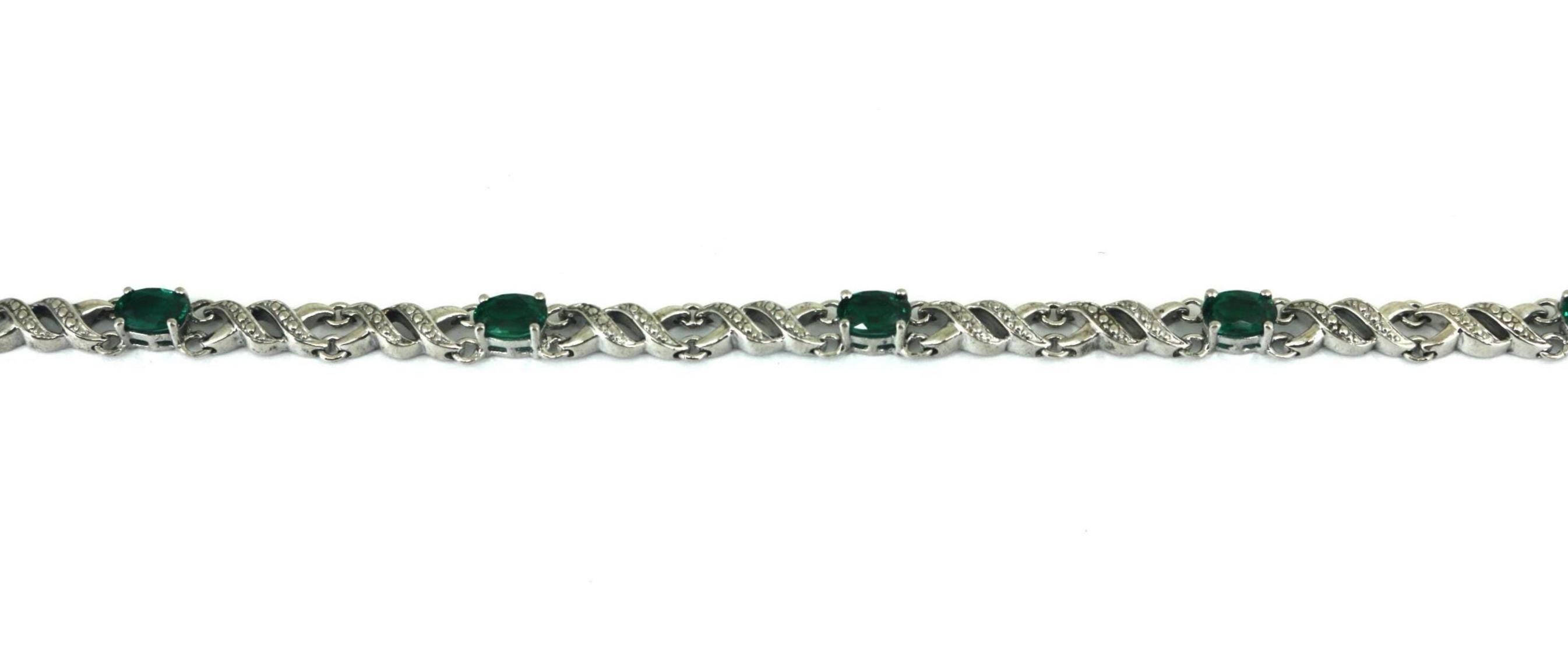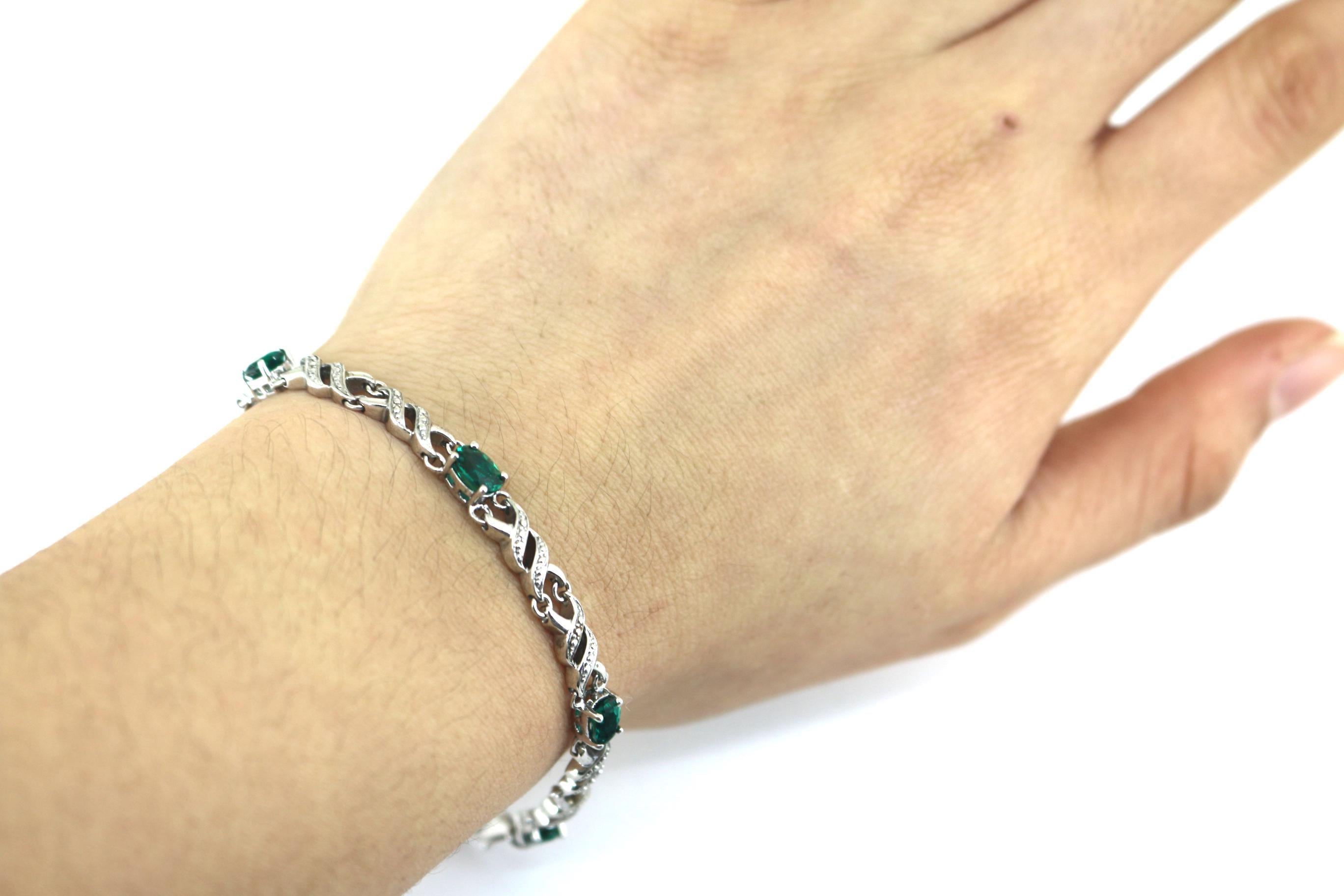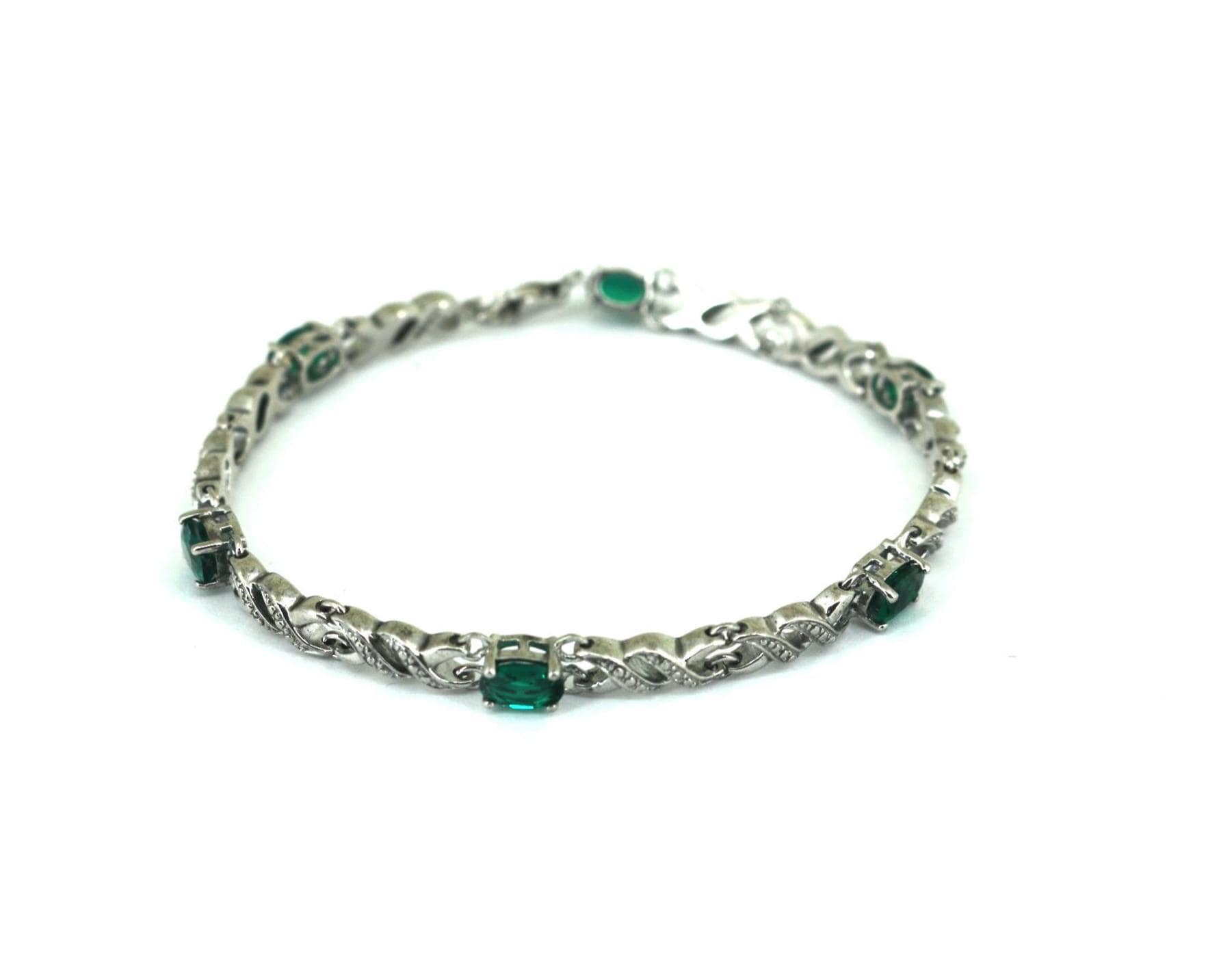 Vintage Emerald Green CZ Links Tennis Bracelet 925 Sterling BR 249