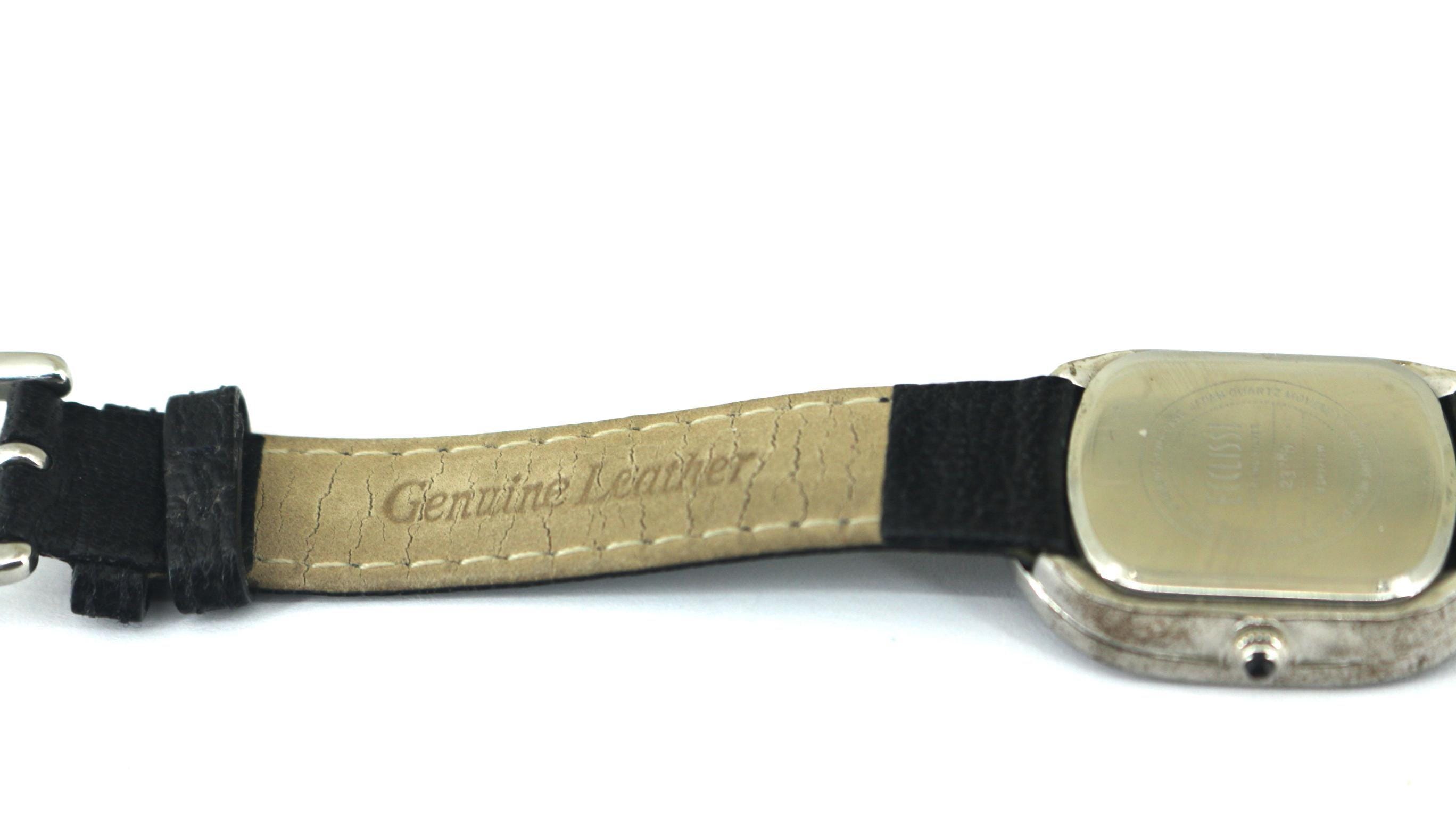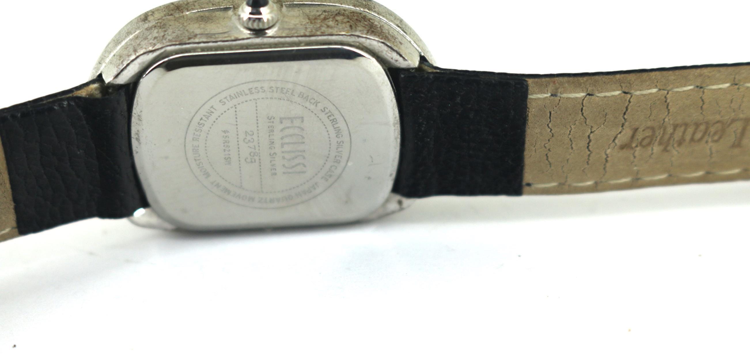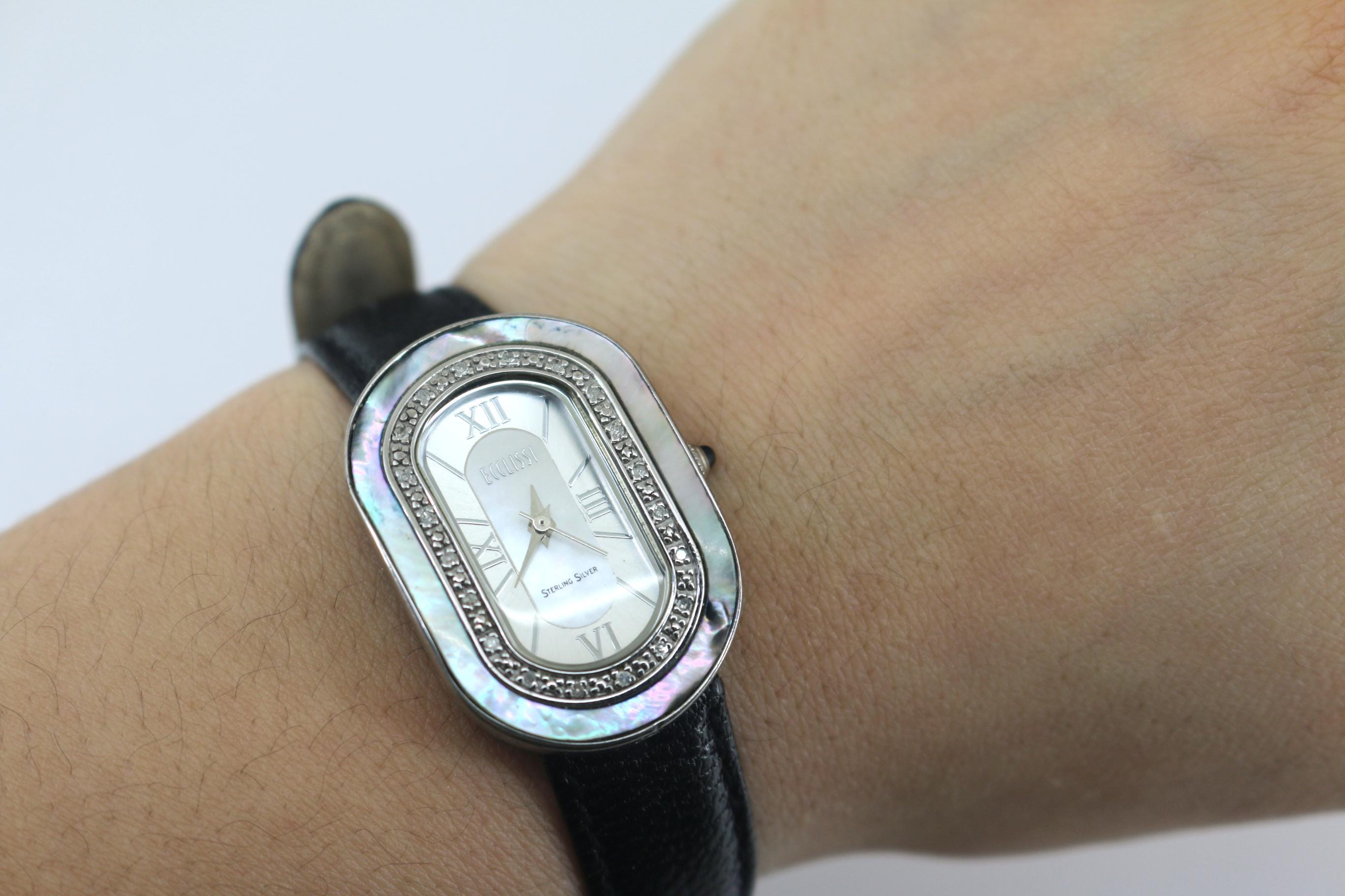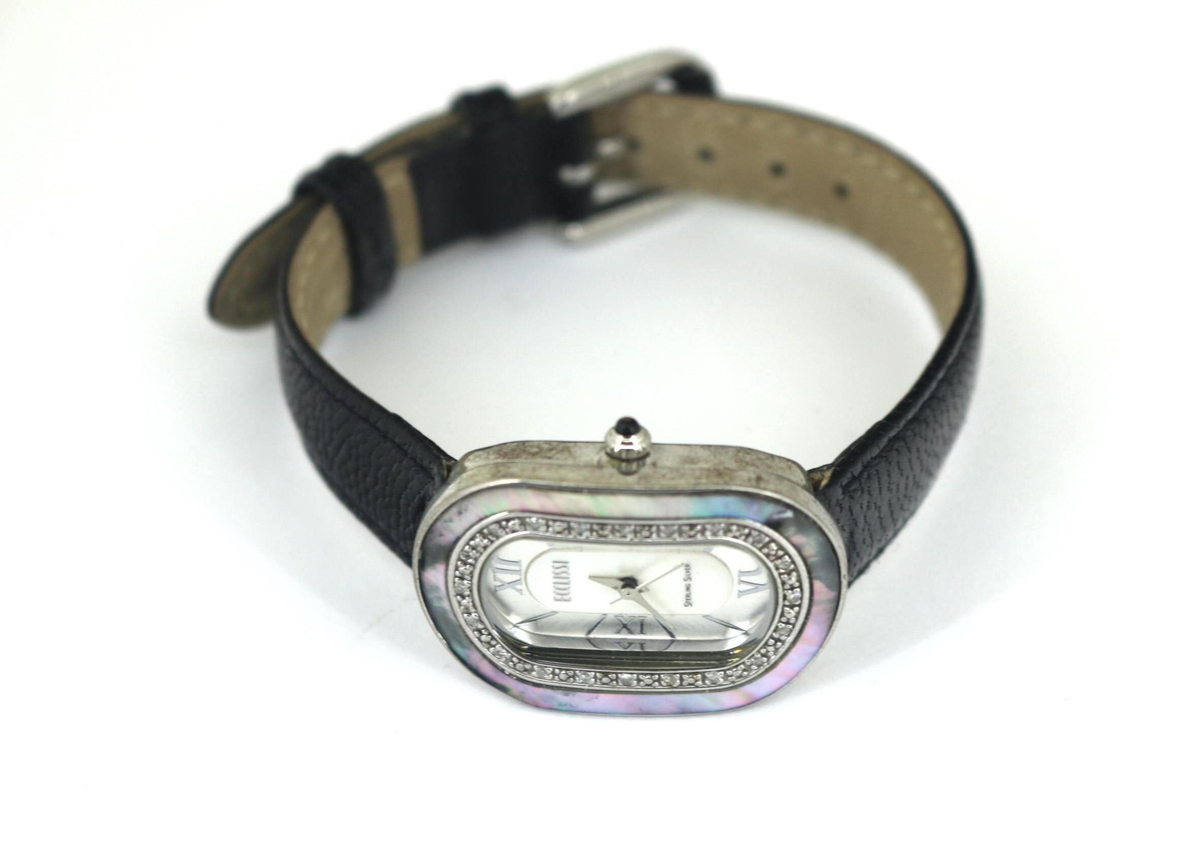 Vintage Ecclissi Black Genuine Leather Japan Quartz & Mother of Pearl Watch Sterling OT 350