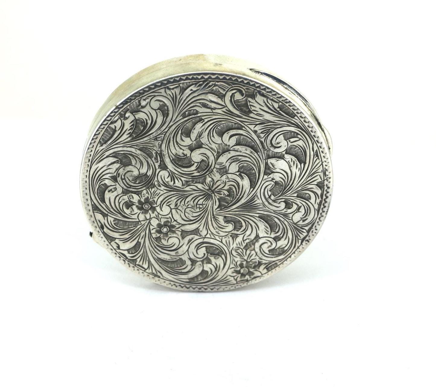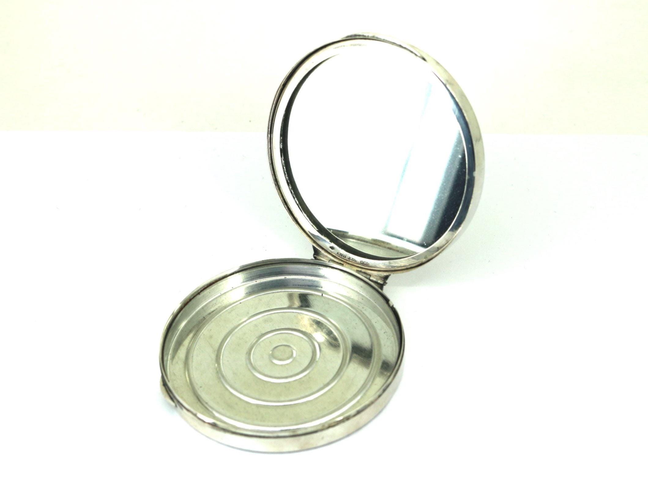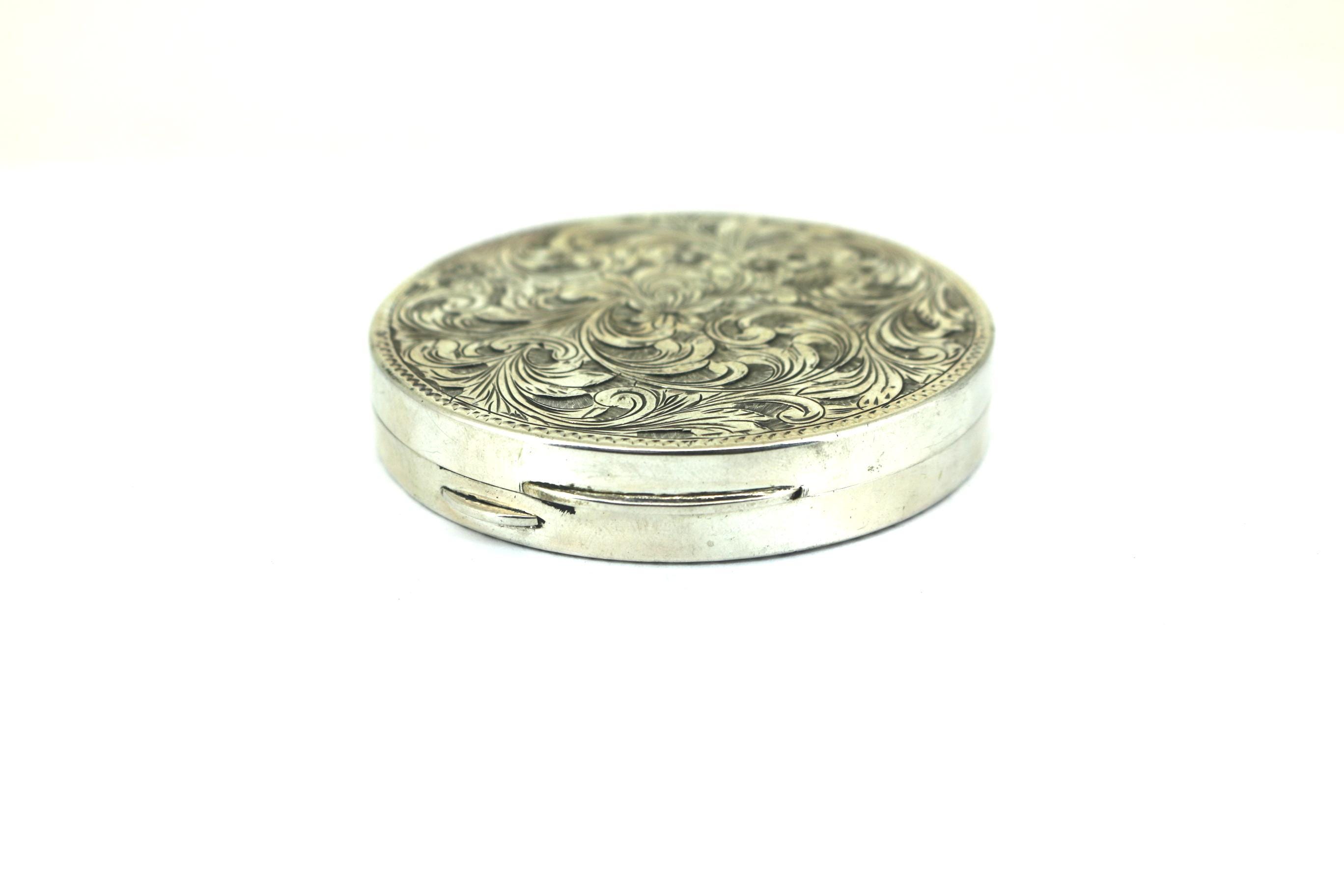 Vintage 800 Silver Italian Etched Floral Powder Compact OT 085