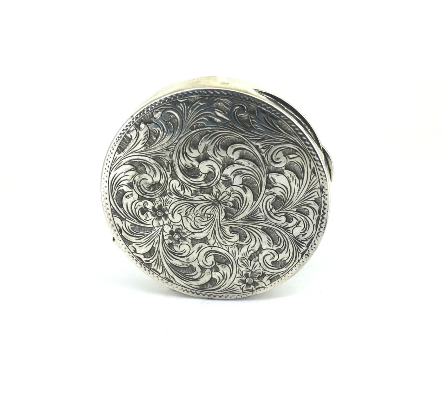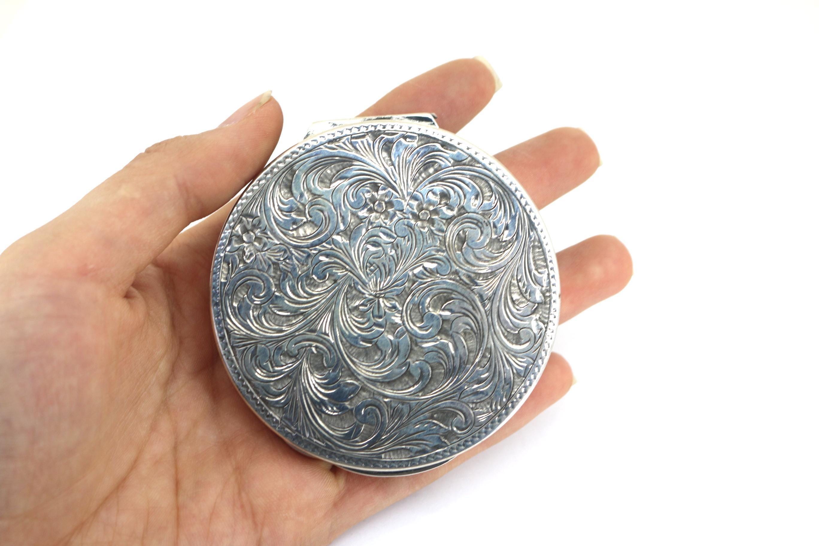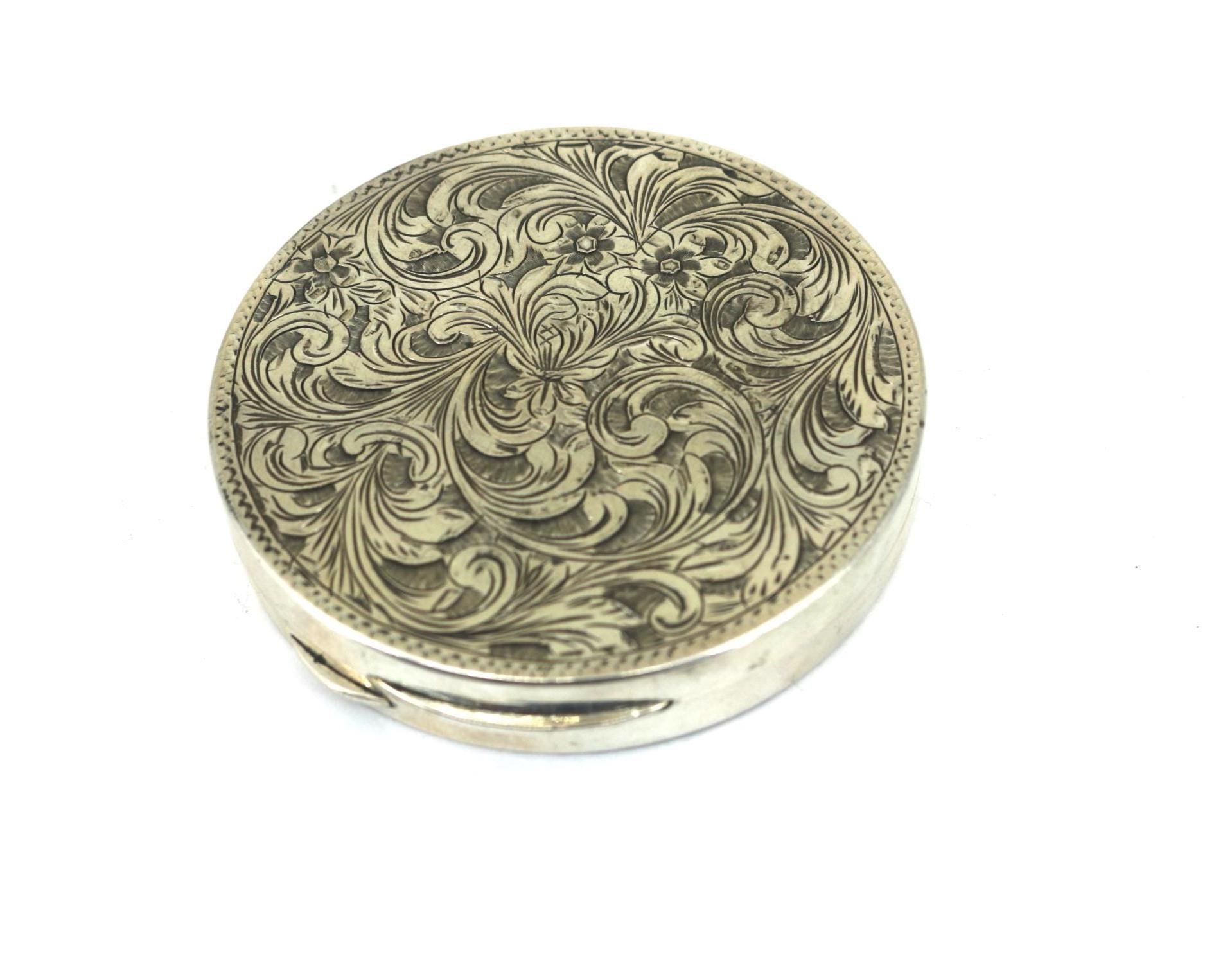 Vintage 800 Silver Italian Etched Floral Powder Compact OT 085