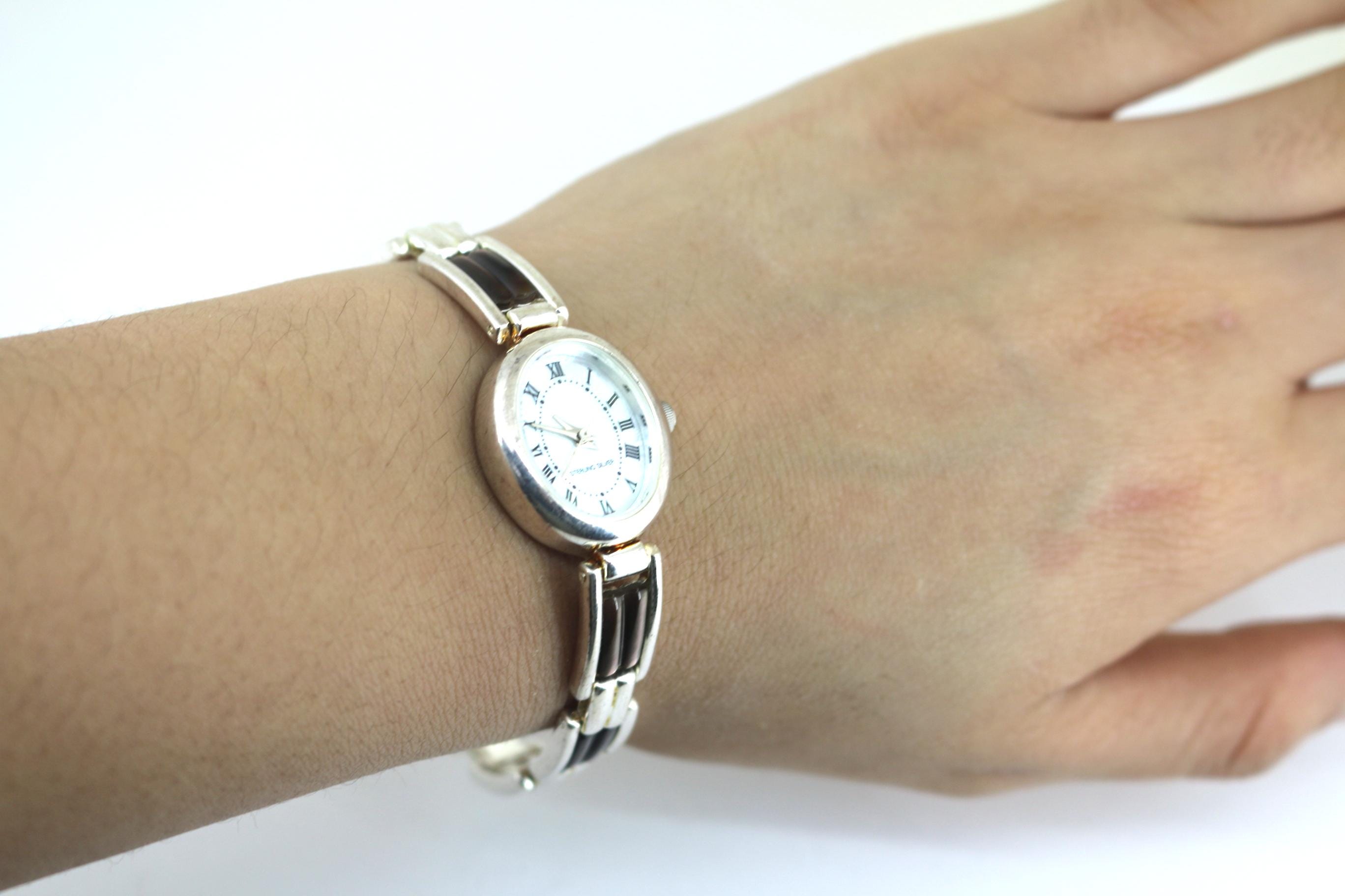 Vintage Black MOP Japan Quartz Watch Sterling OT 023