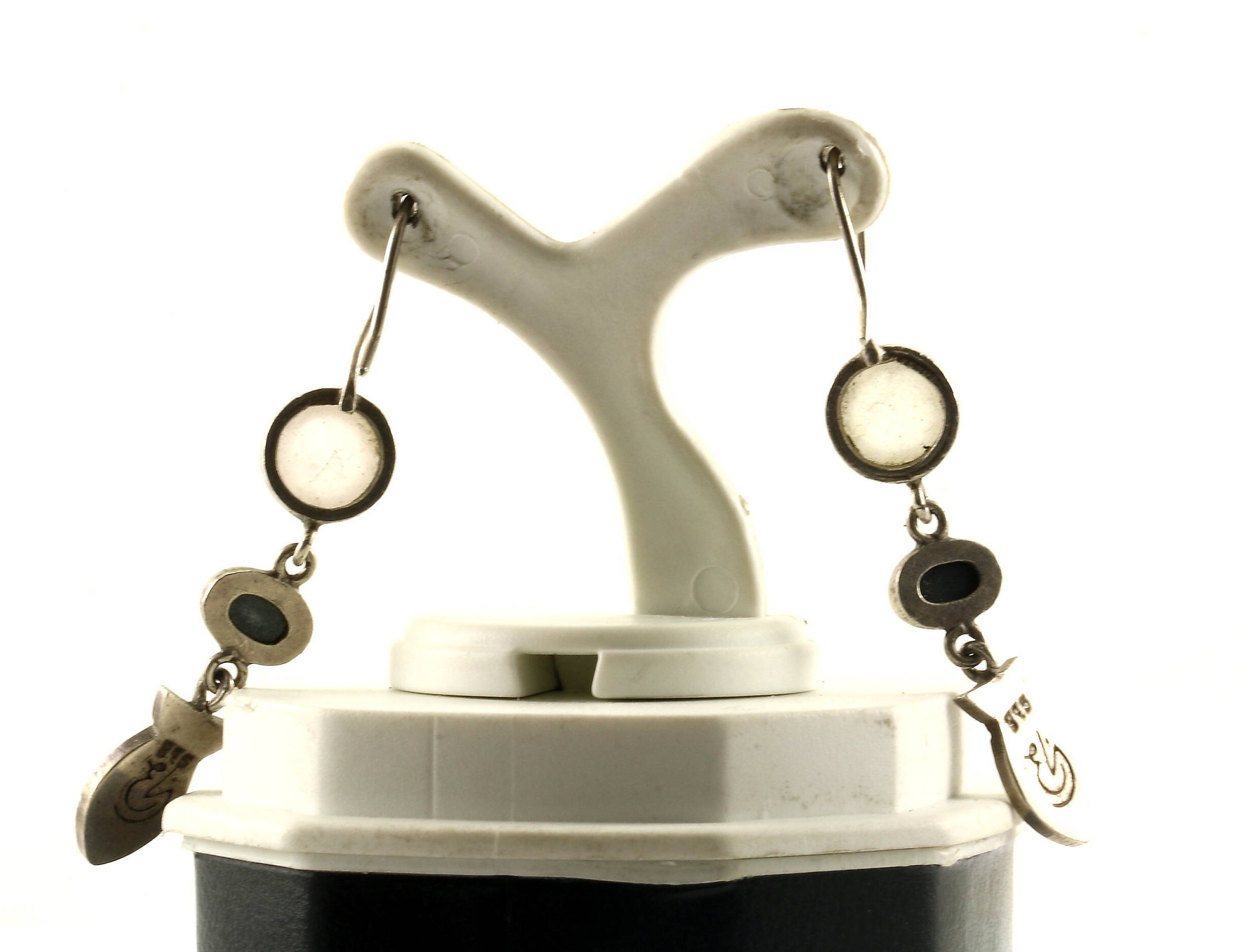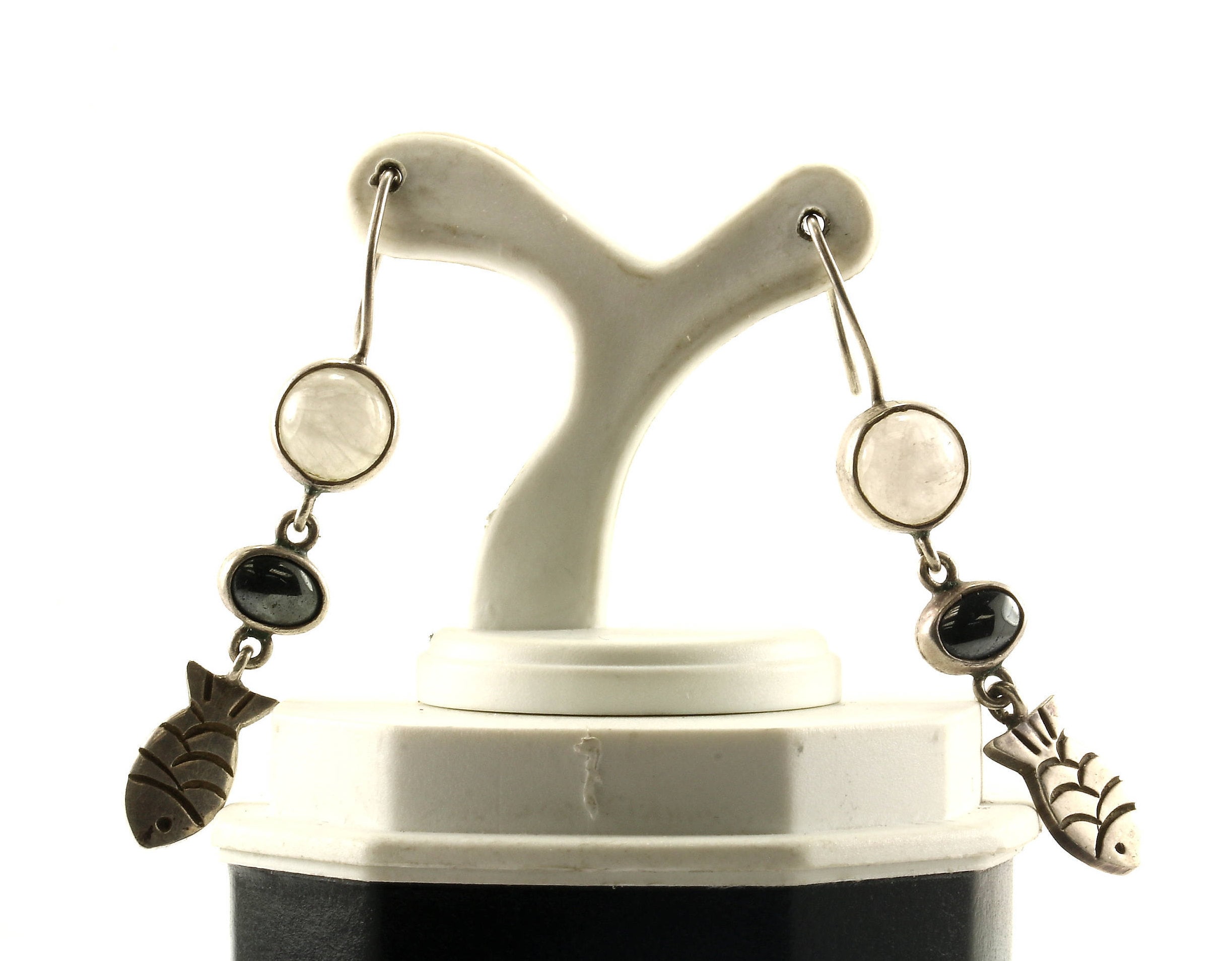Vintage Vintage Fish Shape Black & White Stones Dangle Earrings