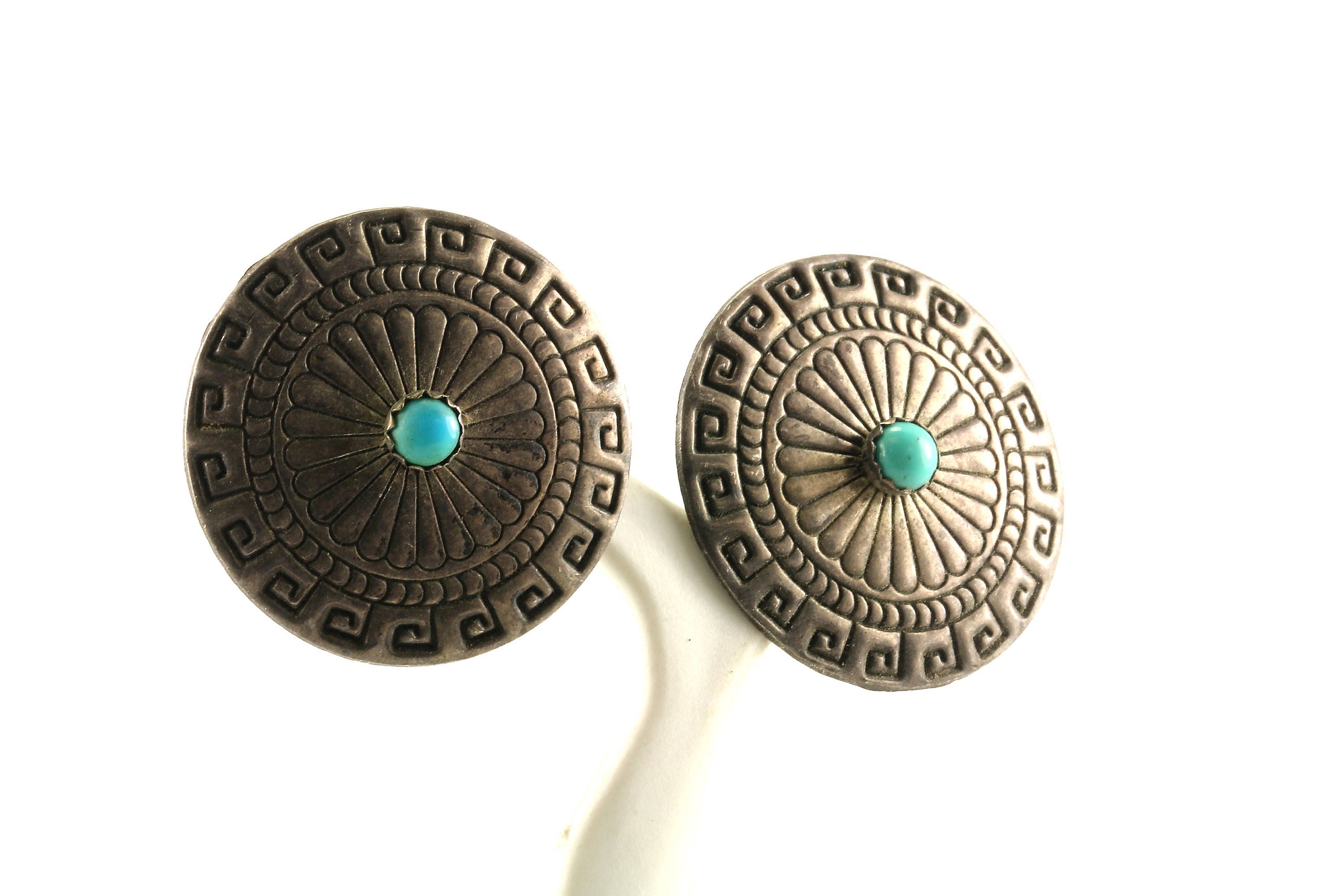 This is Vintage Round Maze Design Turquoise Stud Earrings