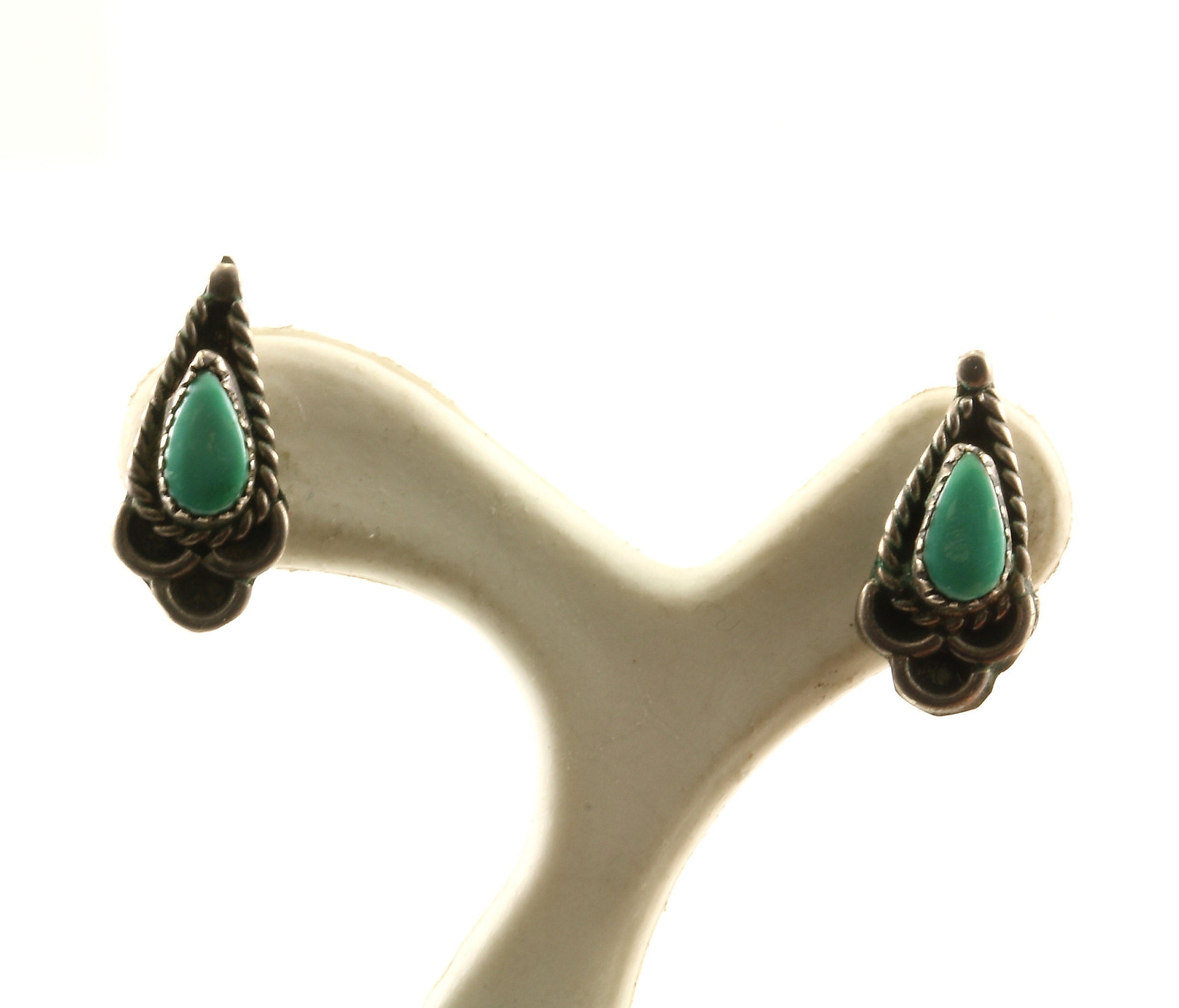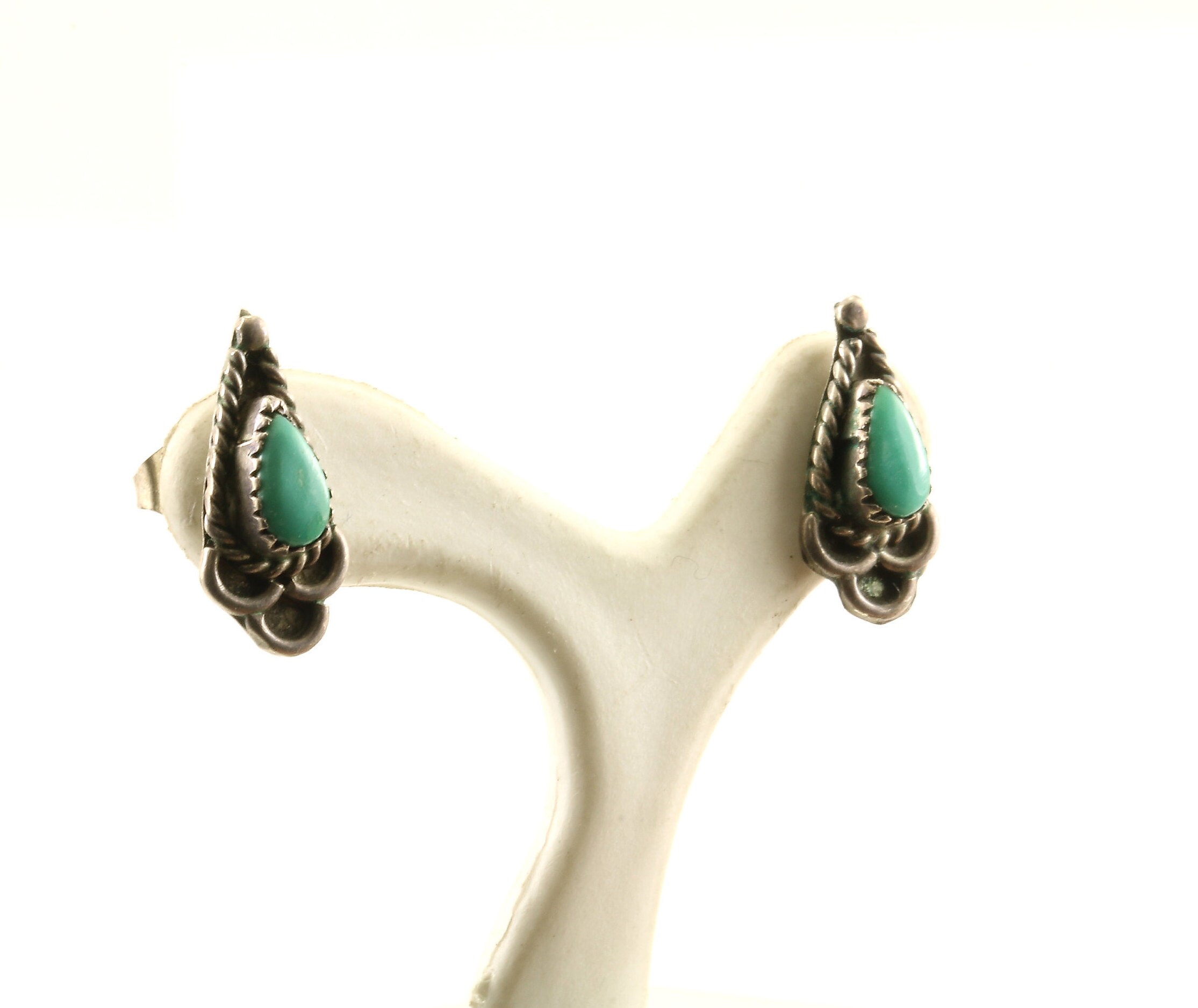 This is Vintage Small Blue Turquoise Design Stud Earrings